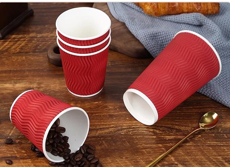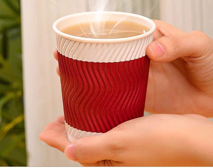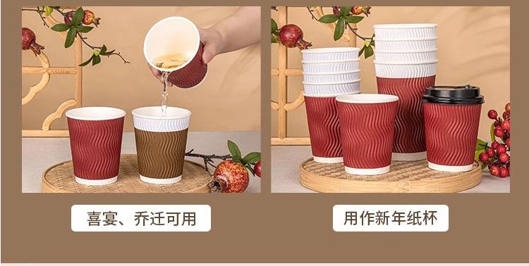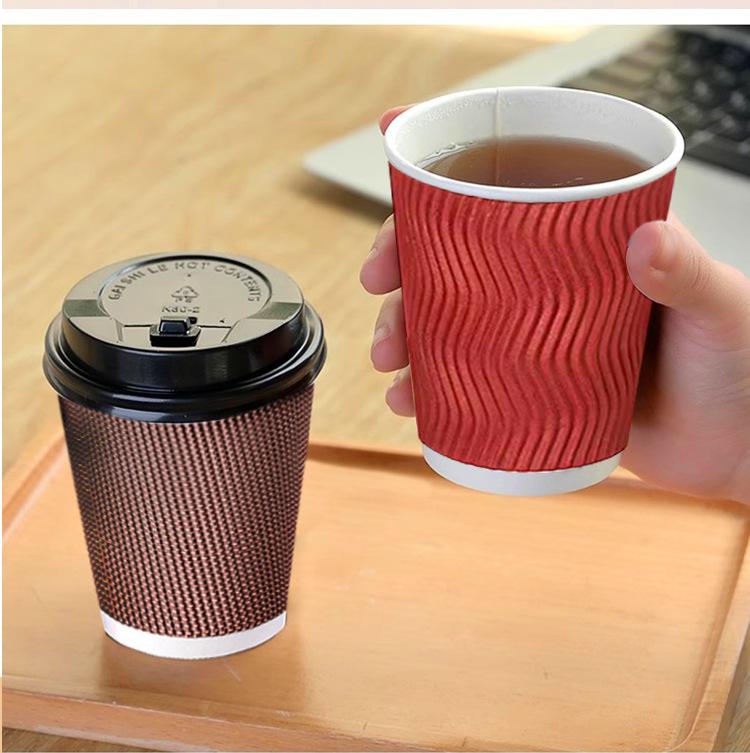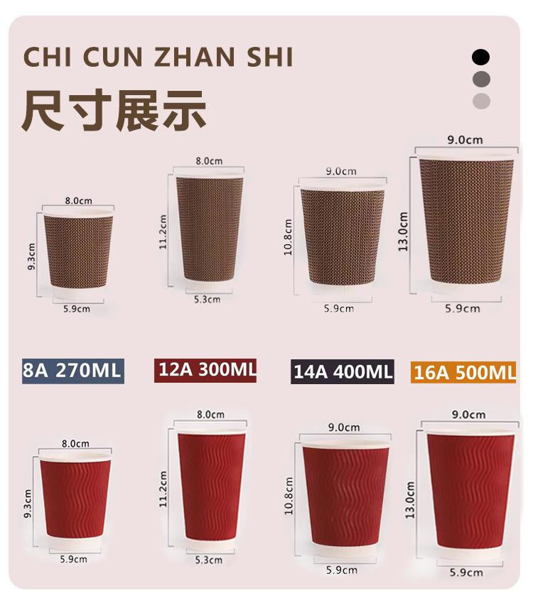 Vaso de Café Desechable Comercial Doble Capa Engrosado Vaso de Papel Antiescaldante Vaso Corrugado para Bebida Caliente Vaso Corrugado Vaso para Empaque con Tapa