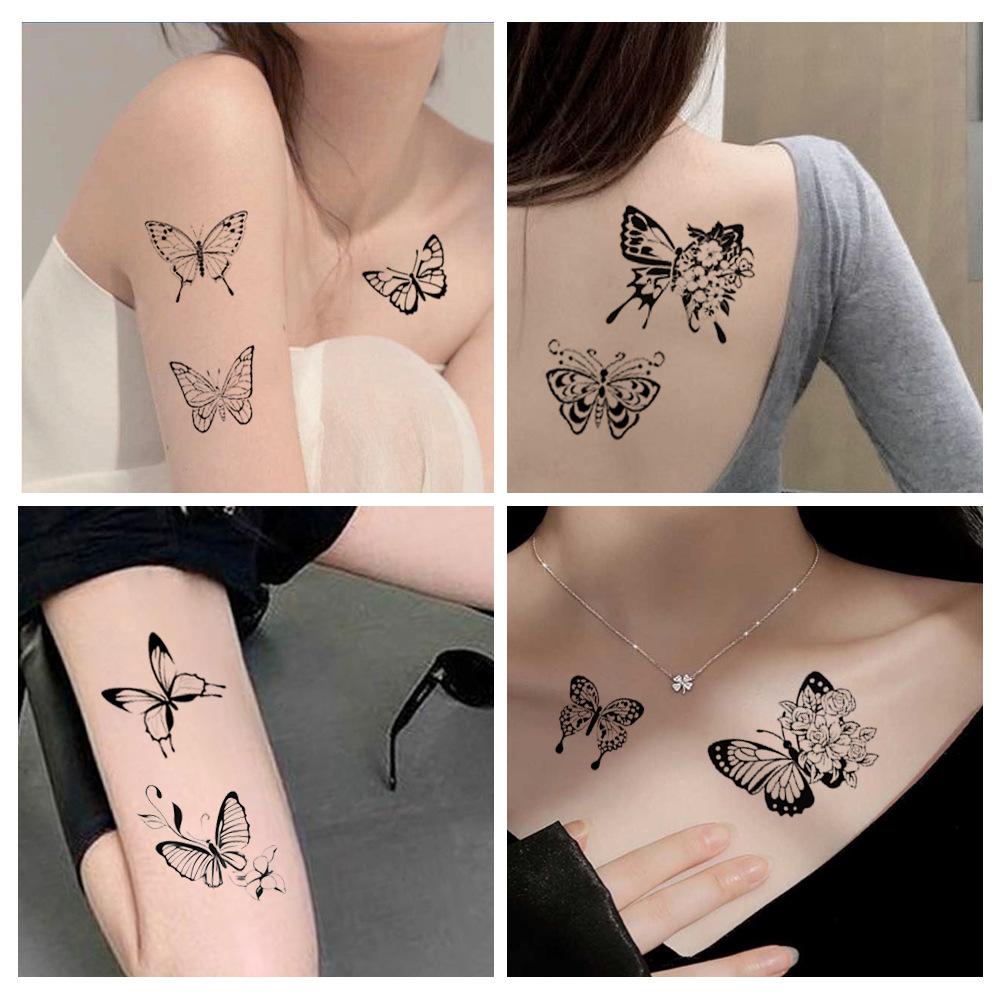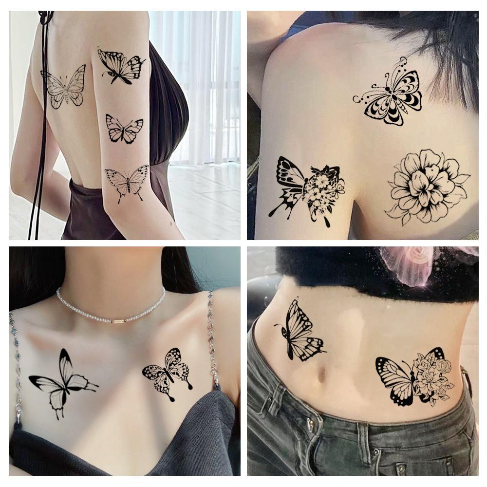 Tatuaje Adhesivo Mariposa Negra Nuevo Transfronterizo Pequeño Fresco Tatuaje Adhesivo Sentido Avanzado ins Sexy Tatuaje Adhesivo Blanco