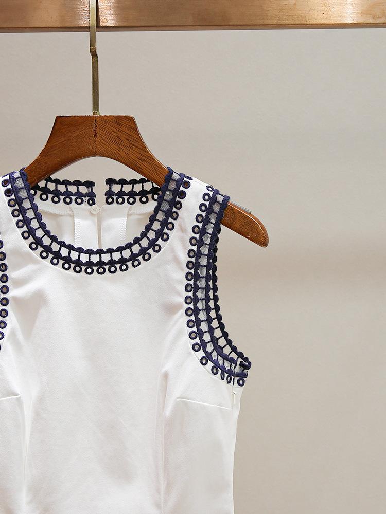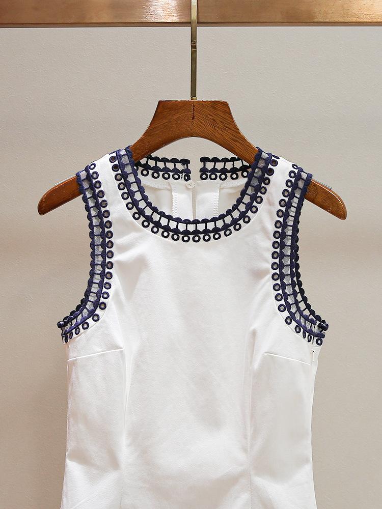 Nuevo Estilo de Verano para Hombre Diseño de Estilo Francés Recorte Bordado de Alta Gama Vestido Chaleco sin Mangas con Cintura en A