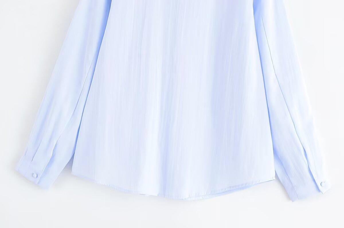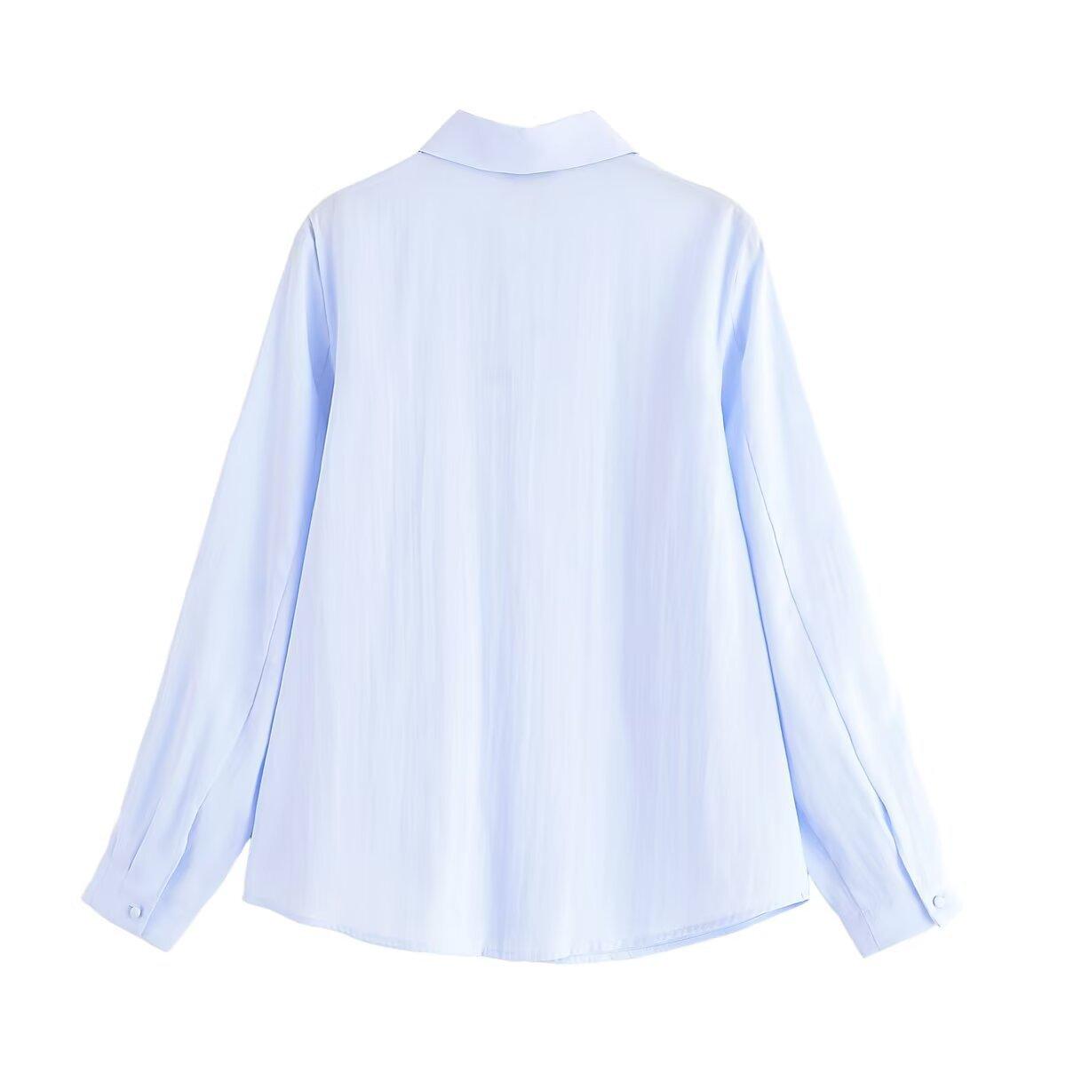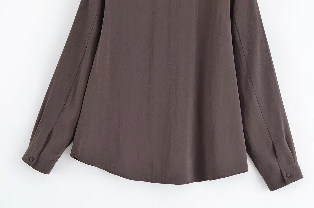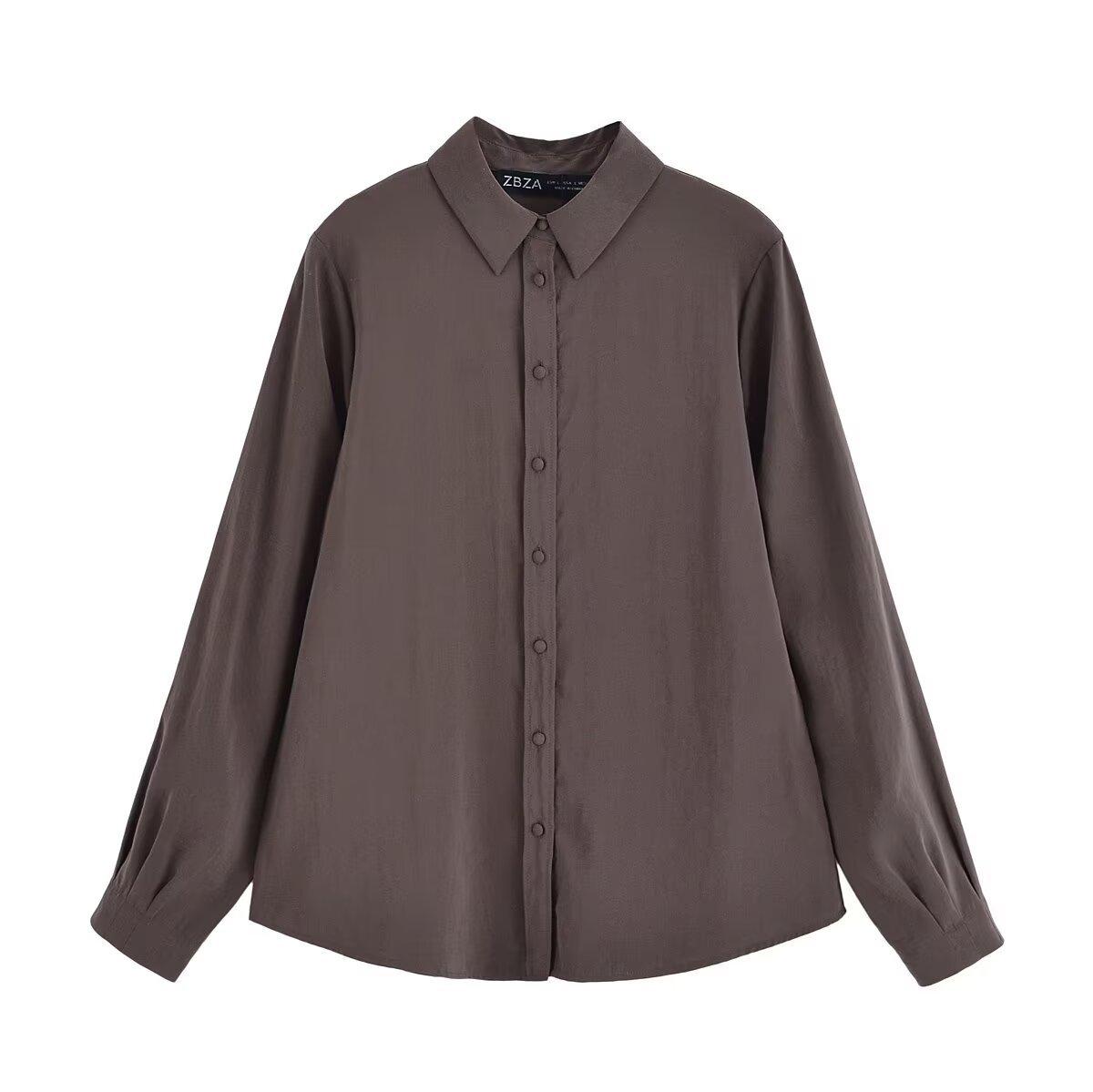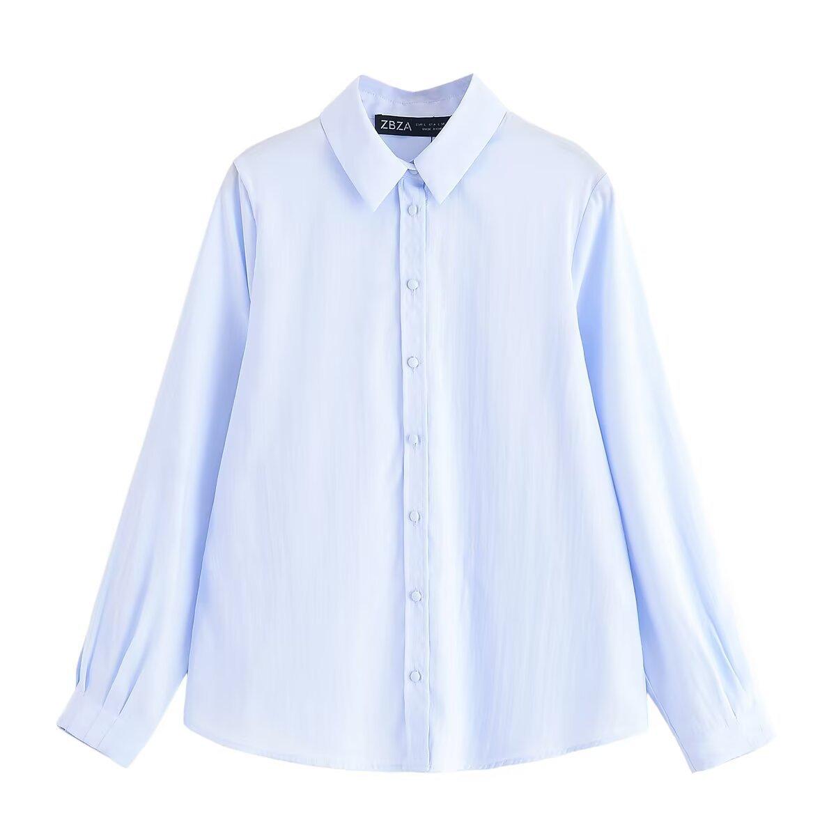 Transfronterizo Nuevo 2025 Estilo Europeo y Americano Ropa de Mujer Comercio Exterior Venta al por Mayor ZR En Stock Color Sólido Camisa Drapeada de Manga Larga