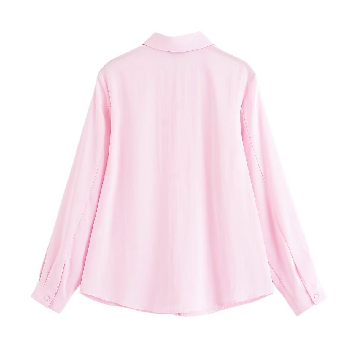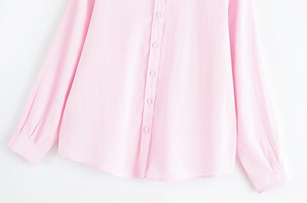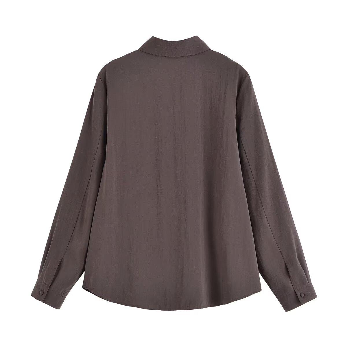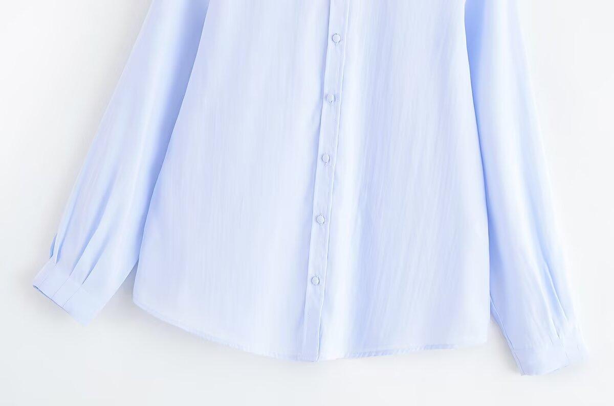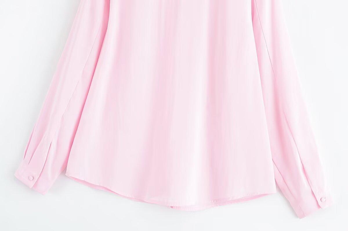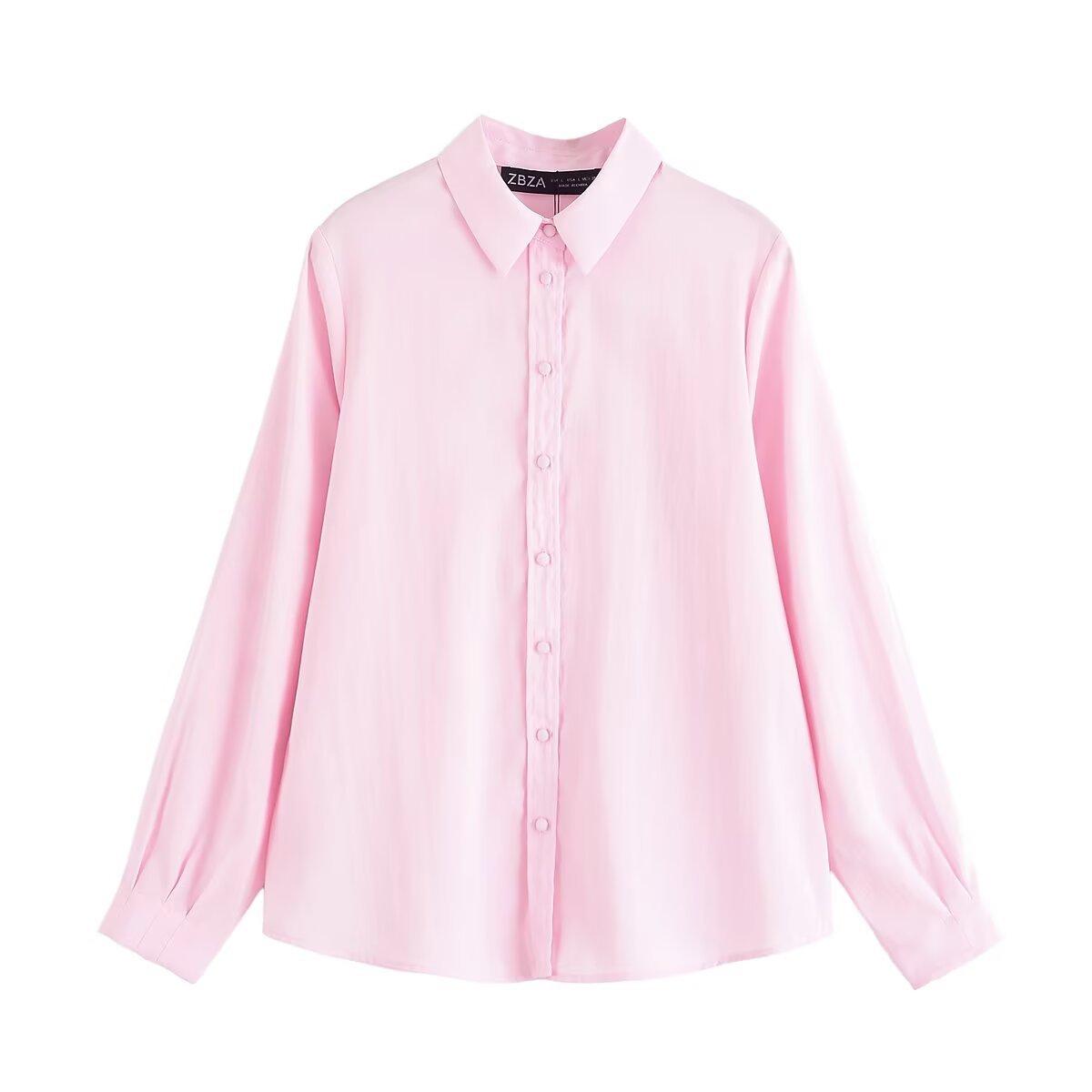 Transfronterizo Nuevo 2025 Estilo Europeo y Americano Ropa de Mujer Comercio Exterior Venta al por Mayor ZR En Stock Color Sólido Camisa Drapeada de Manga Larga
