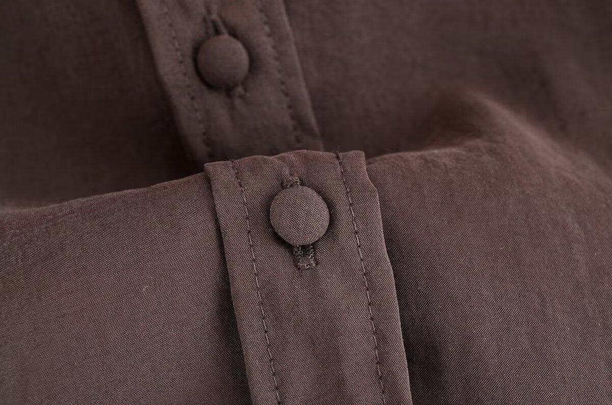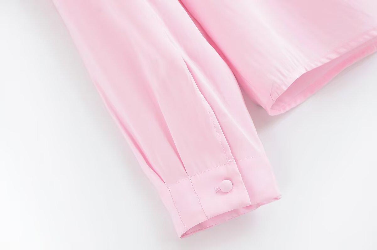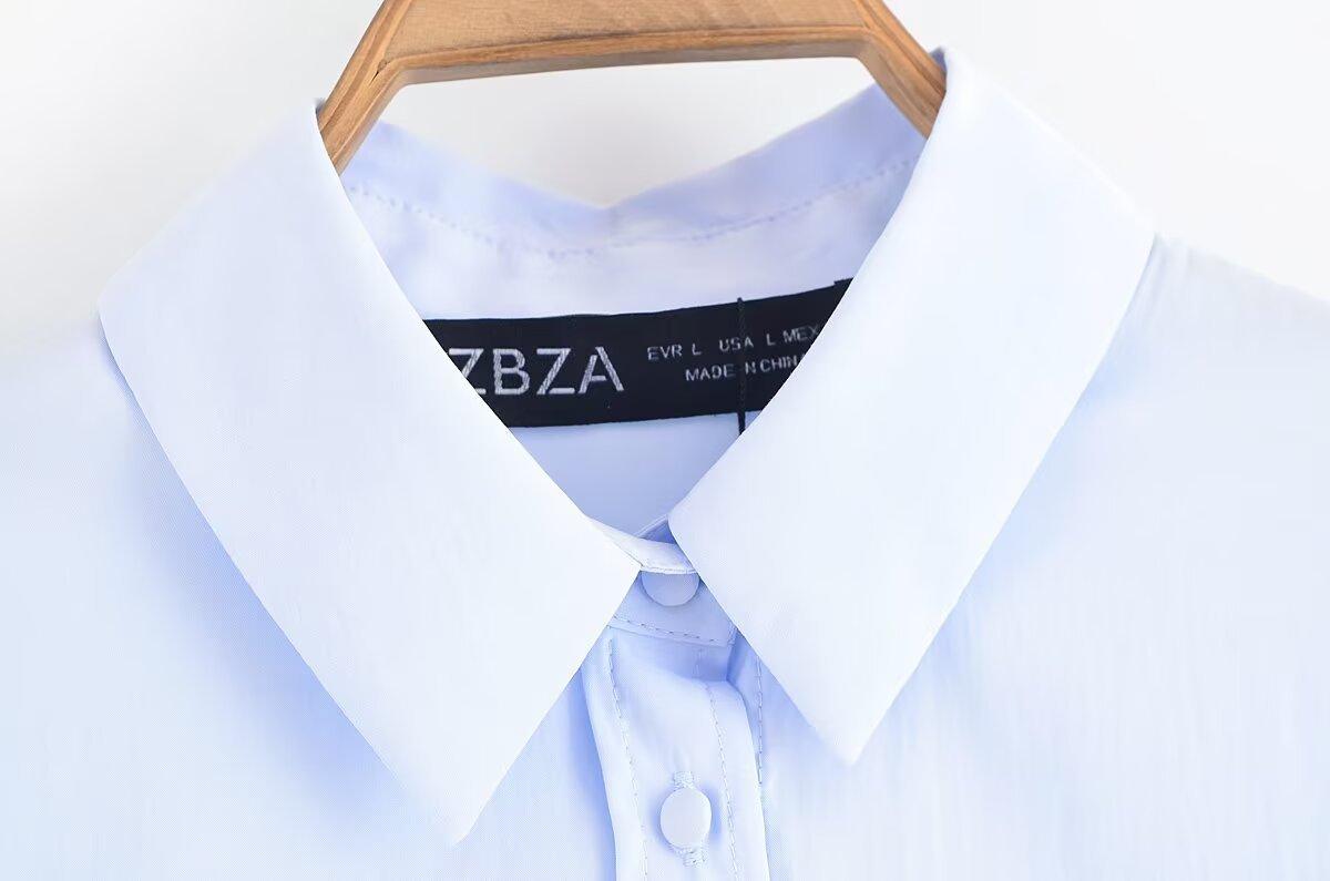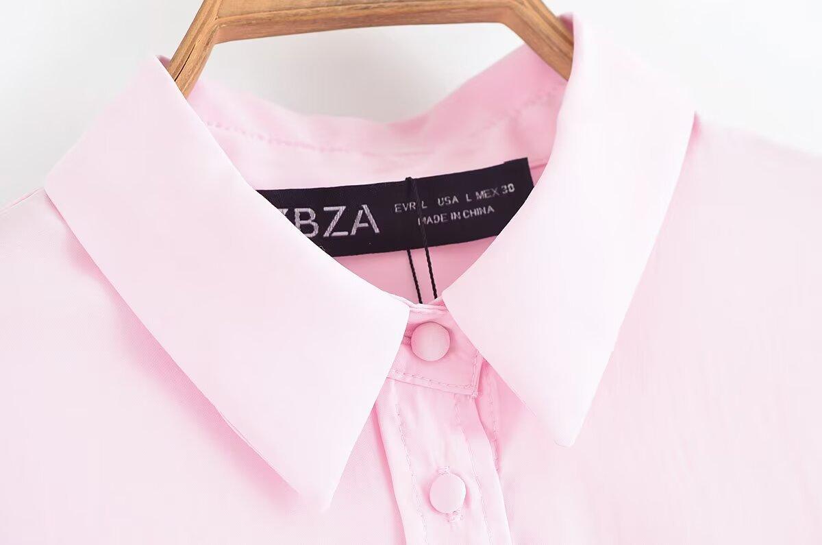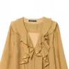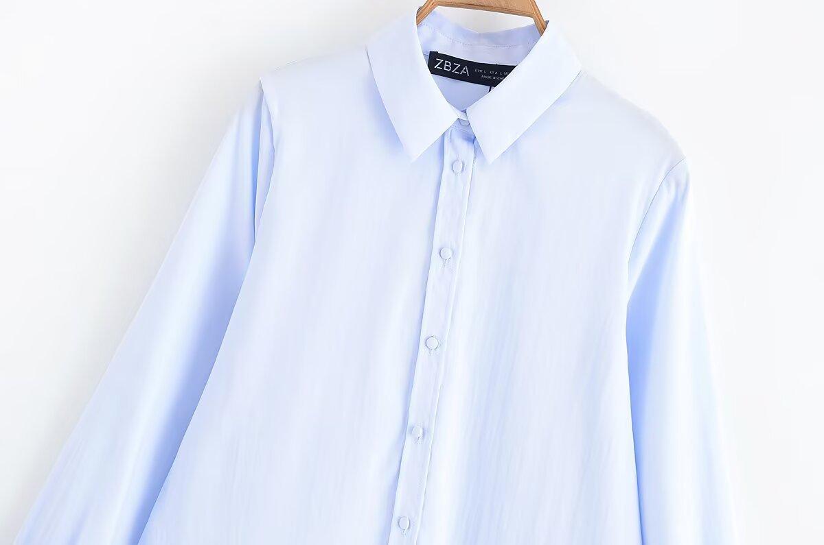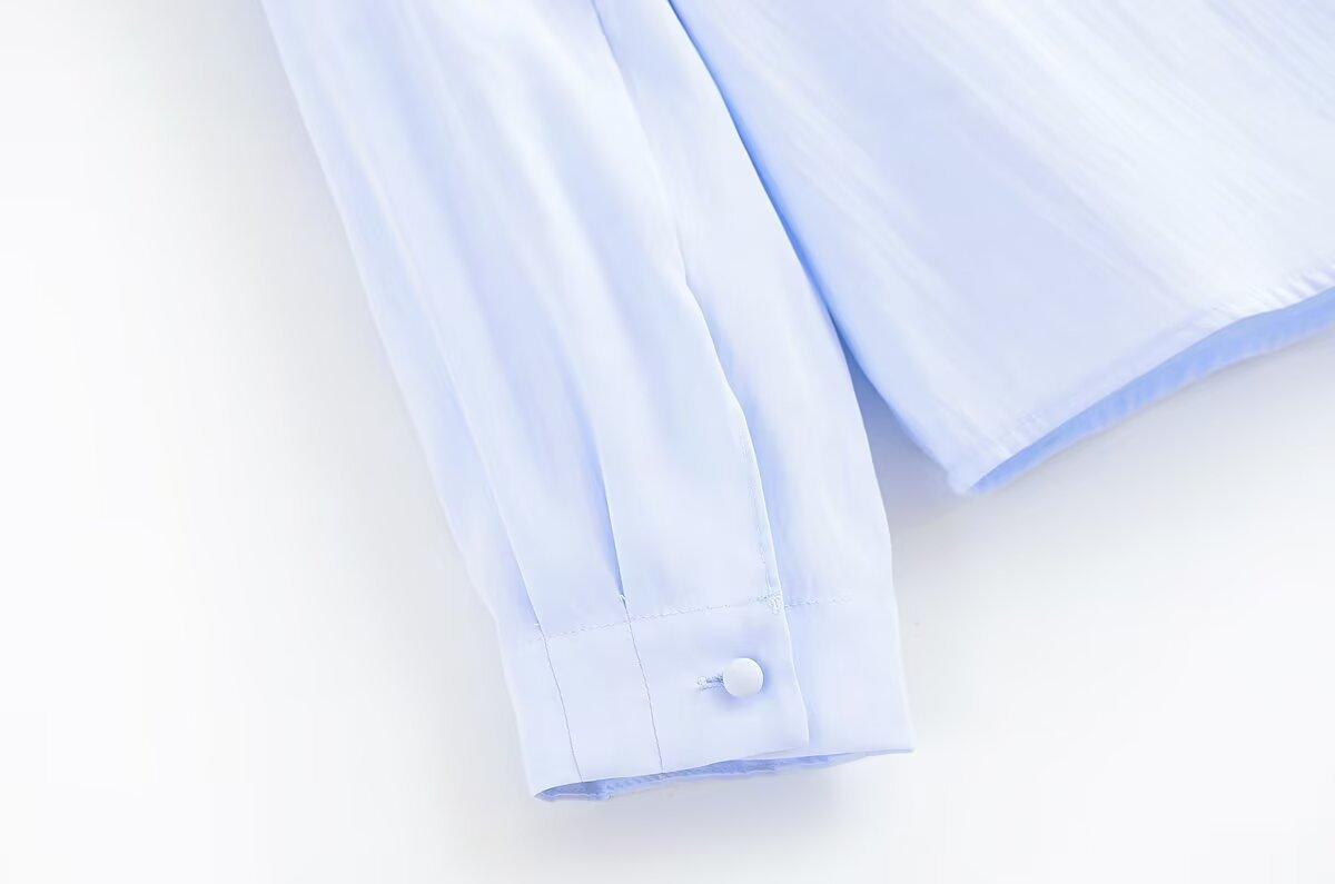 Transfronterizo Nuevo 2025 Estilo Europeo y Americano Ropa de Mujer Comercio Exterior Venta al por Mayor ZR En Stock Color Sólido Camisa Drapeada de Manga Larga