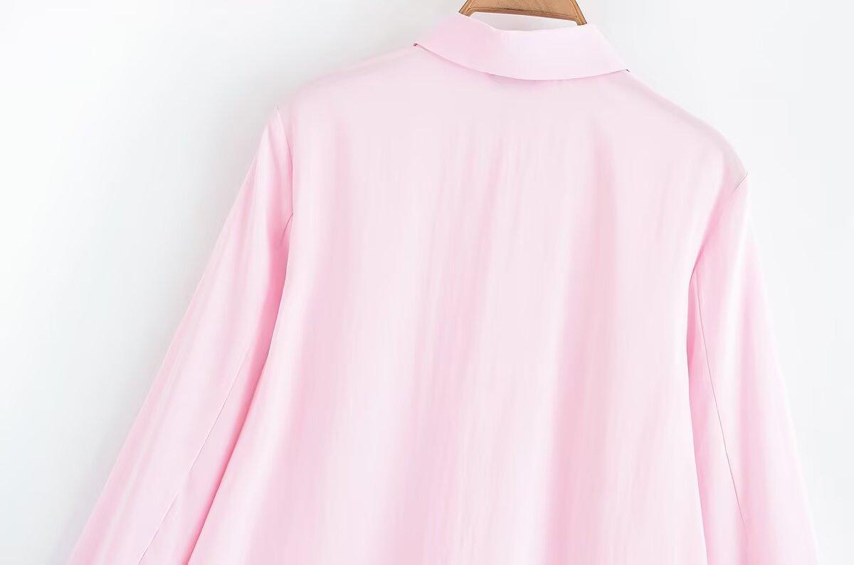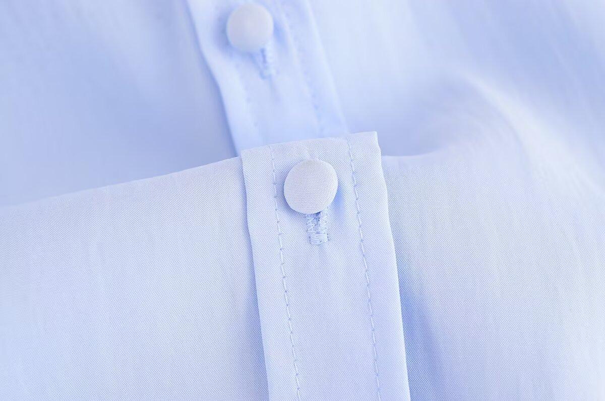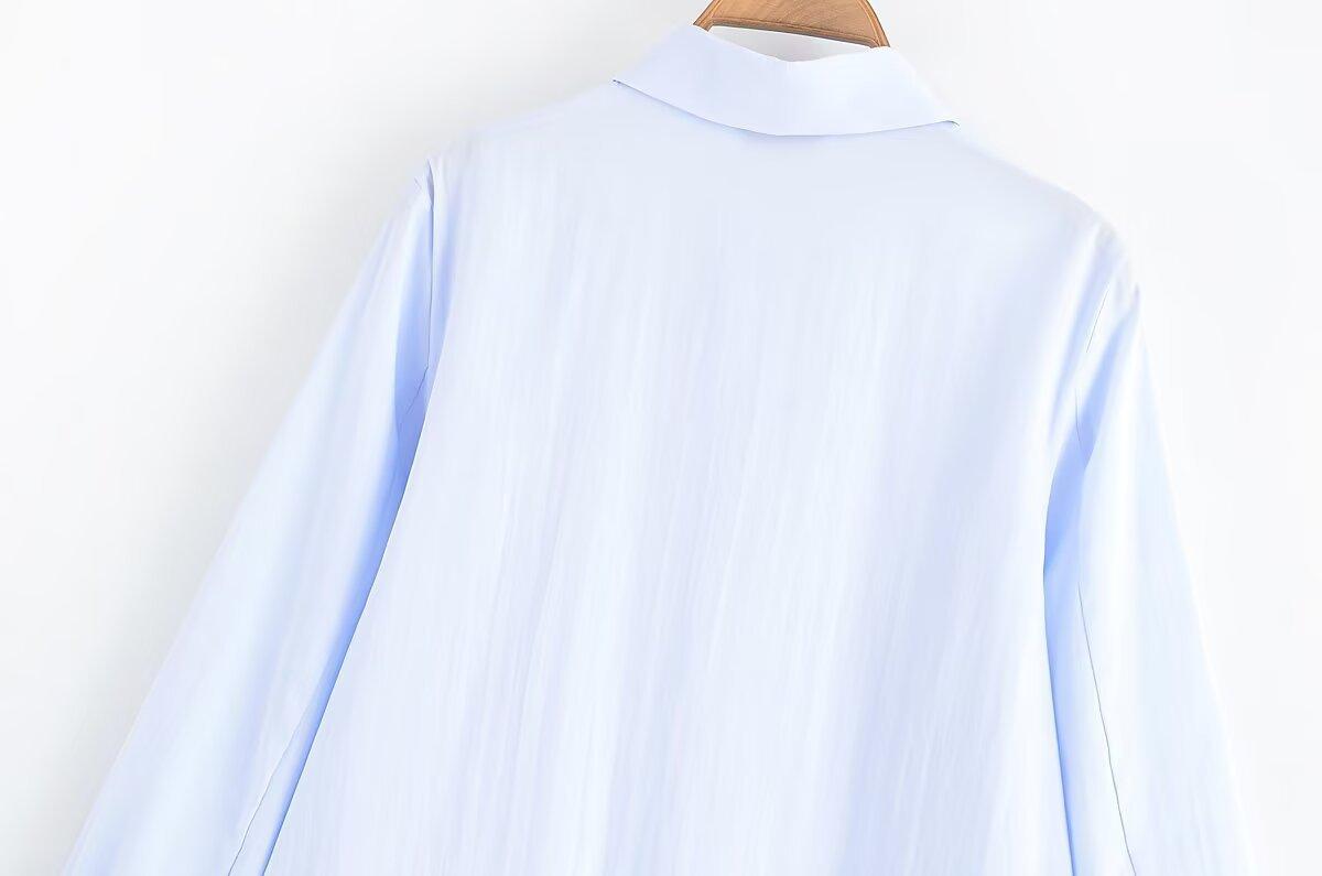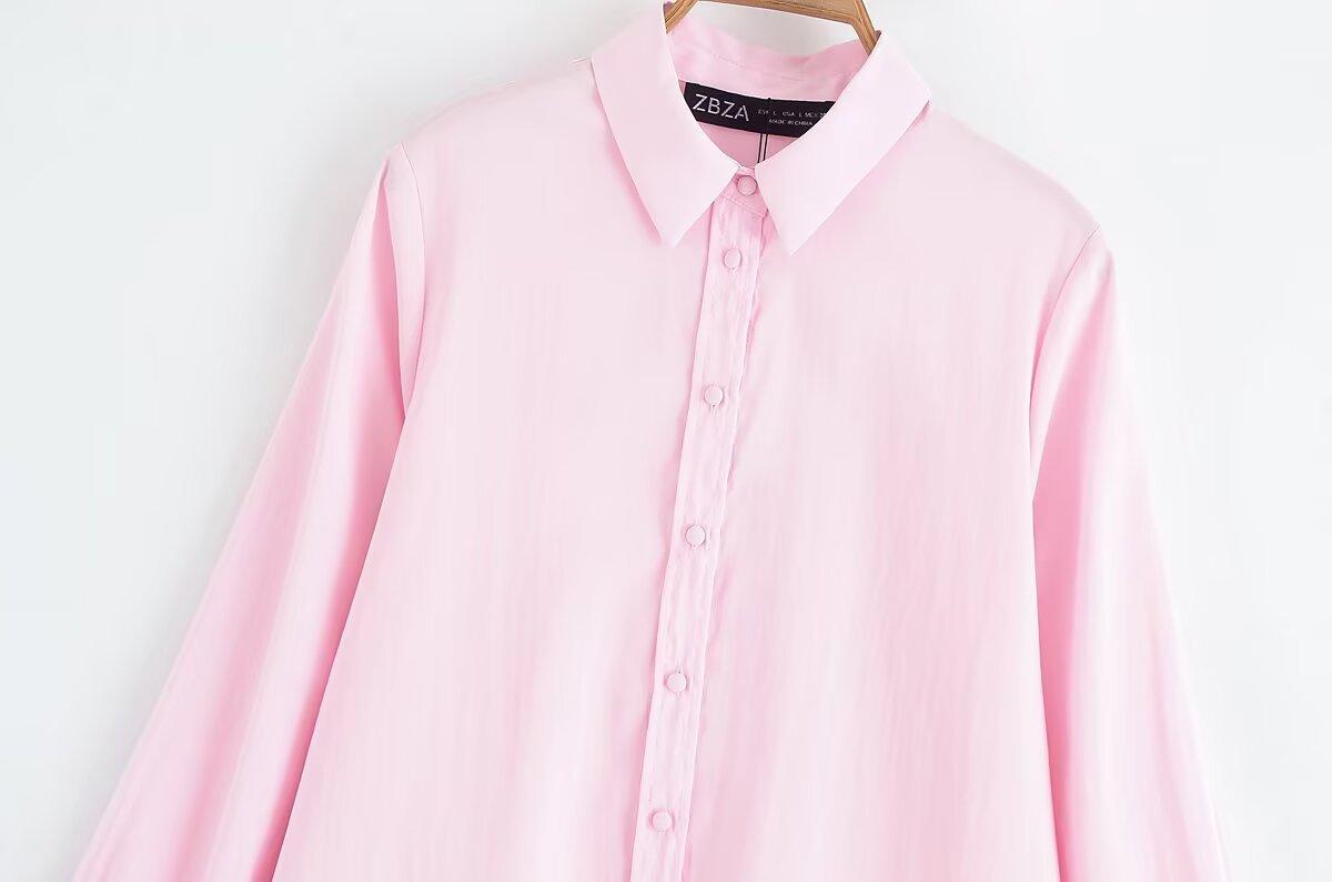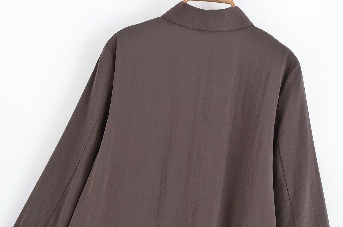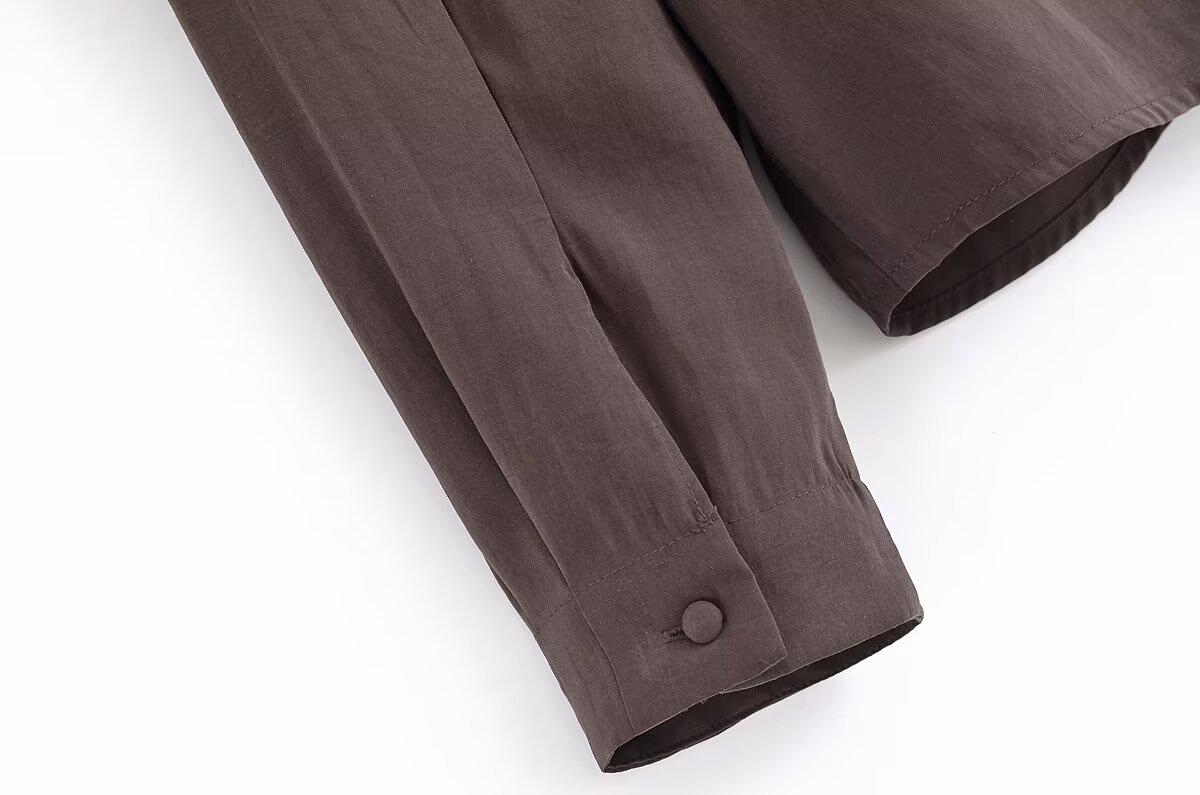 Transfronterizo Nuevo 2025 Estilo Europeo y Americano Ropa de Mujer Comercio Exterior Venta al por Mayor ZR En Stock Color Sólido Camisa Drapeada de Manga Larga