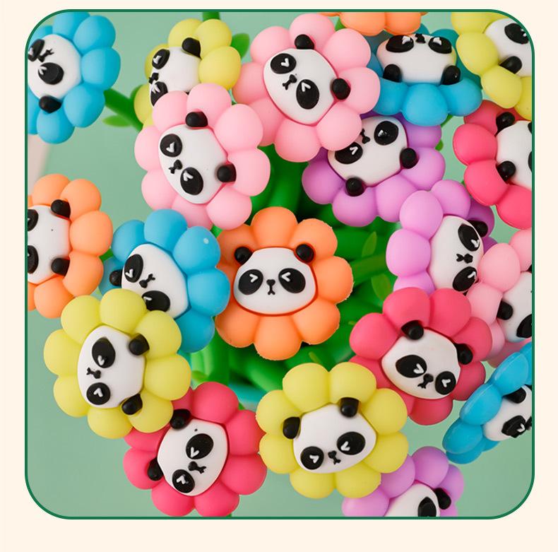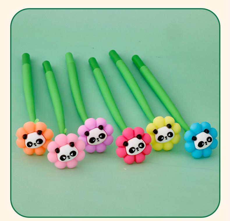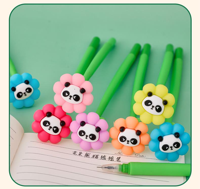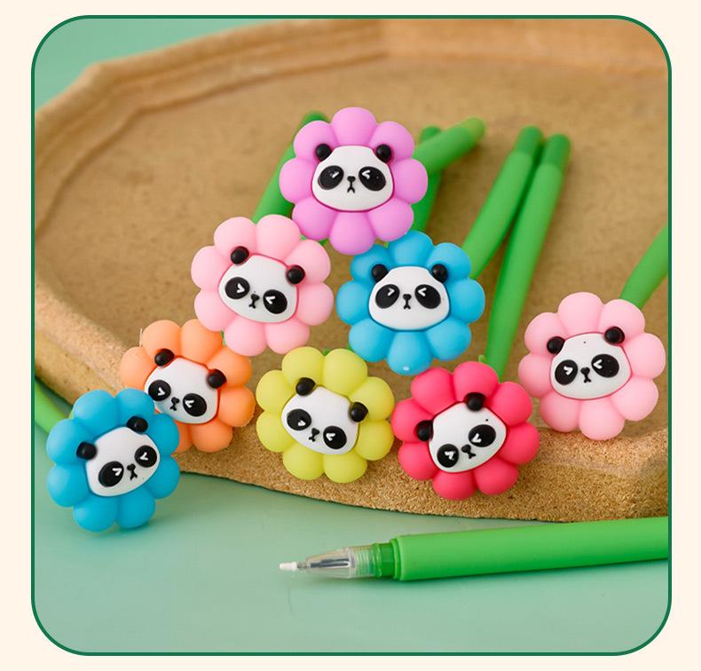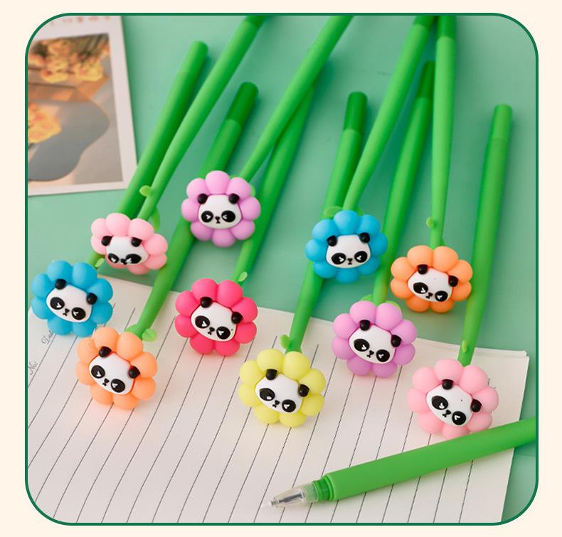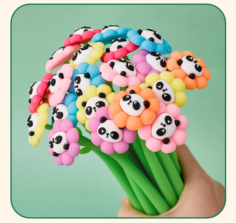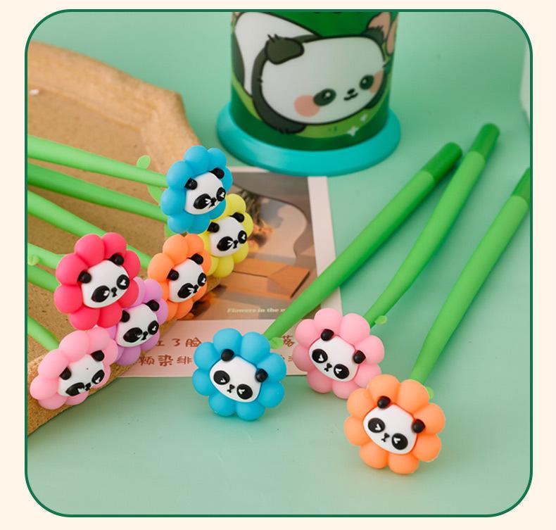 Pluma de Gel Panda Flor Música Rock Dibujos Animados Creativa Estudiante Pluma de Agua Papelería Súper Linda Silicona Negra Pluma de Firma