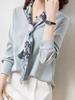Temperamento de estilo ligeramente maduro irregular principios de otoño camisa pequeña de manga larga para mujer versión coreana nuevo diseño ajustado sentido del diseño estilo extranjero temperamento top
