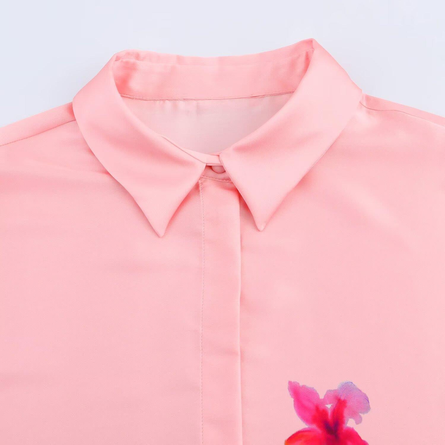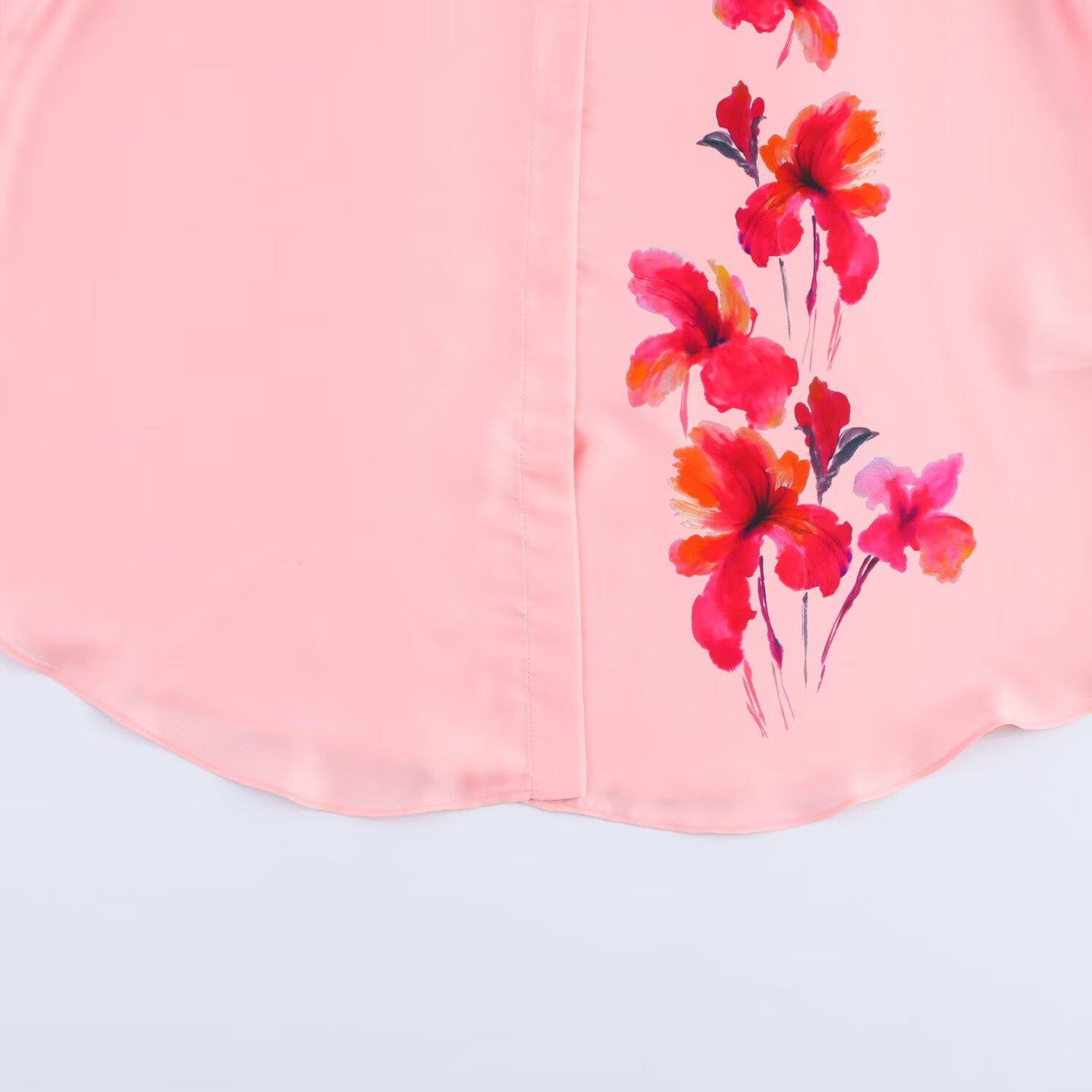 Venta al por mayor de comercio exterior transfronterizo 2025 verano nuevo estilo europeo y americano moda casual camisa blusa de satén estampada con flores