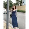 Conjunto de otoño, un conjunto de temperamento suave estilo coreano adelgazante vestido floral mujeres cárdigan tirantes vestido largo conjunto de dos piezas
