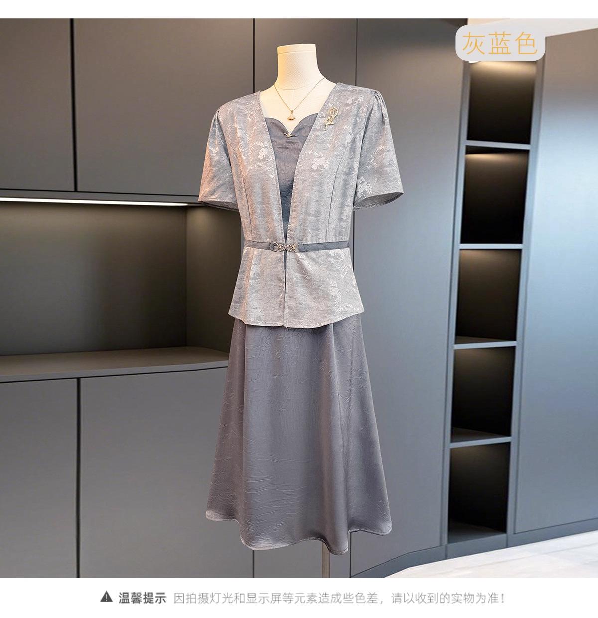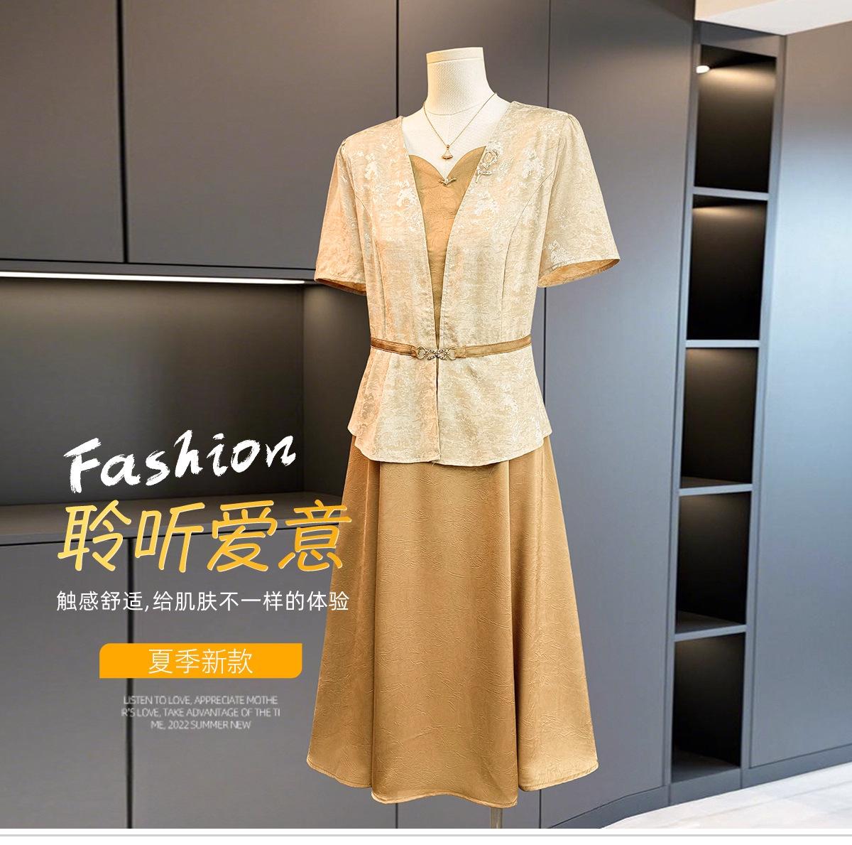 Vestido de Verano para Mamá a la Moda Ropa para Mujer de Mediana Edad y Adulta Mayor 2025 Nuevo Verano Conjunto de Lujo Ligero Dignificado y Atmosférico