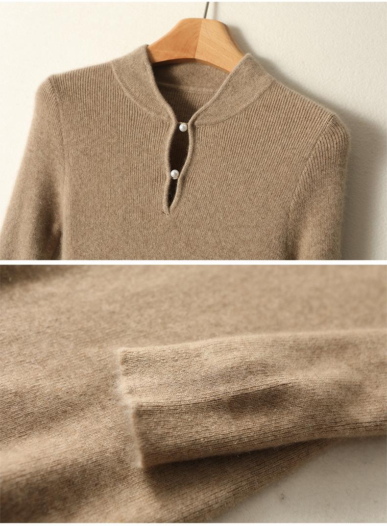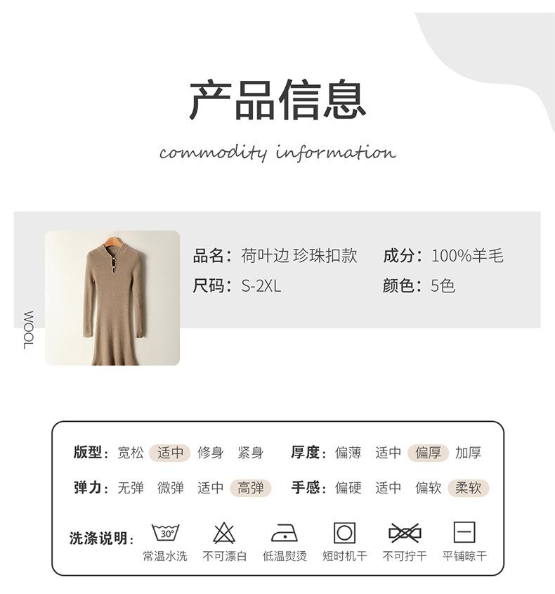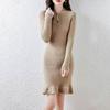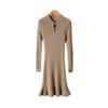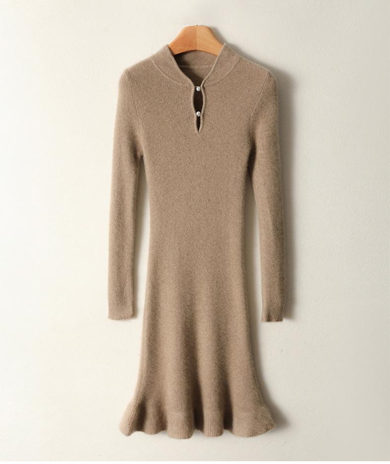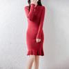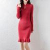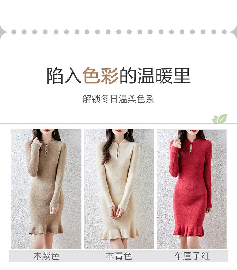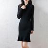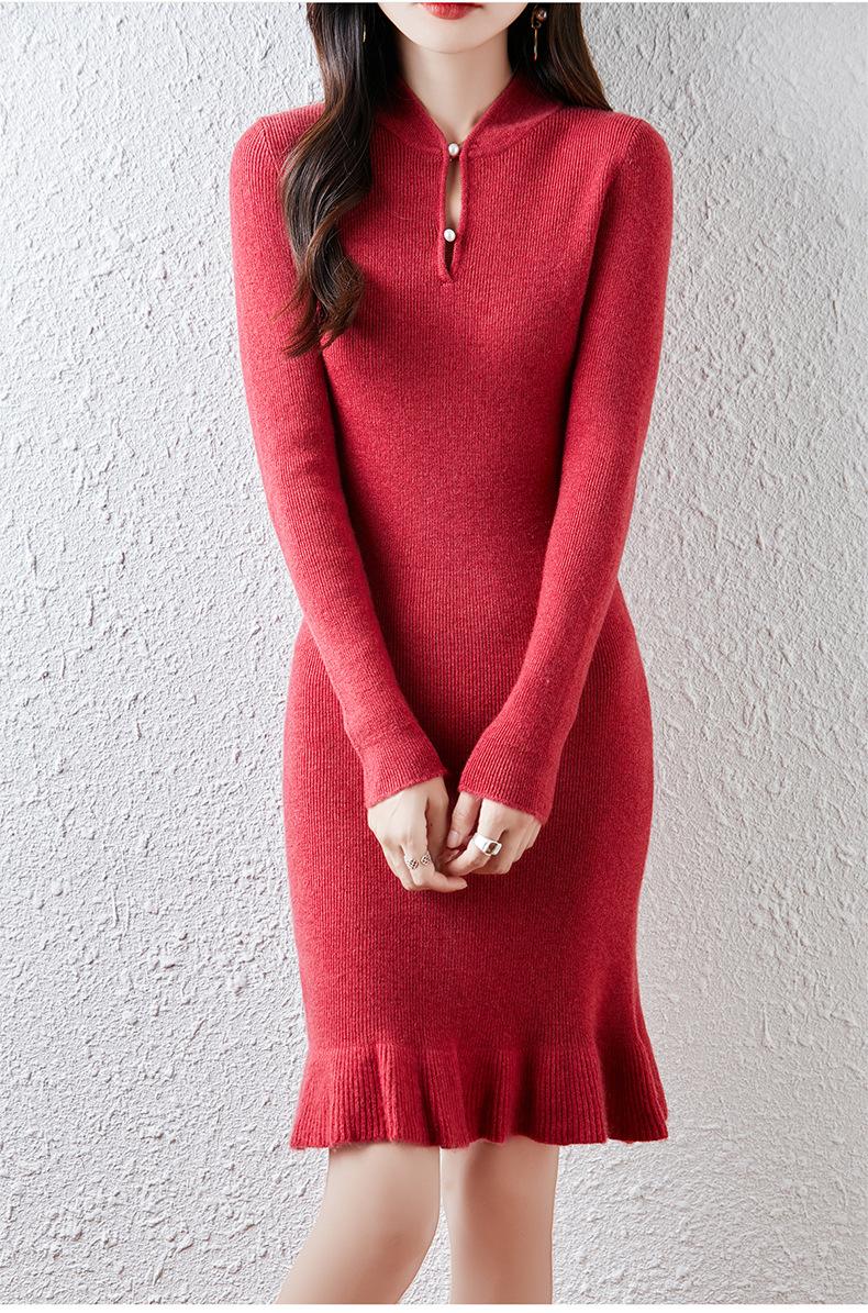 Vestido de Punto para Mujer de Lana 100% Pura con Cuello Alto Diseño de Estilo Nacional Chino Adelgazante Falda Corta de Cola de Pez Media