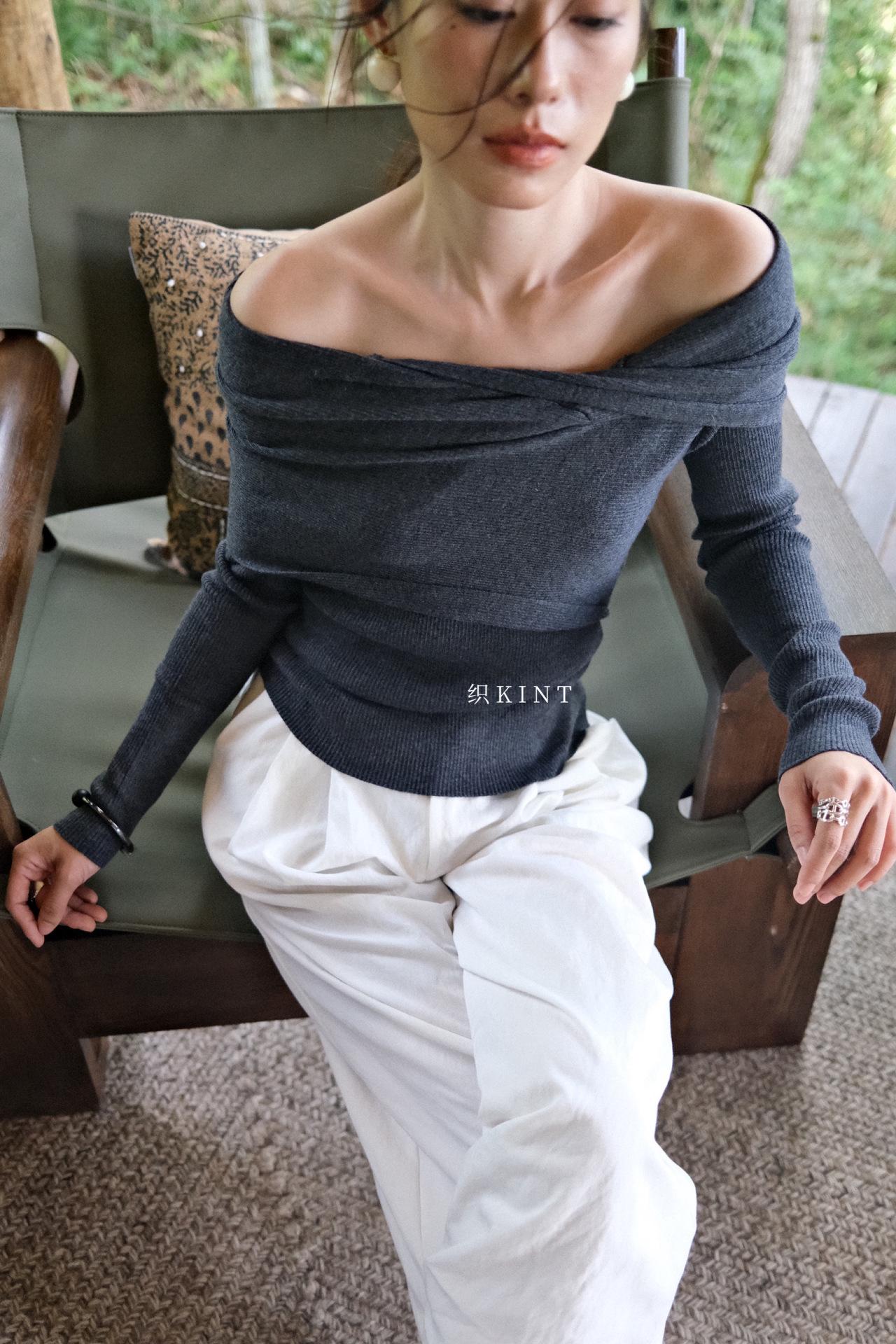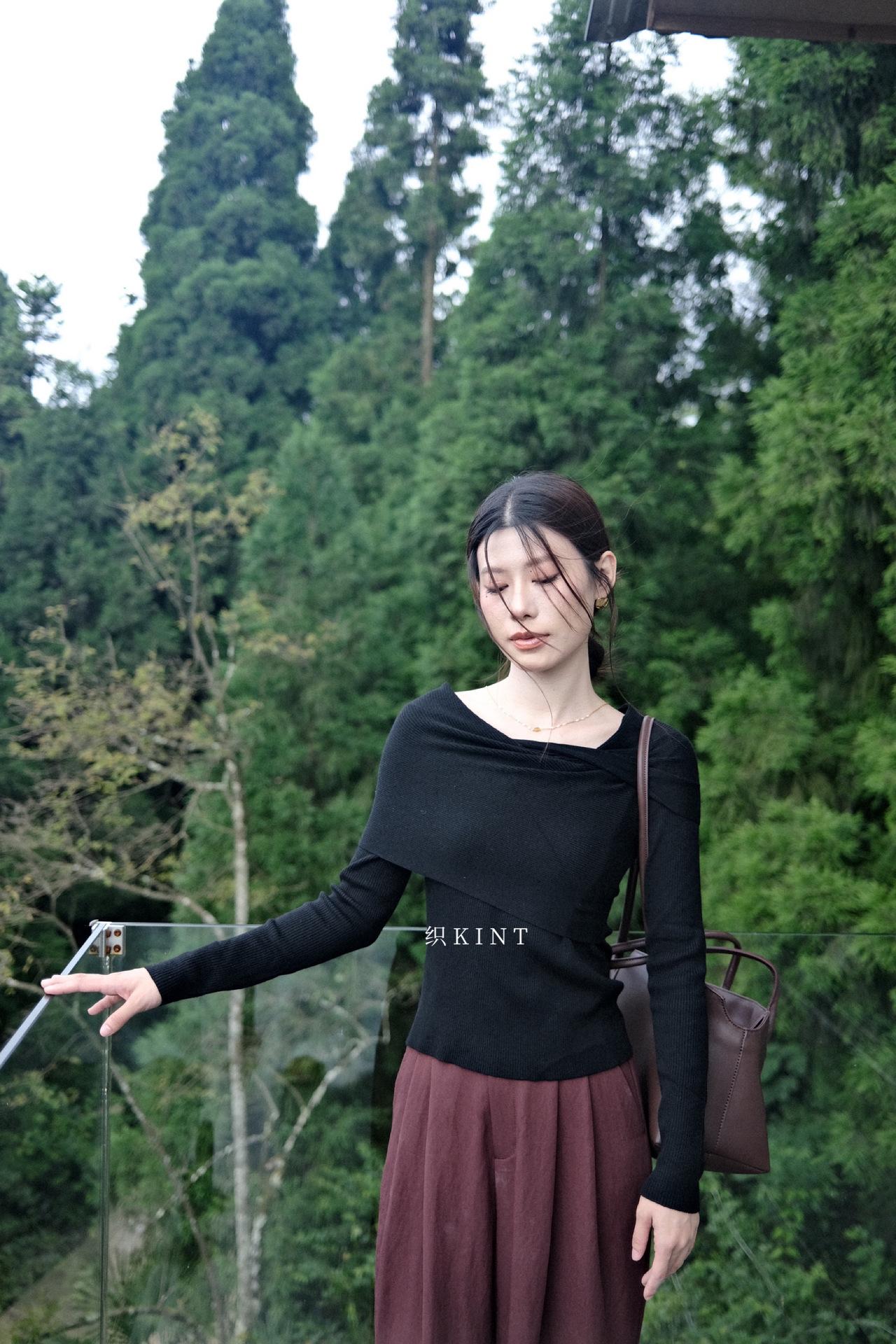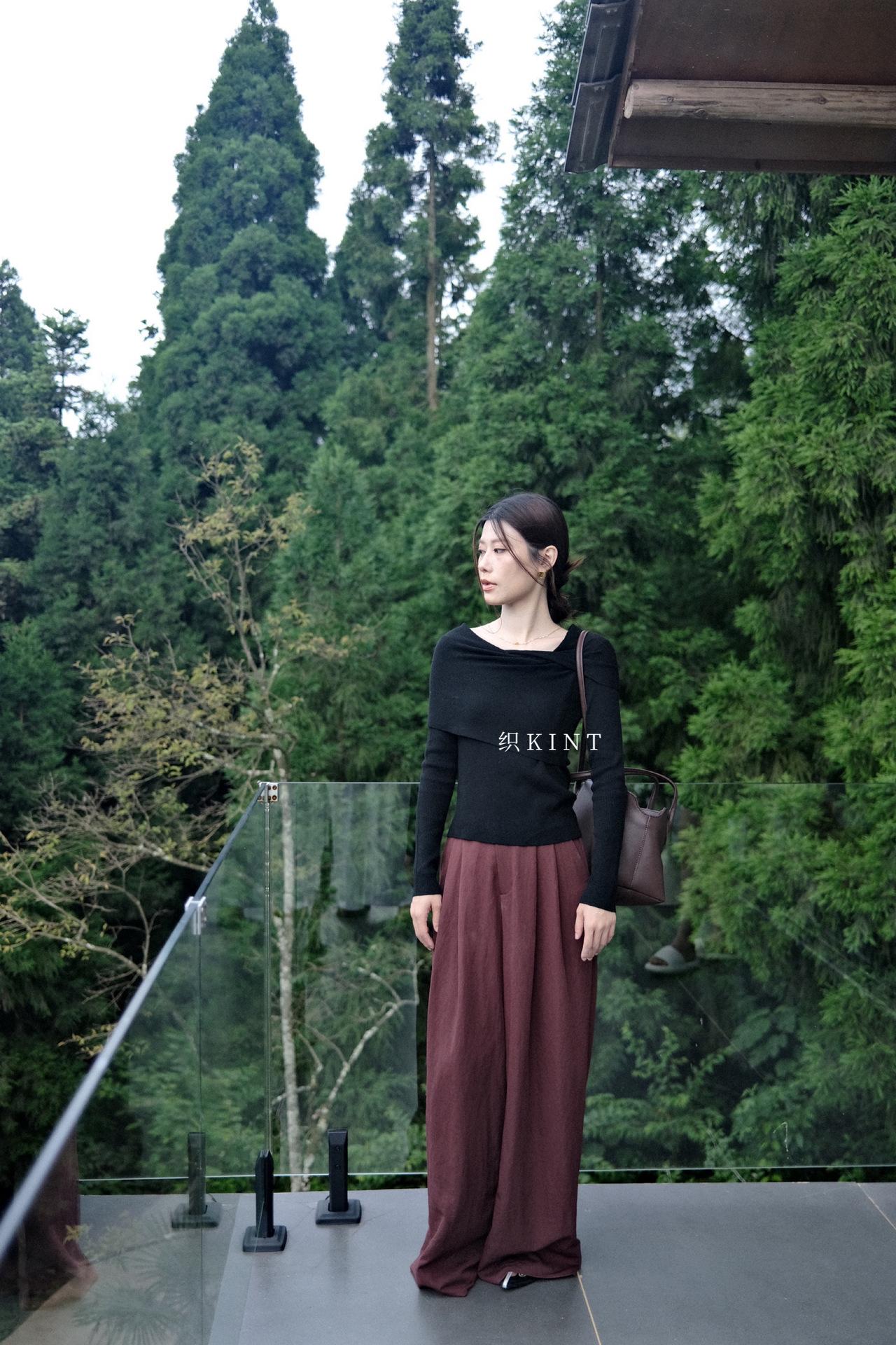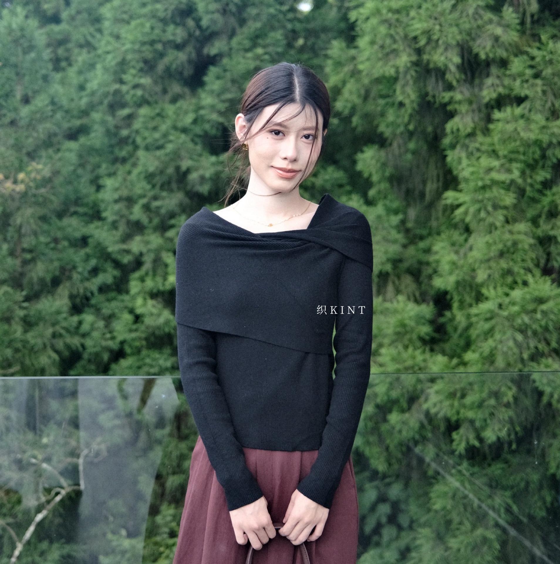 Top de Seda y Lana con Escote Irregular Único, Diseño Versátil y Chic