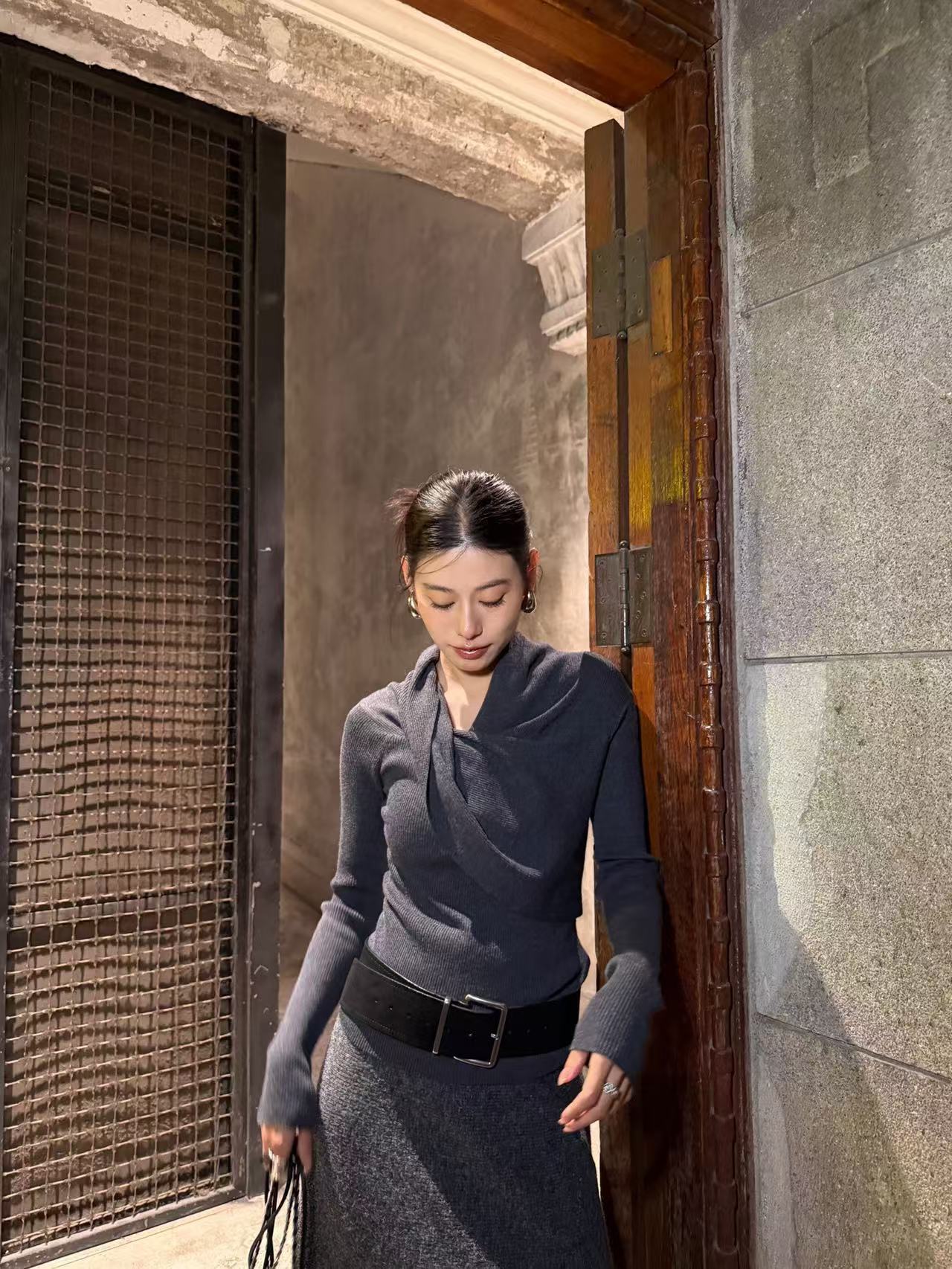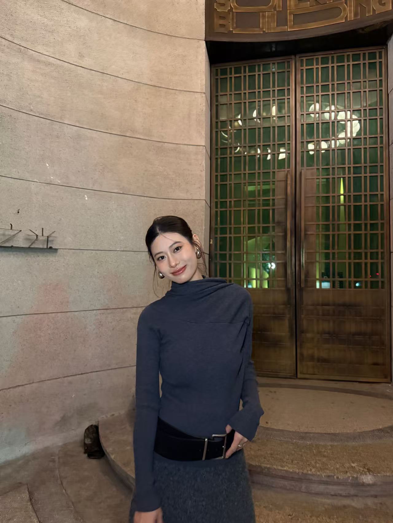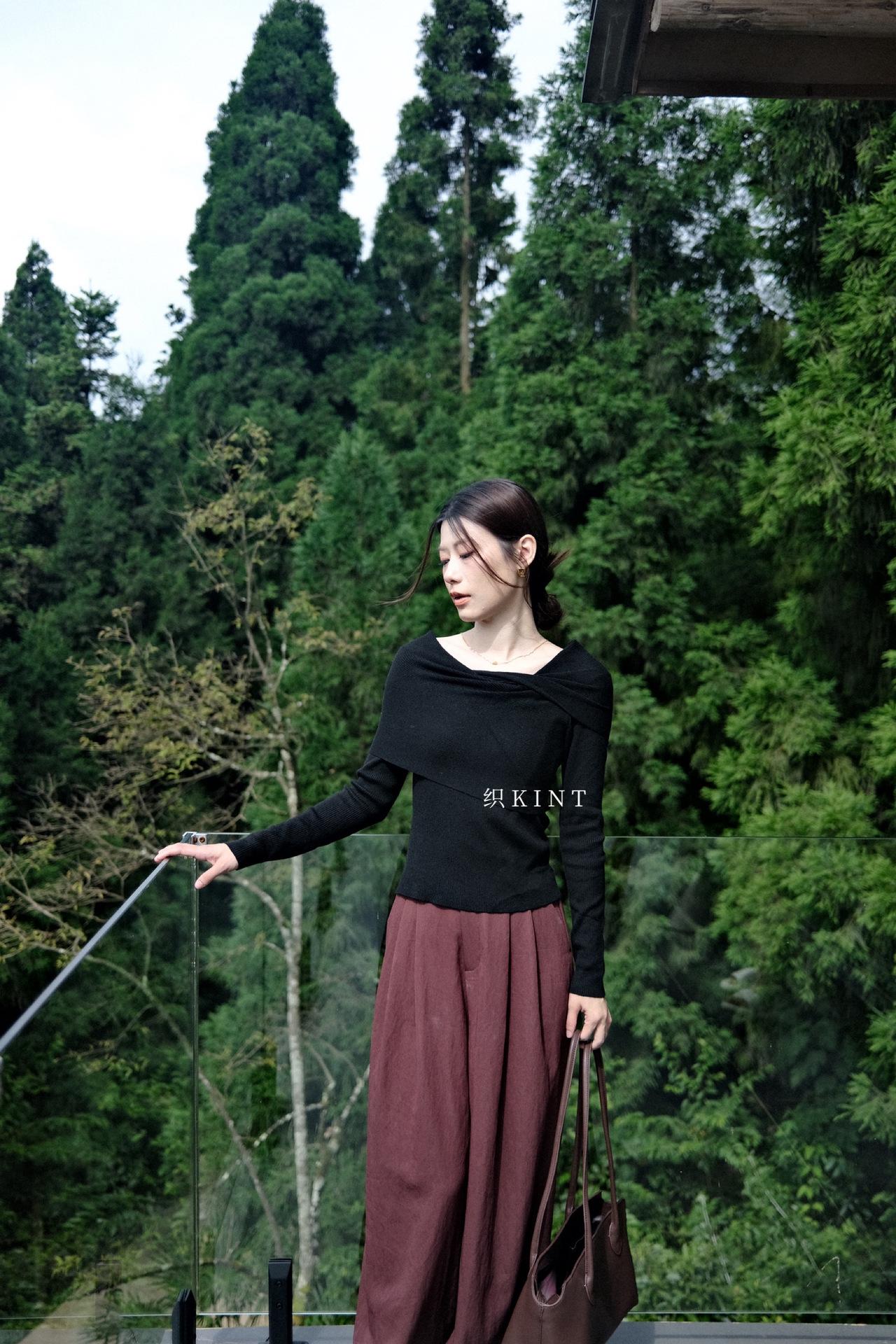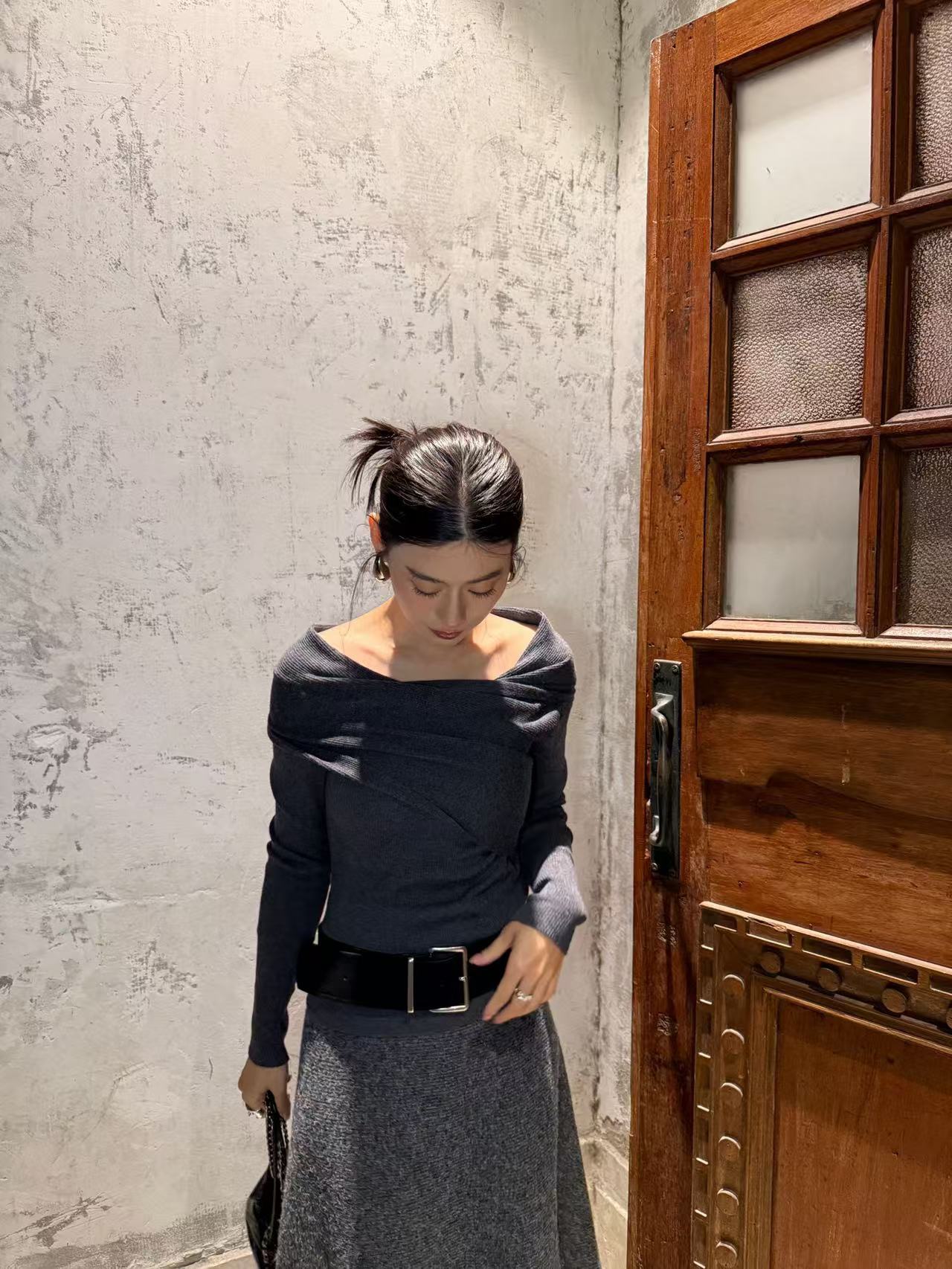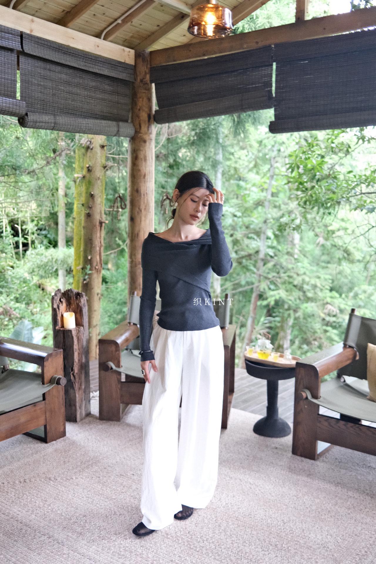 Top de Seda y Lana con Escote Irregular Único, Diseño Versátil y Chic