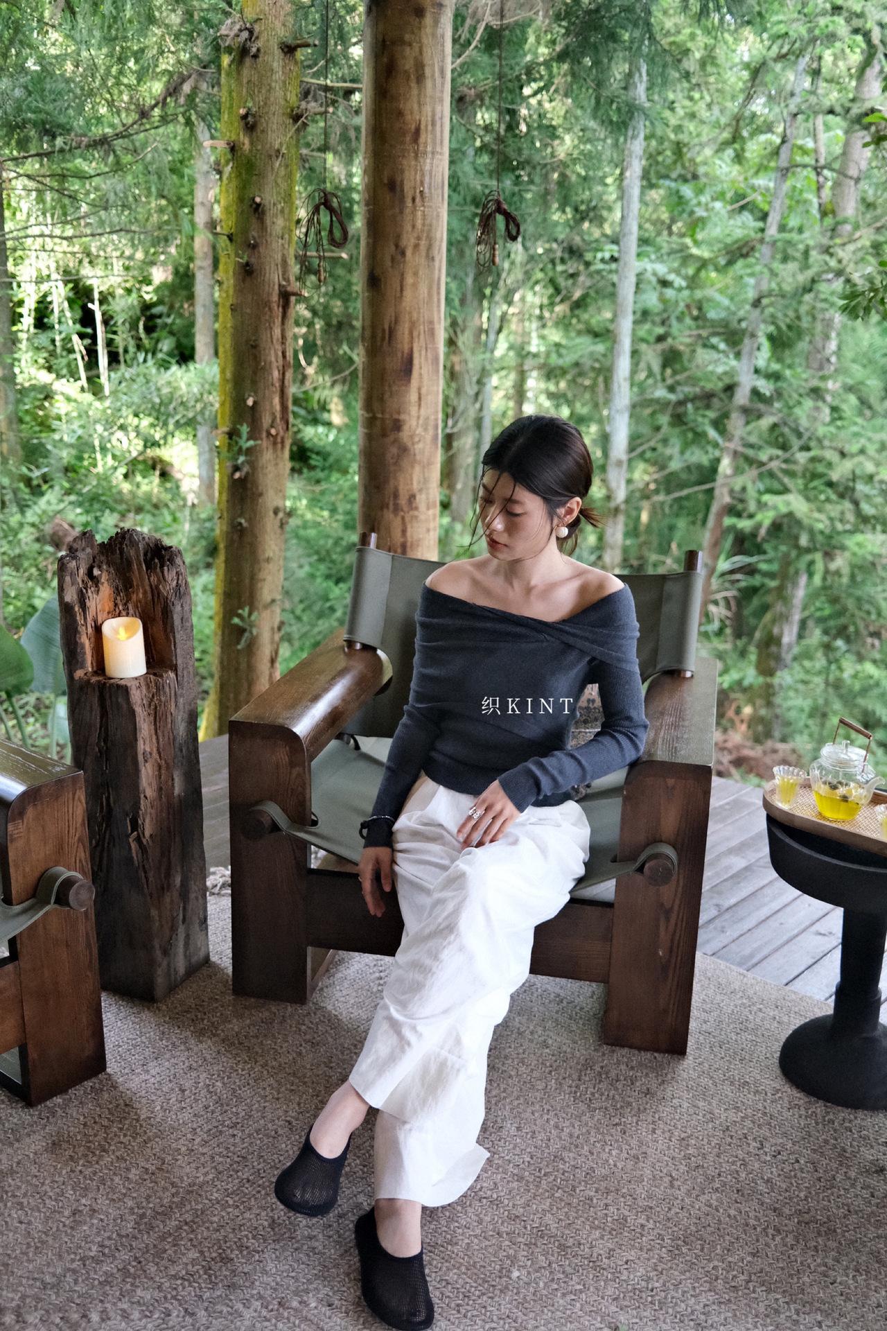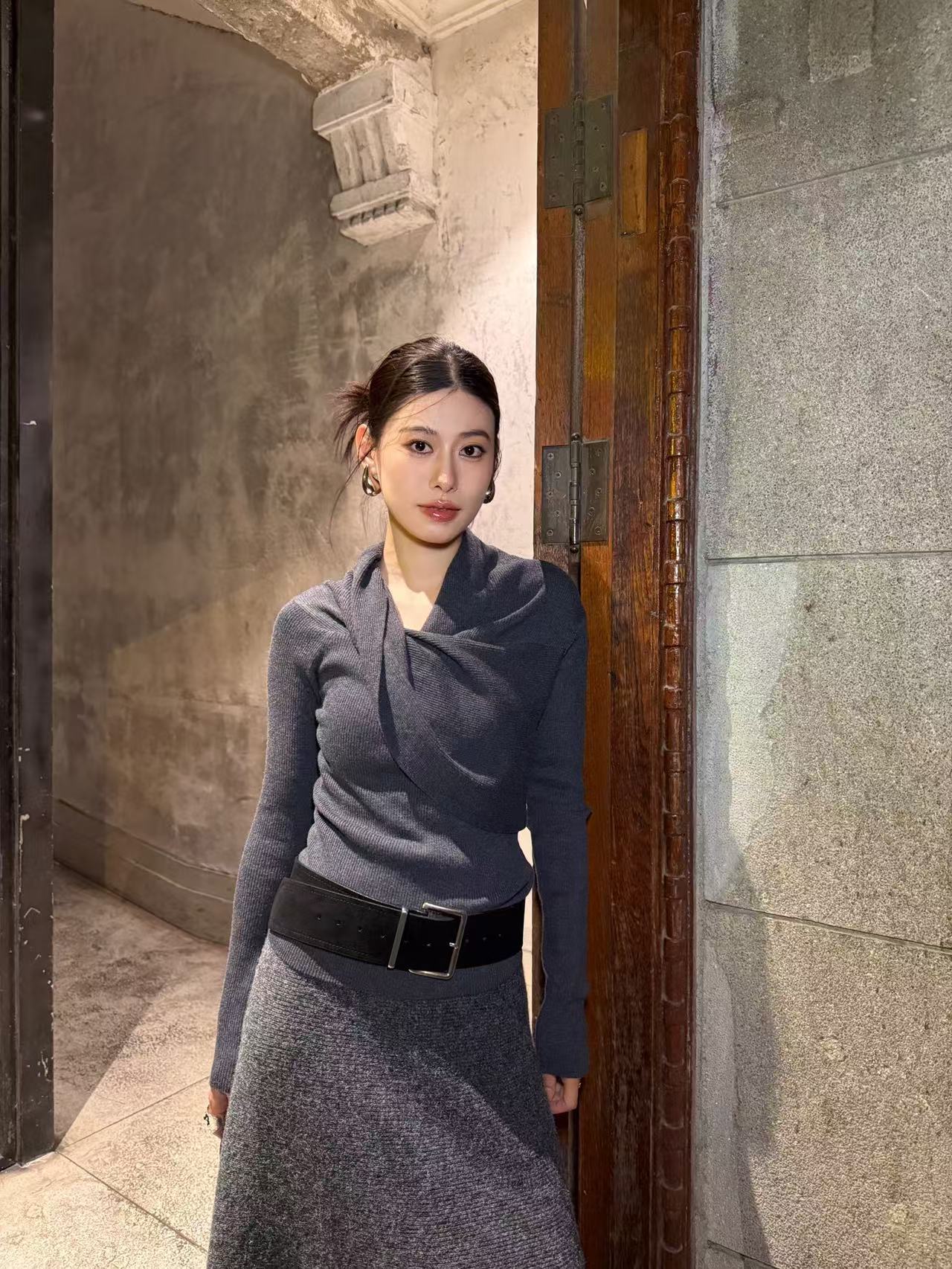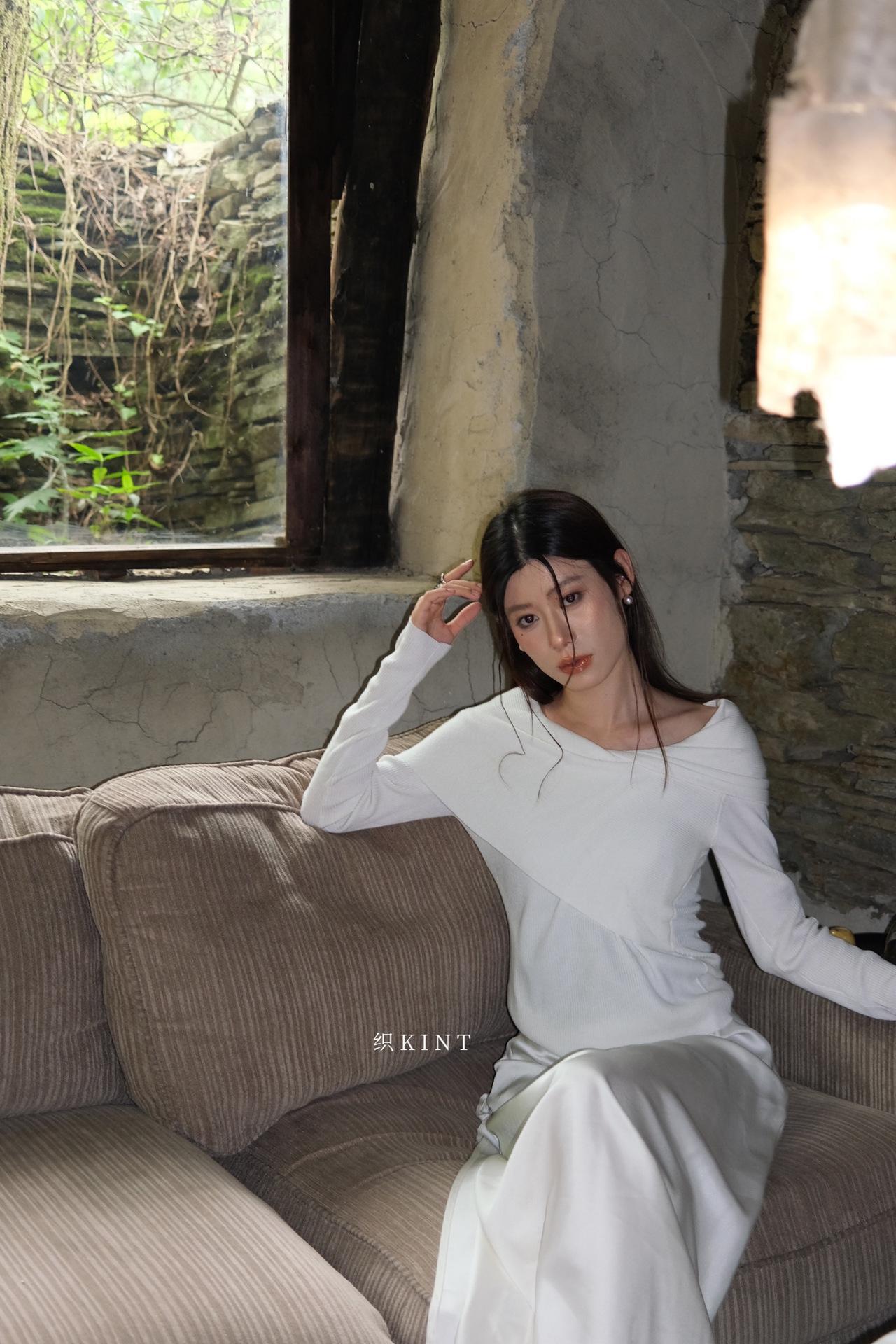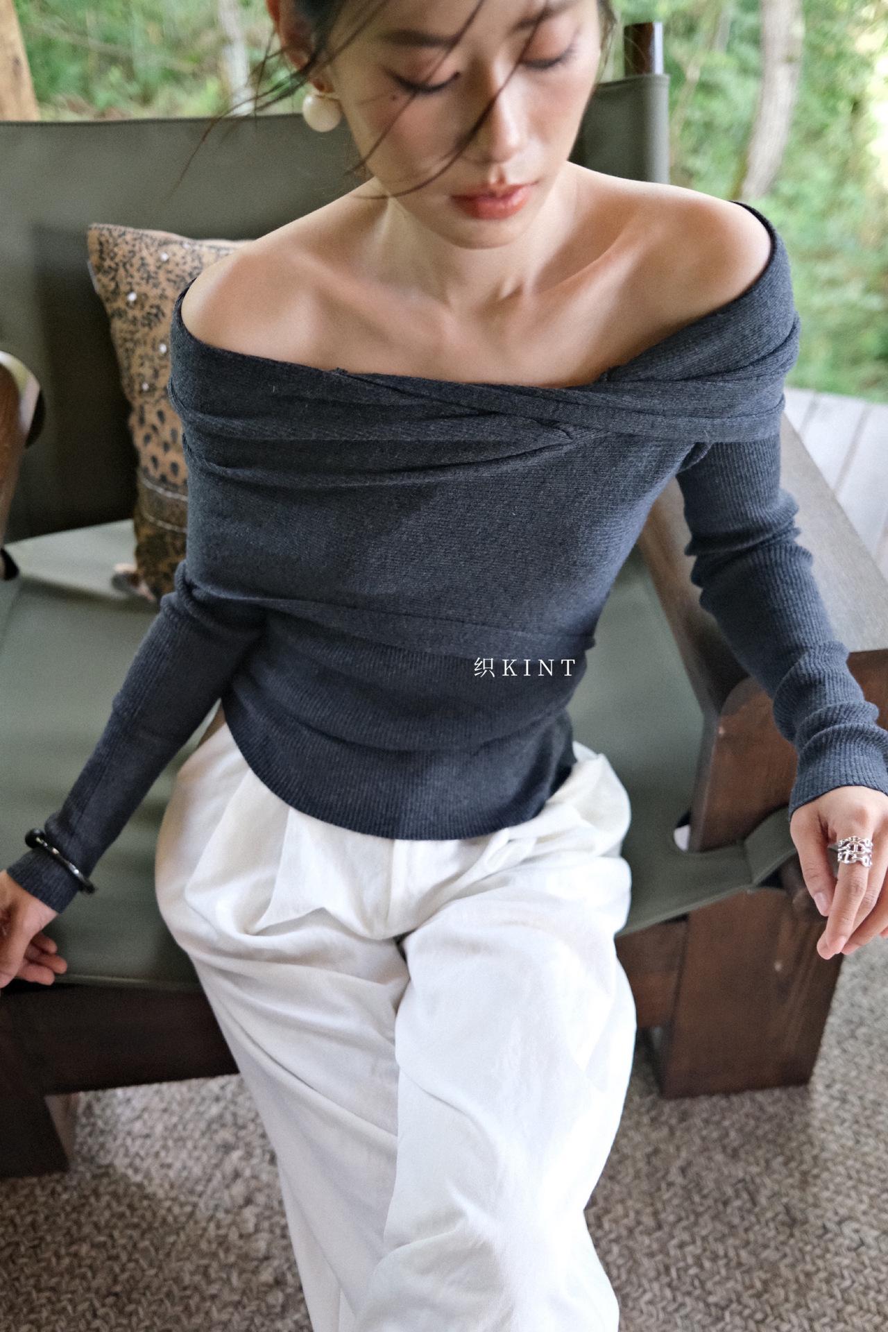 Top de Seda y Lana con Escote Irregular Único, Diseño Versátil y Chic