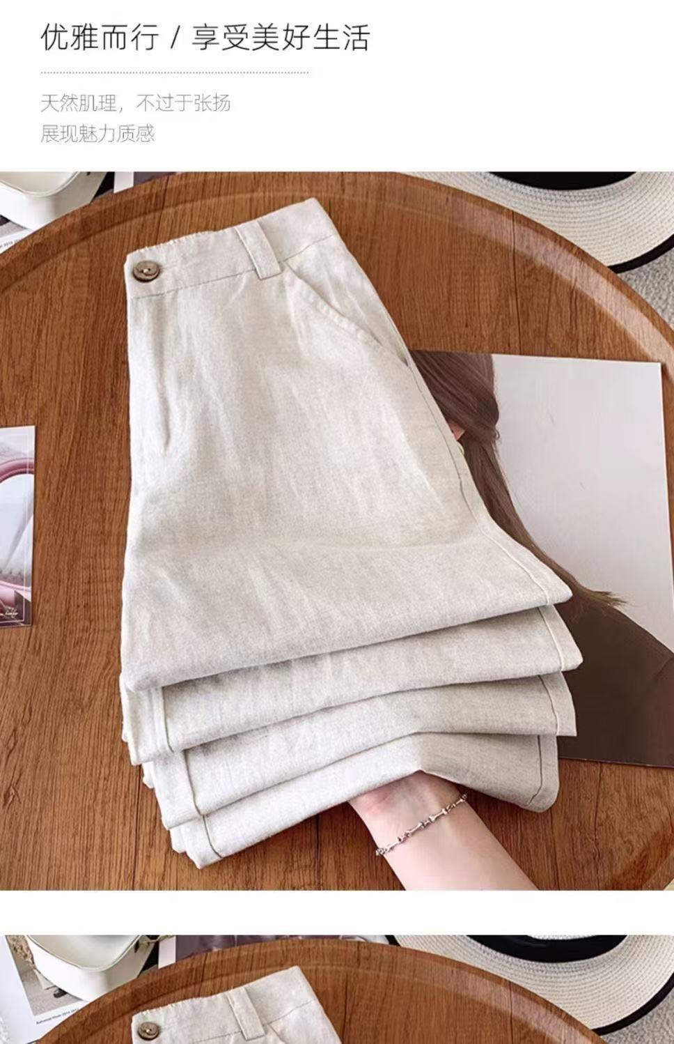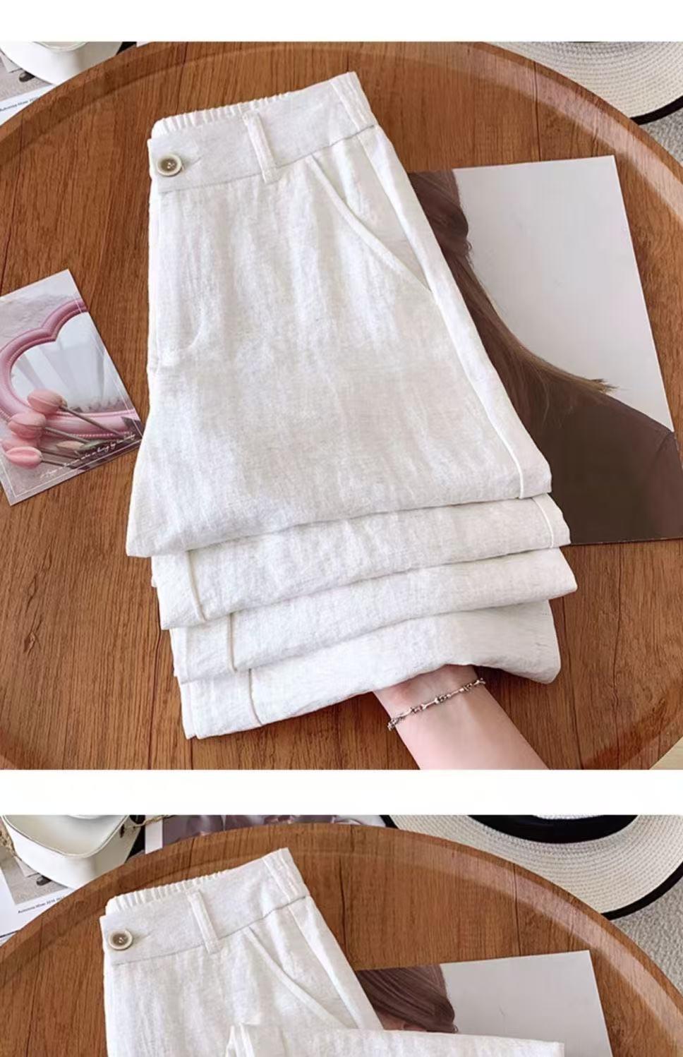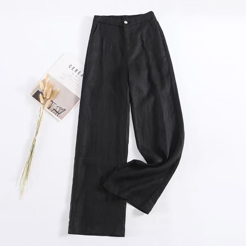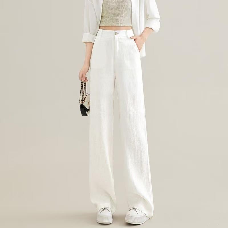 Pantalones rectos de algodón y lino para mujer, de pierna ancha, finos, de cintura alta, adelgazantes, holgados, informales, de verano