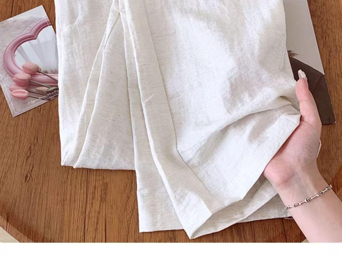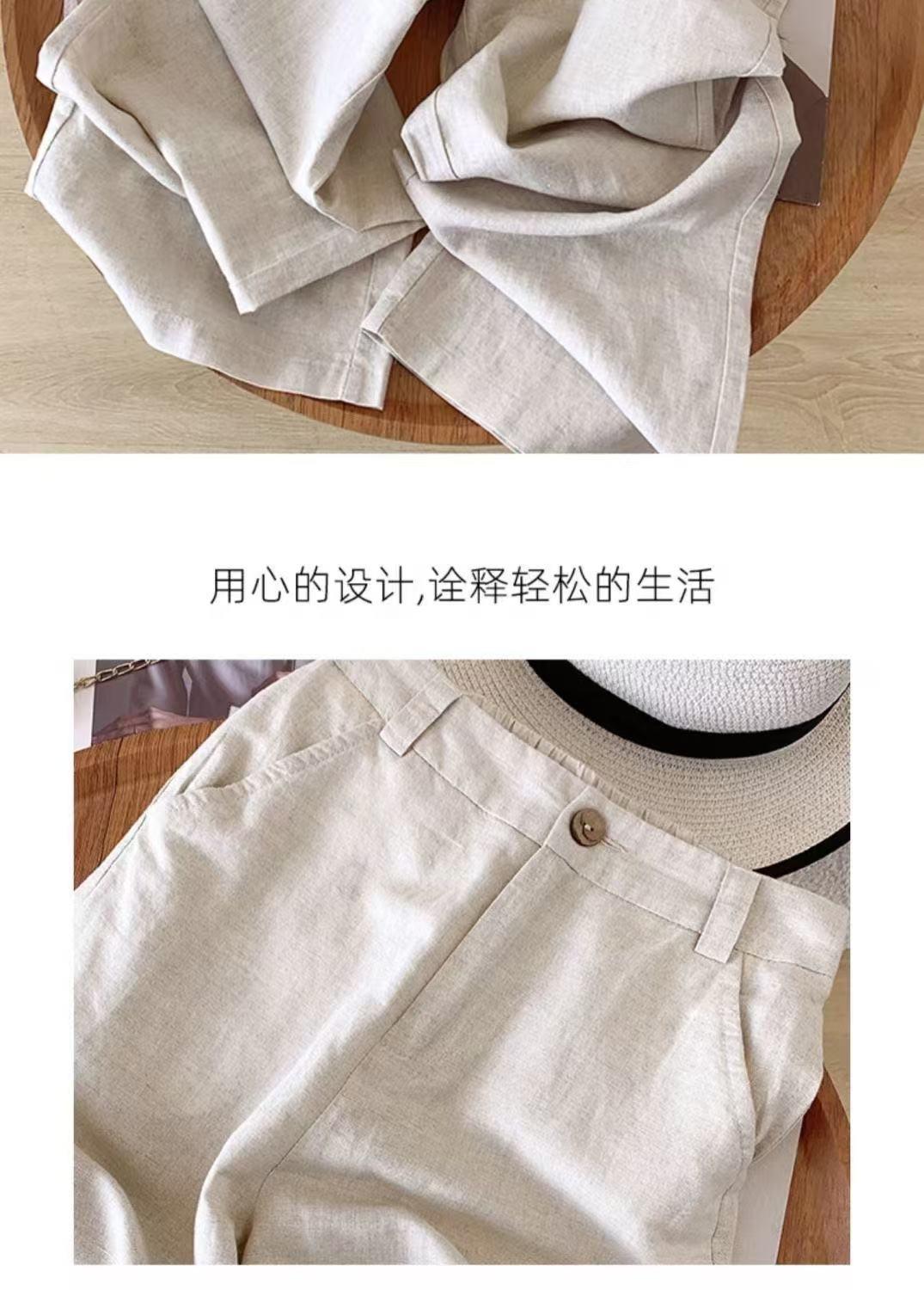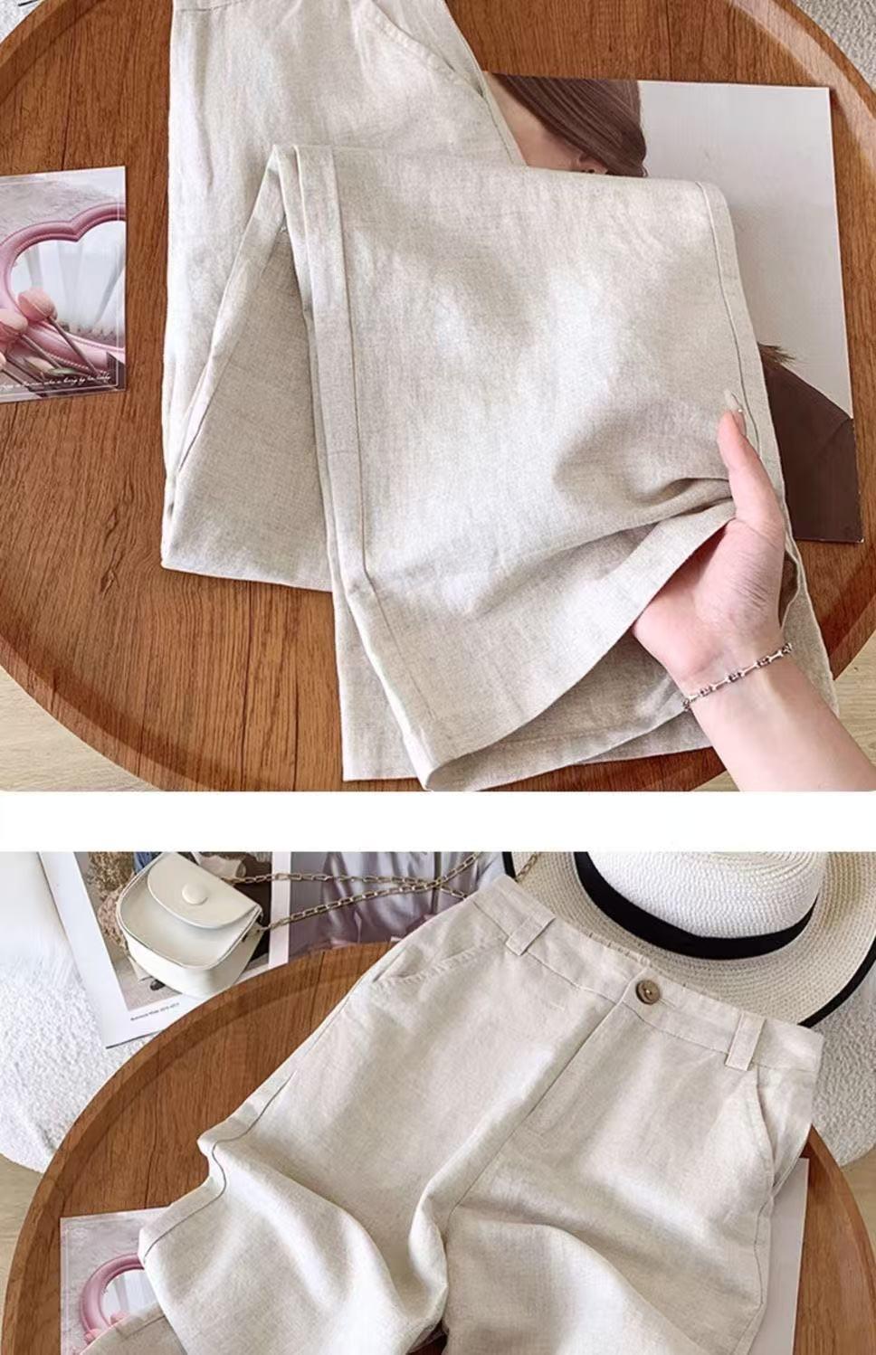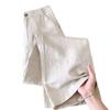 Pantalones rectos de algodón y lino para mujer, de pierna ancha, finos, de cintura alta, adelgazantes, holgados, informales, de verano