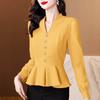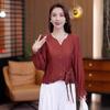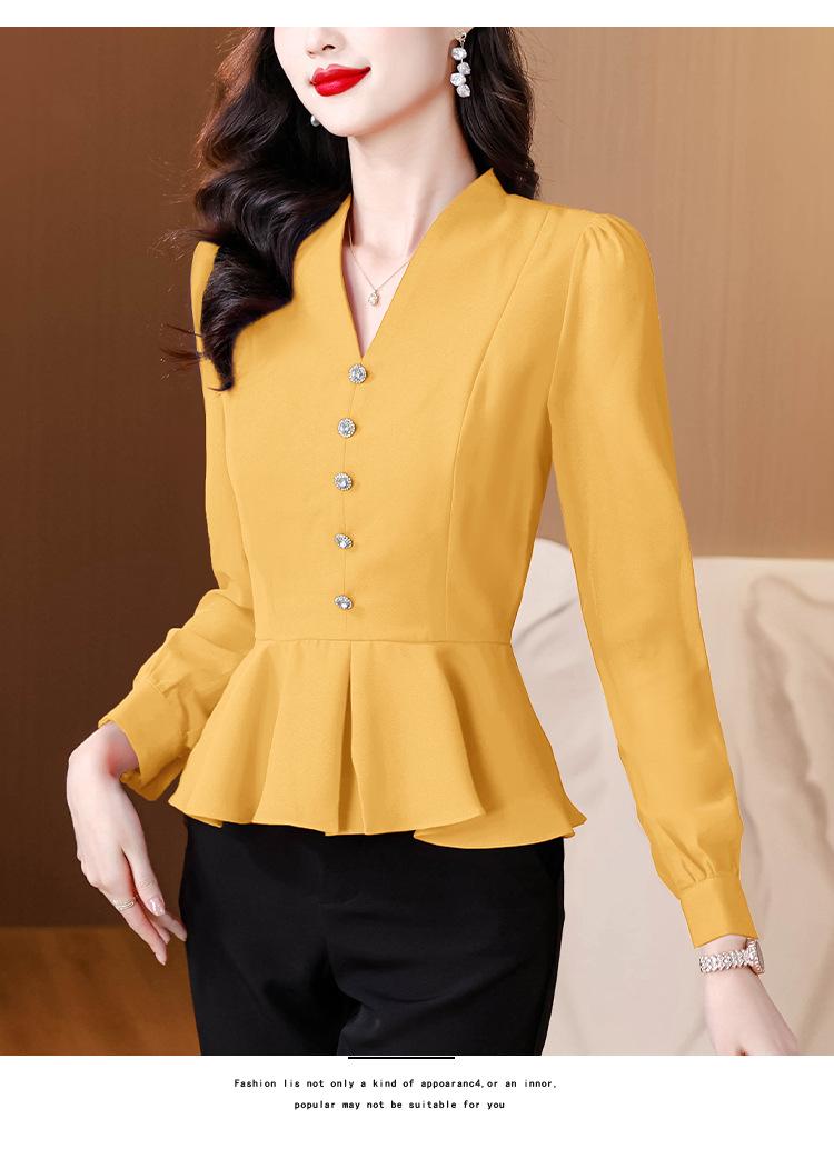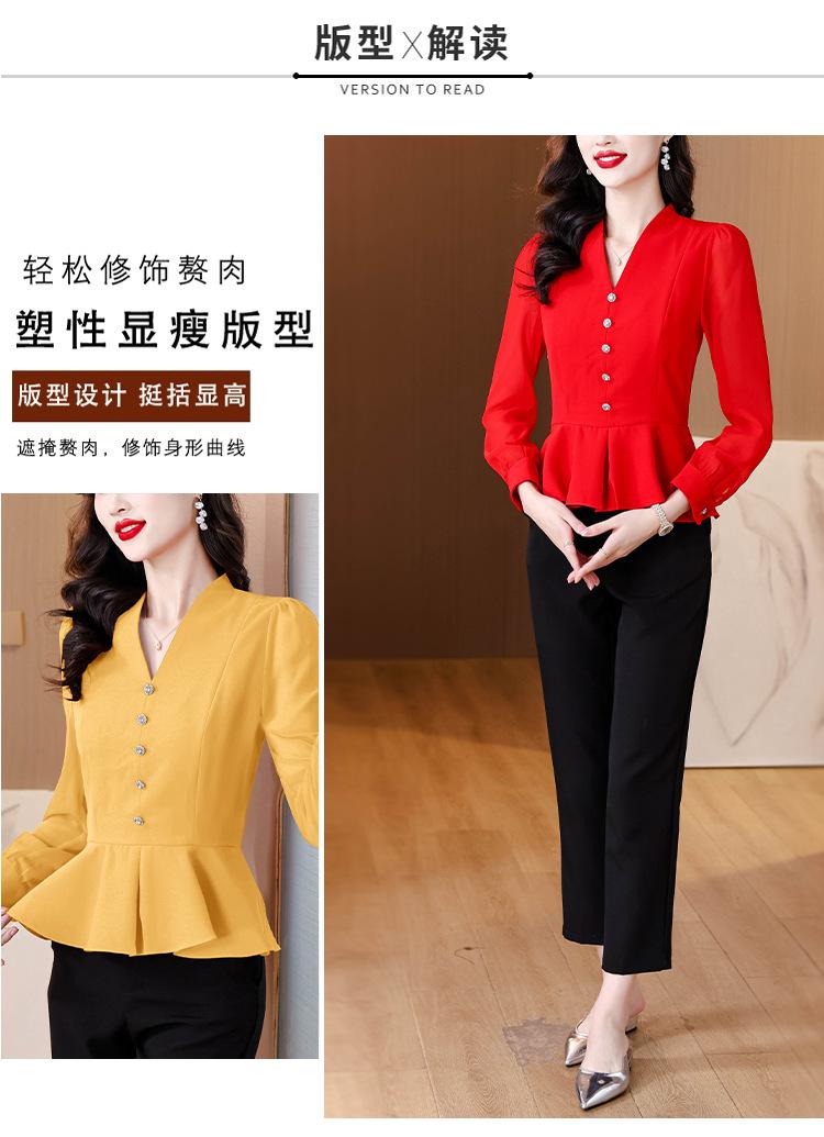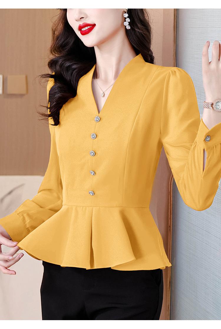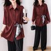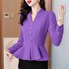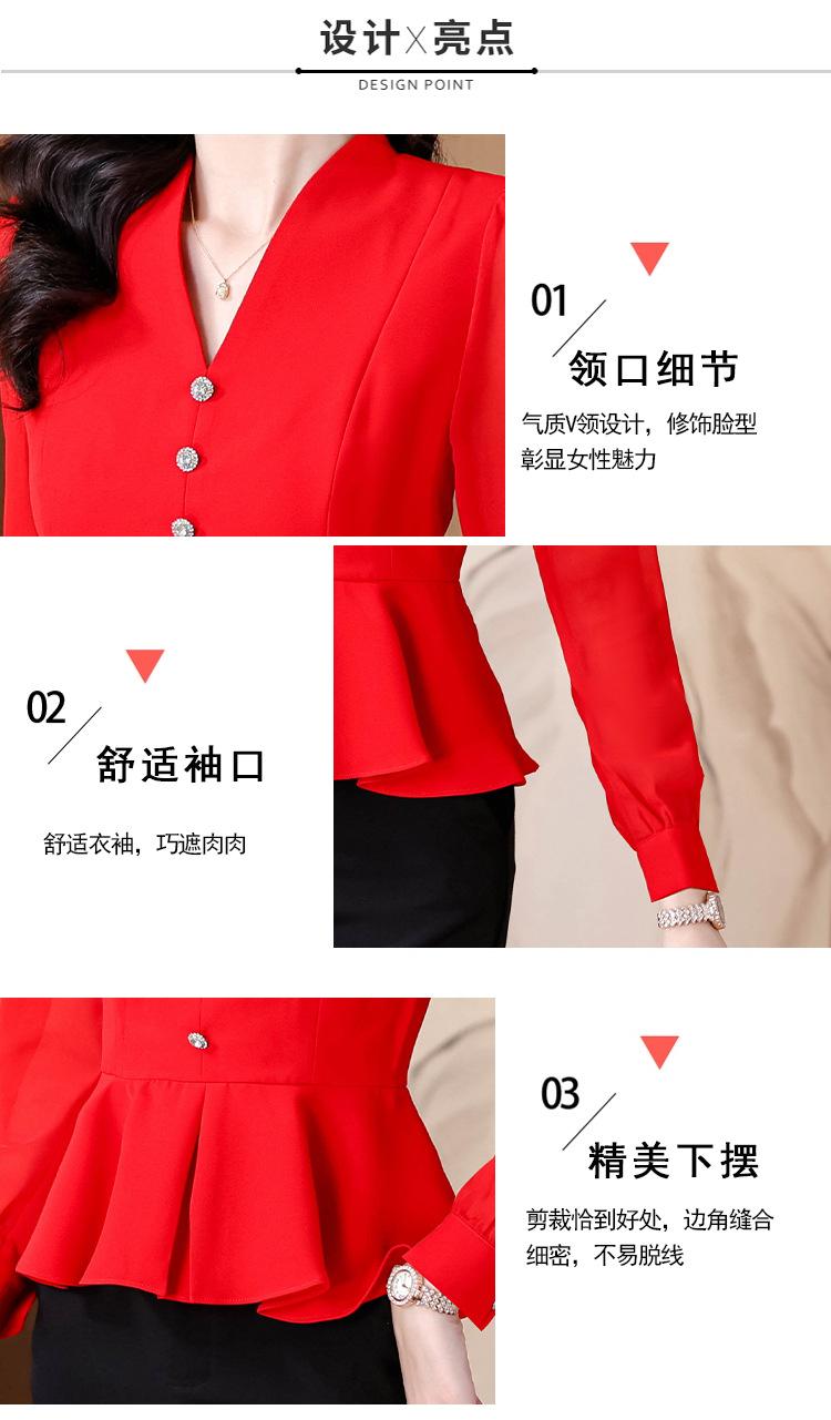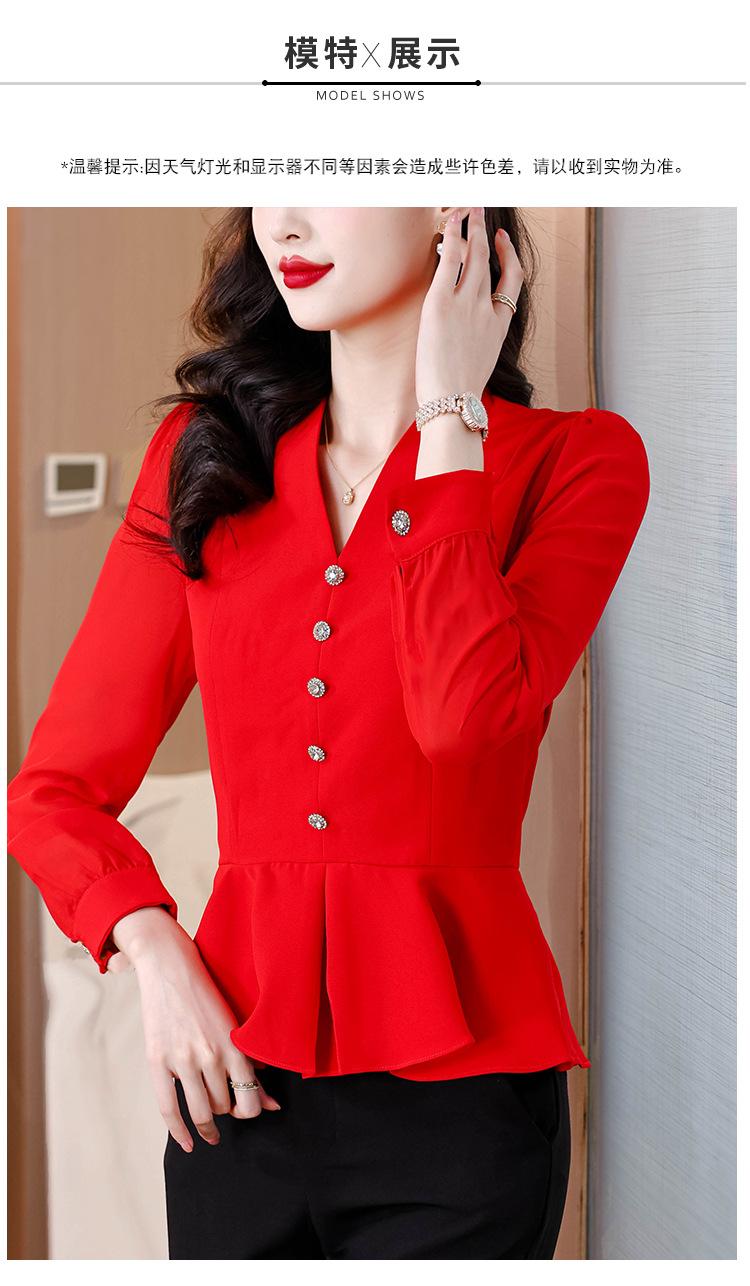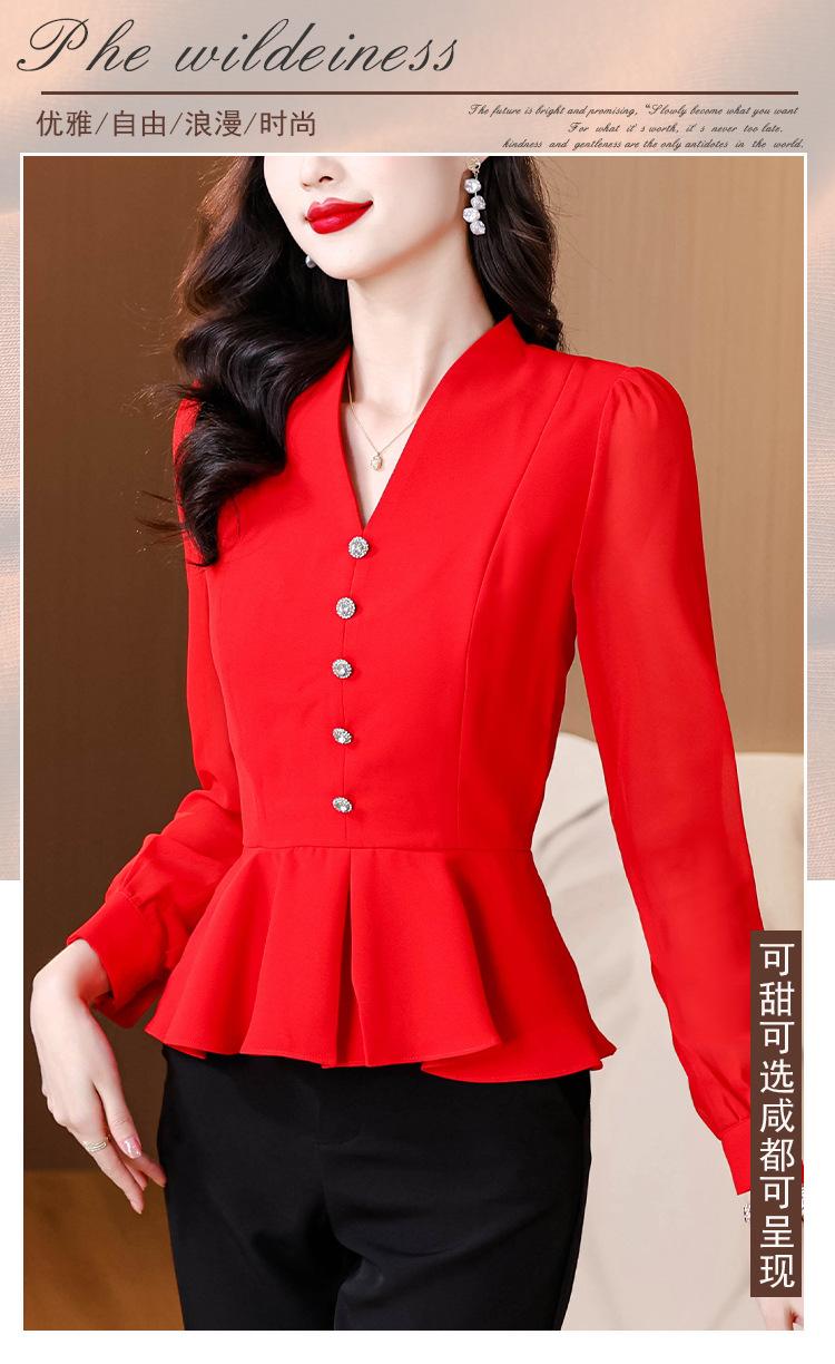 Camisa Roja de Manga Larga Adelgazante de Moda para Mujer Otoño Nueva Temperamento Cuello en V Blusa Elegante Mamá Top con Dobladillo Acampanado