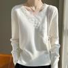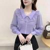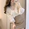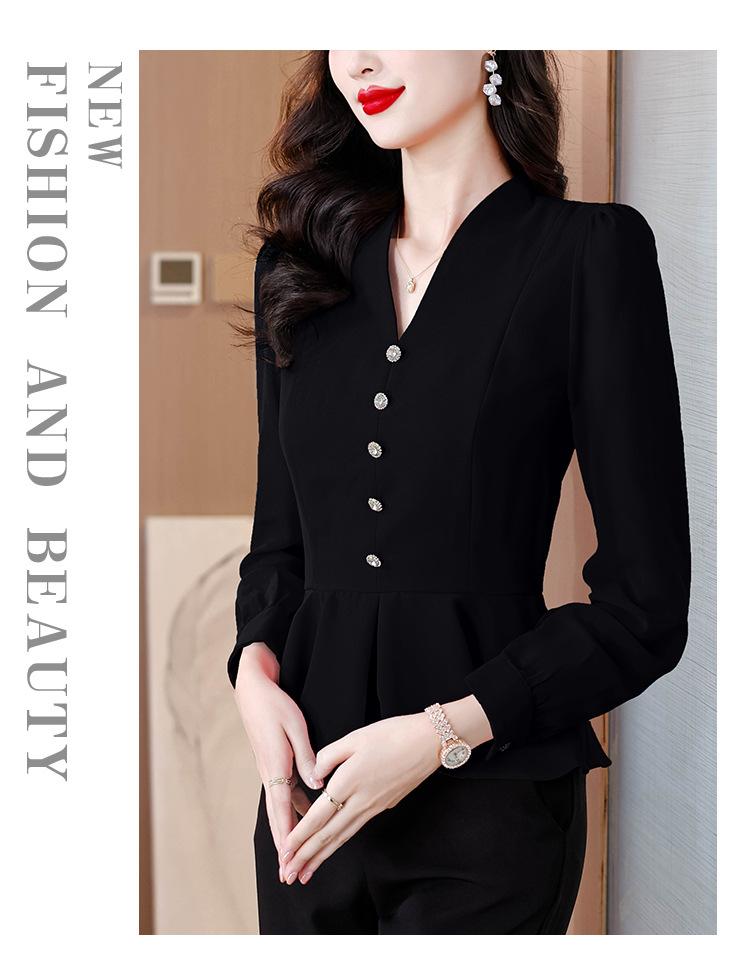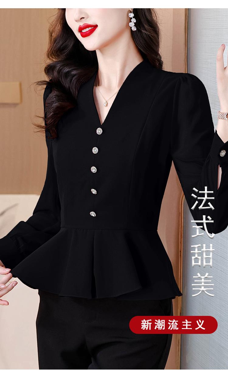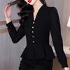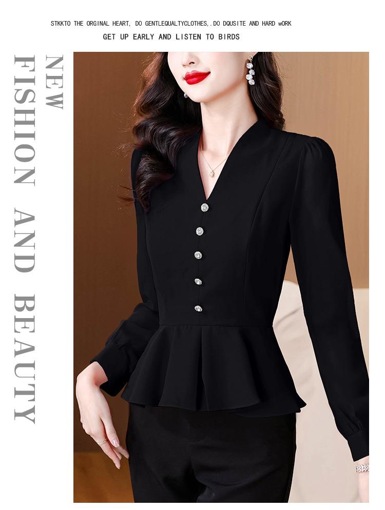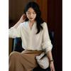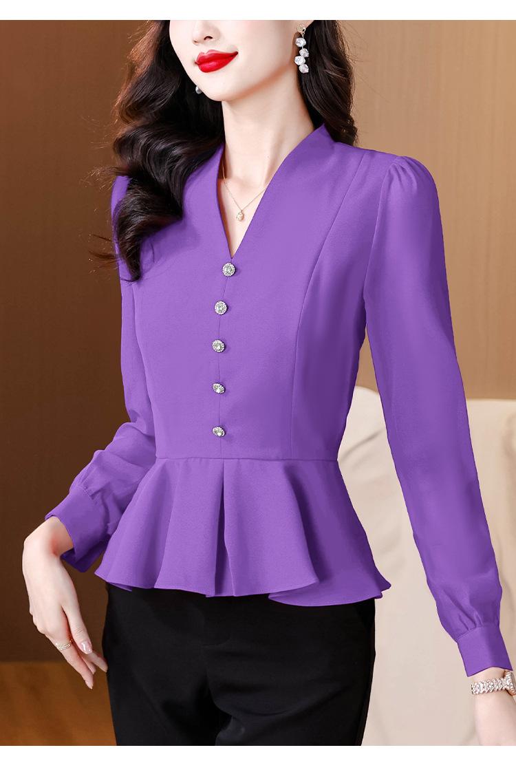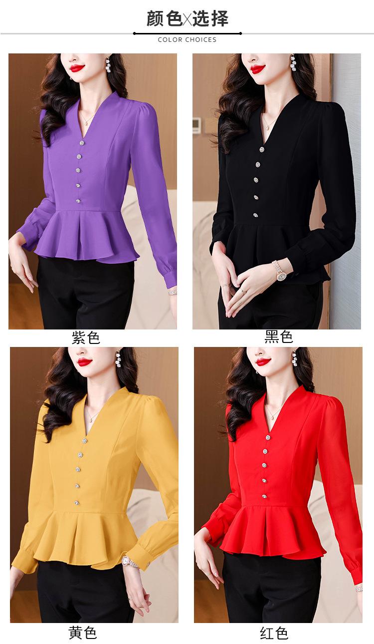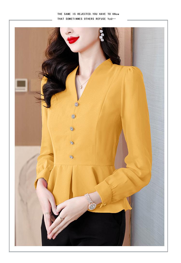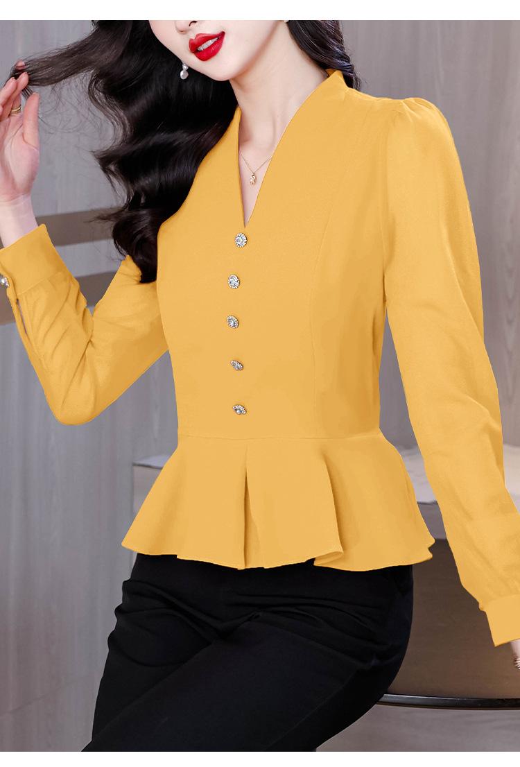 Camisa Roja de Manga Larga Adelgazante de Moda para Mujer Otoño Nueva Temperamento Cuello en V Blusa Elegante Mamá Top con Dobladillo Acampanado