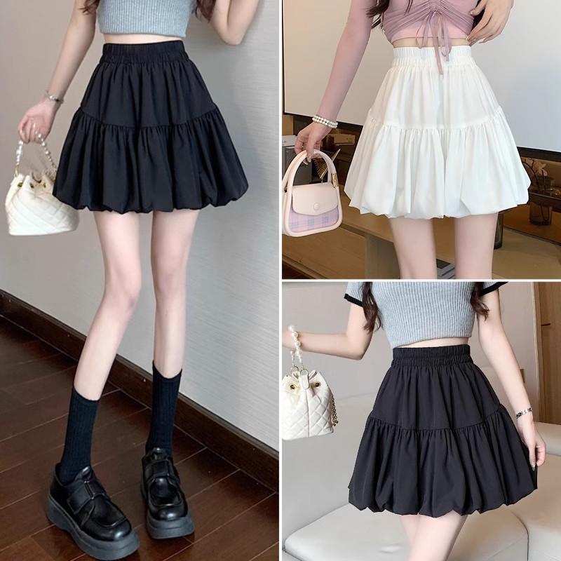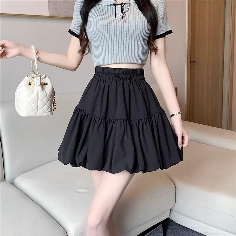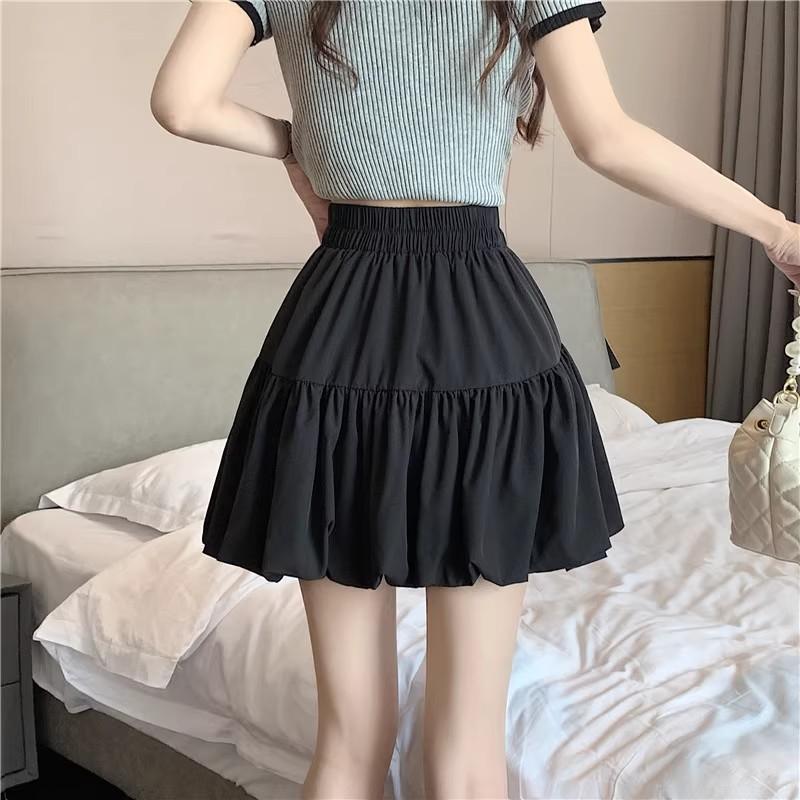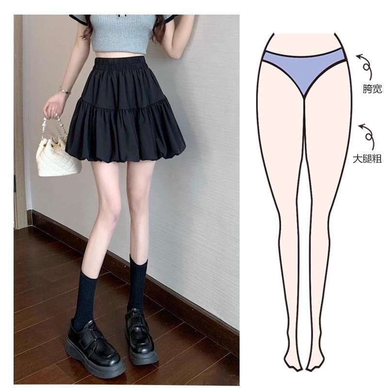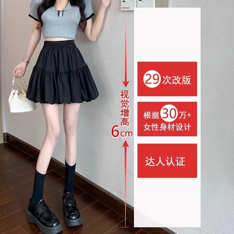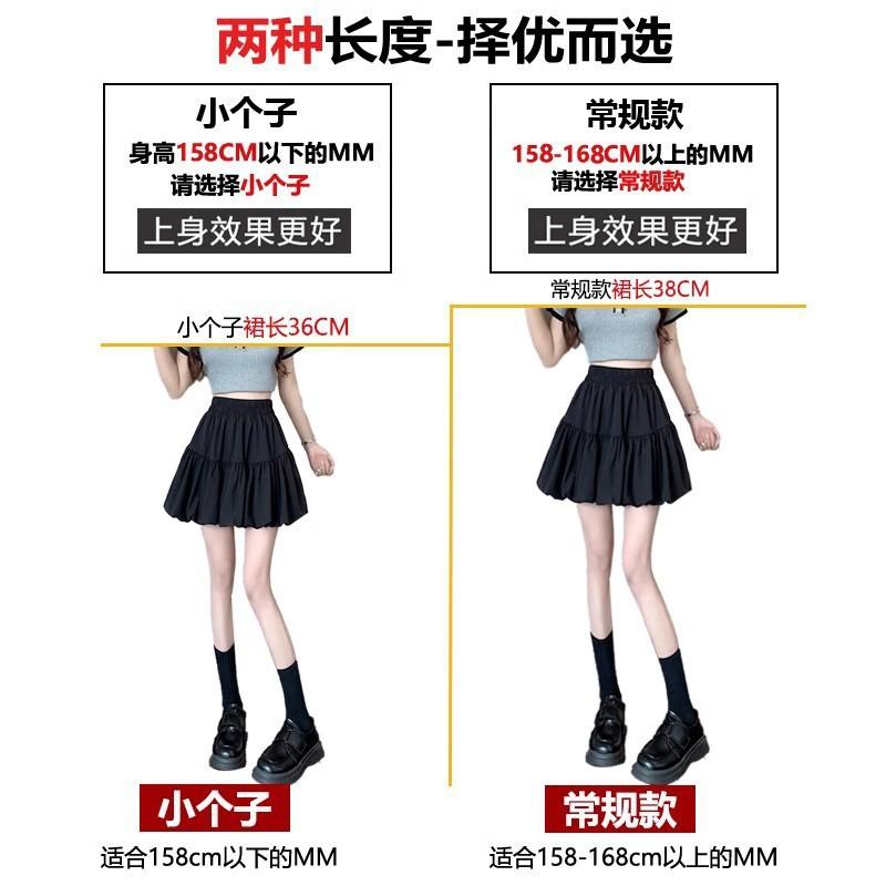 Primavera/Verano 2025 Nueva Falda Corta de Burbuja Mujer Cintura Alta Adelgazante Línea A Petite Media Falda Anti-exposición Versátil Abullonada