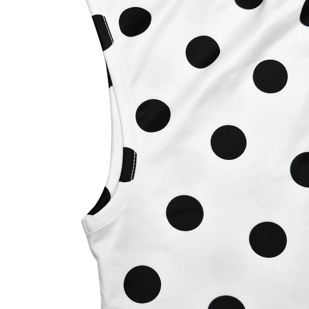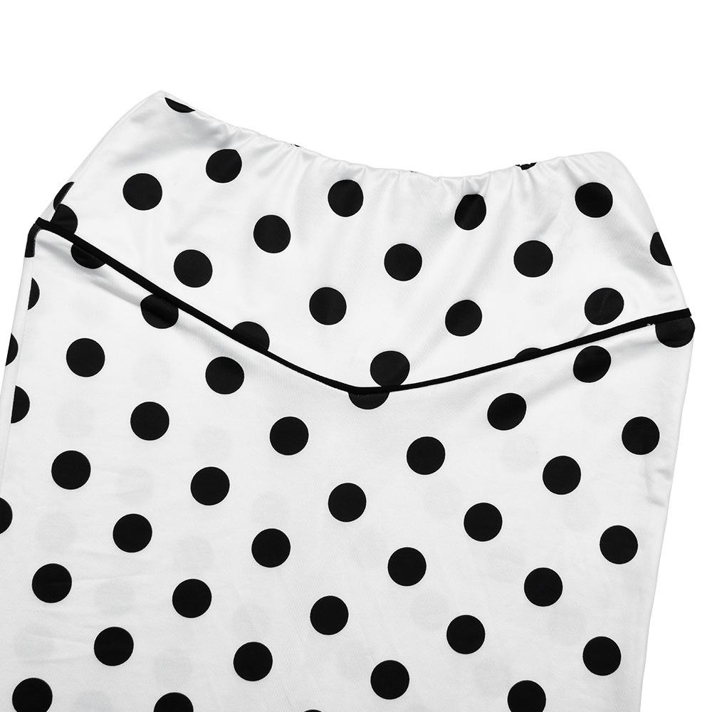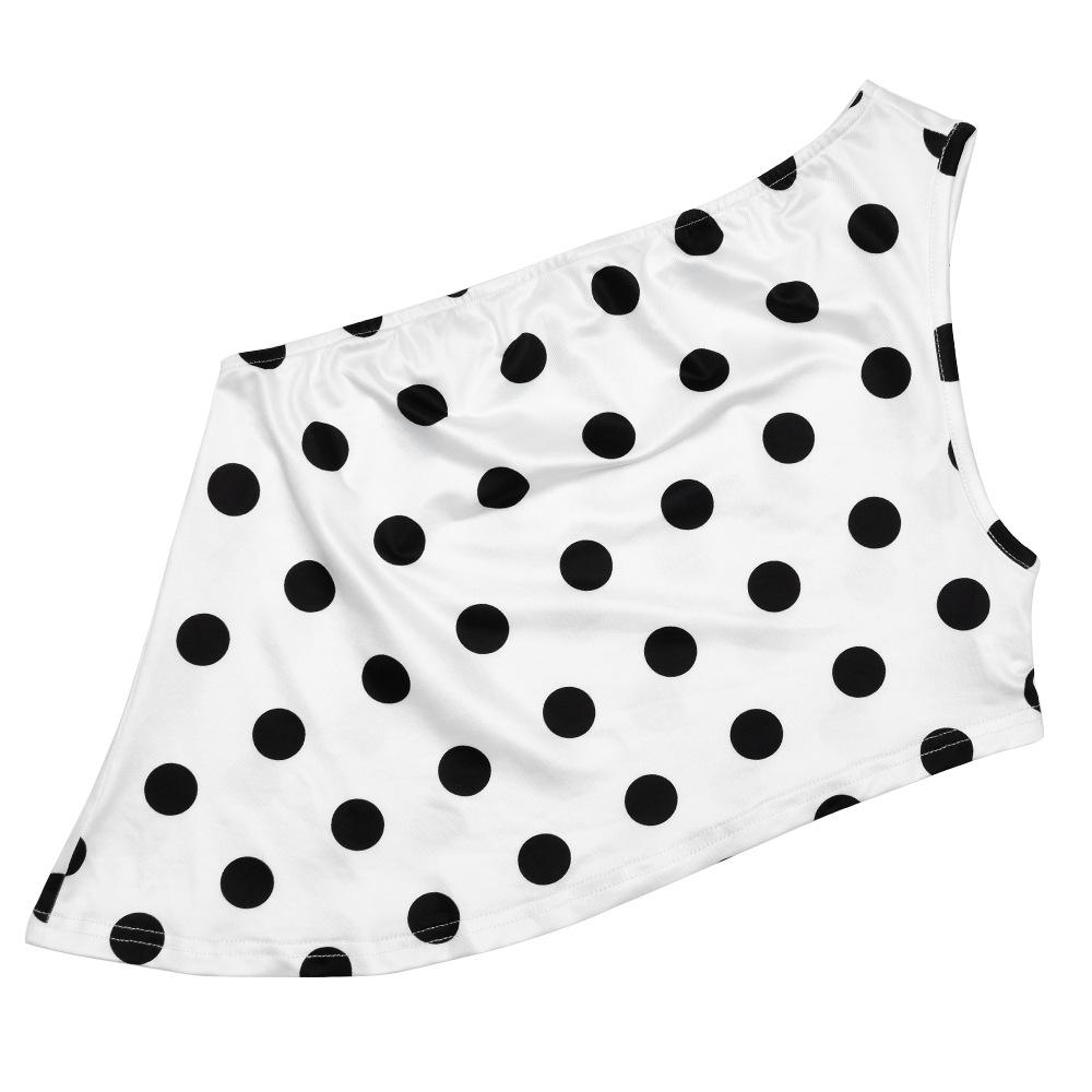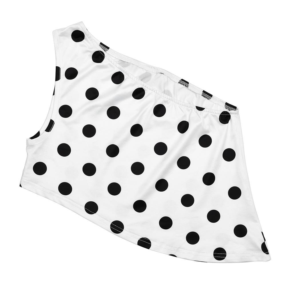White, Made of printed milk silk fabric, with a one-shoulder printed polka dot design