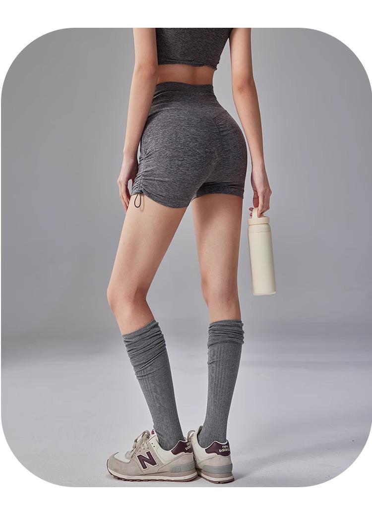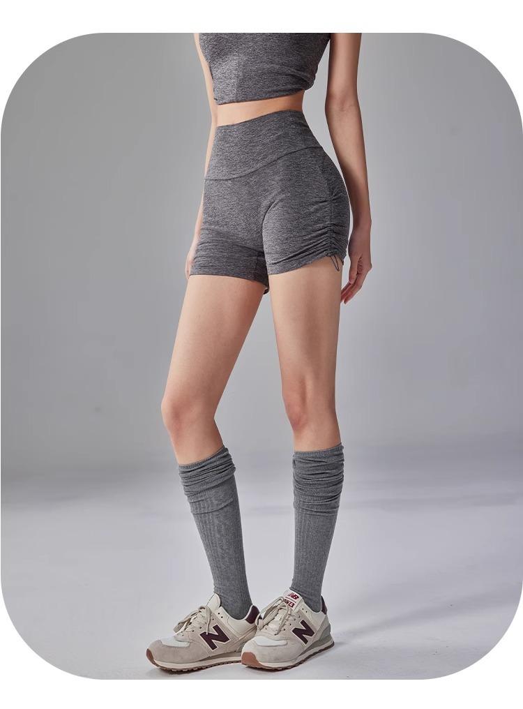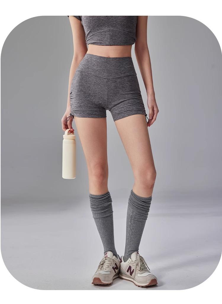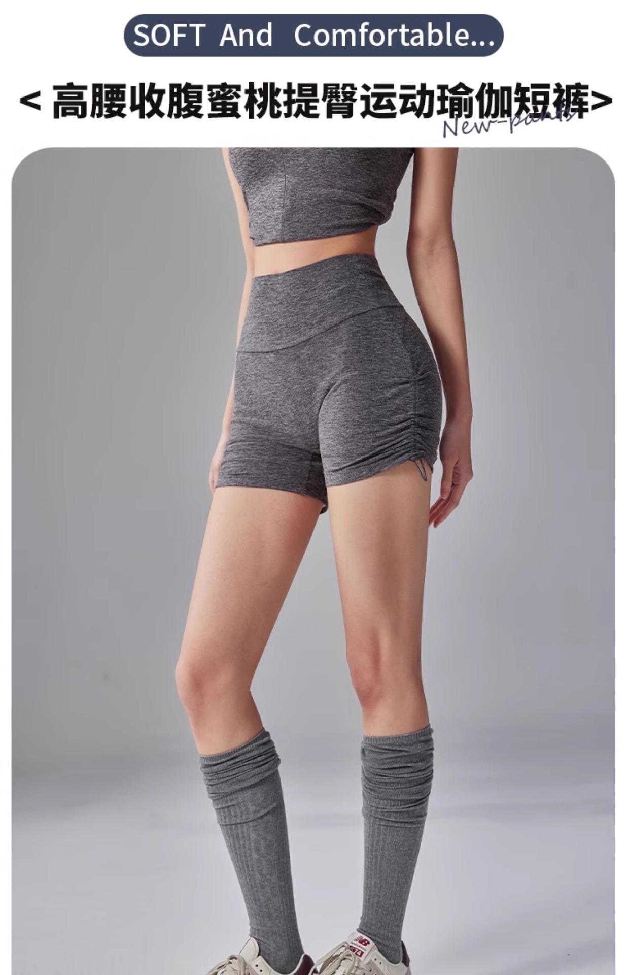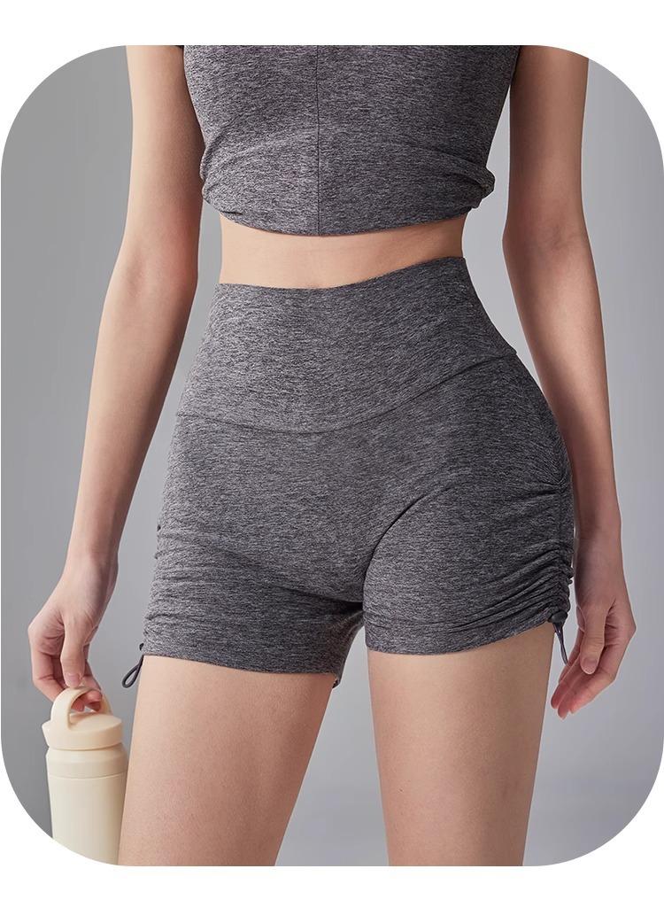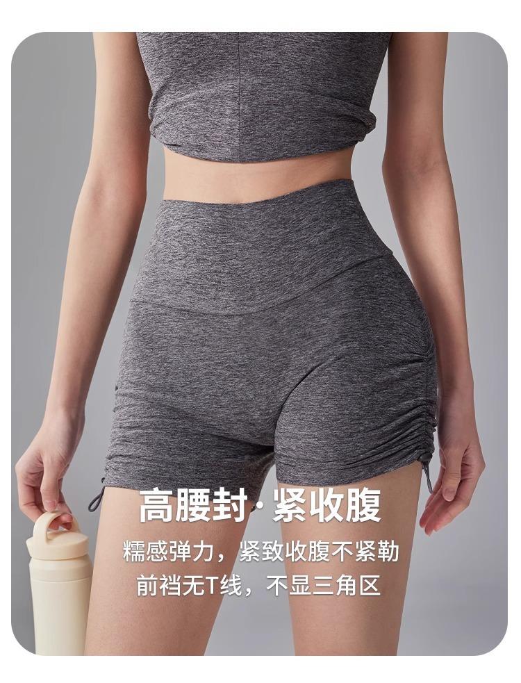Pantalones de Fitness de Verano para Mujer con Cordón Ajustable, Shorts de Yoga de Cintura Alta con Levantamiento de Cadera Melocotón, Transpirables para Exterior, para Correr, Deportivos, Pantalones de Tres Puntos Delgados