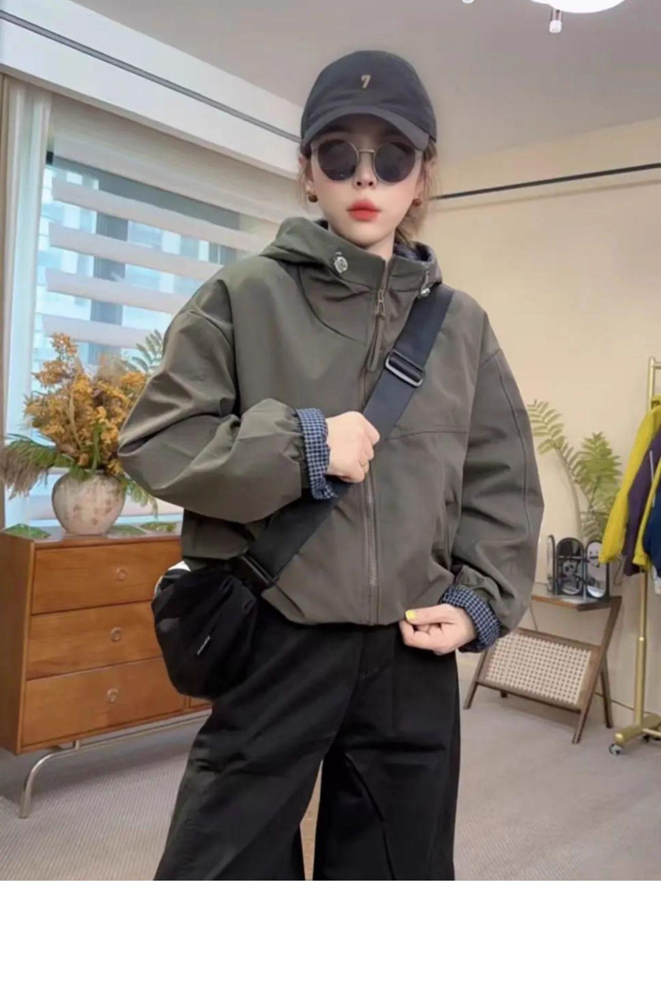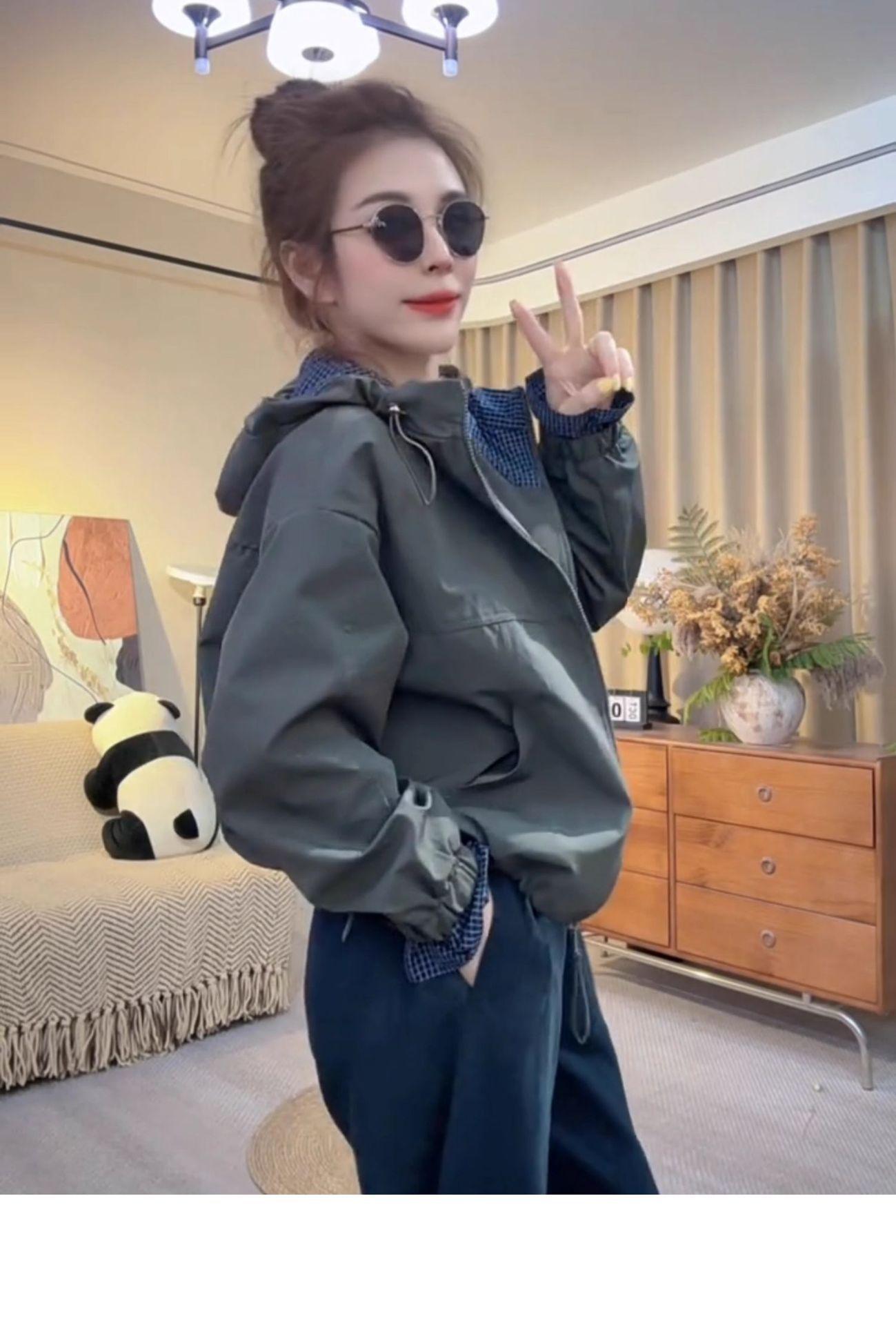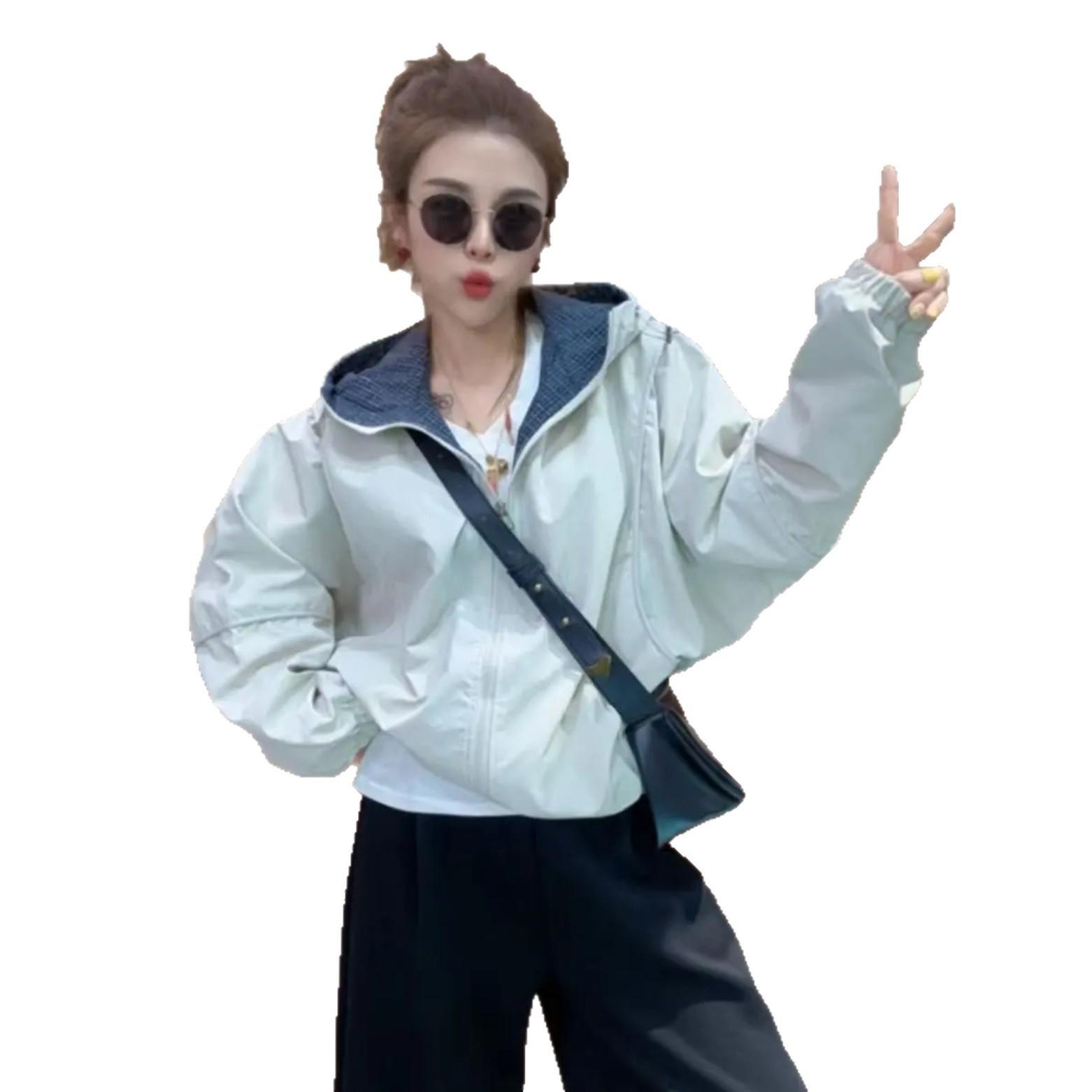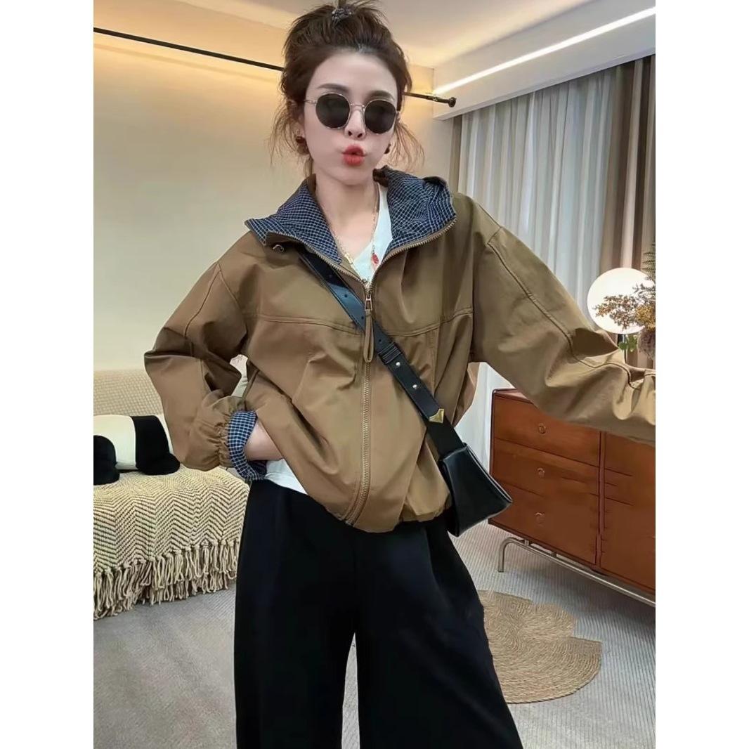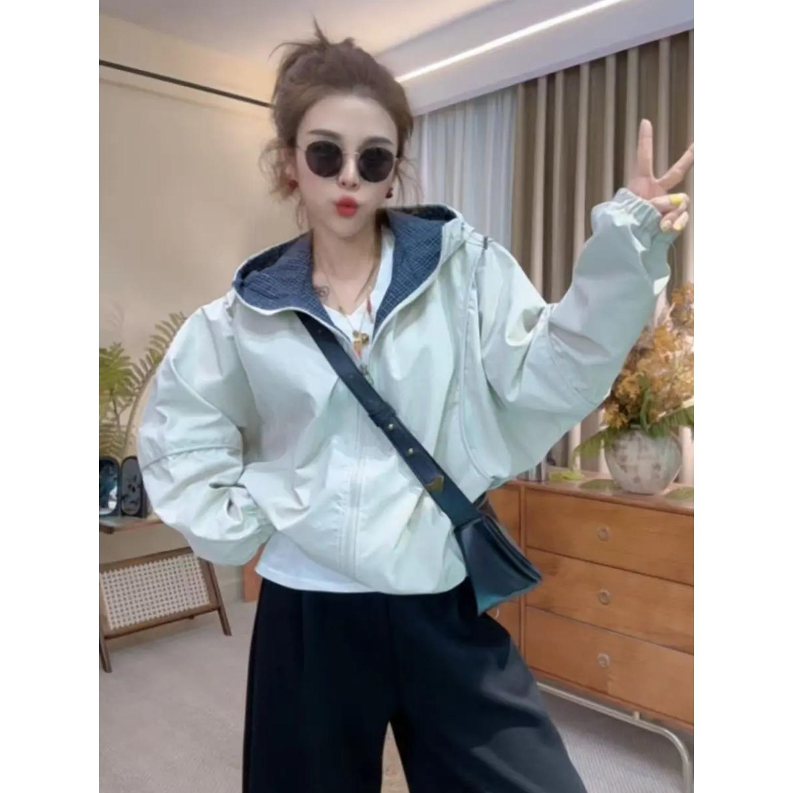 Chaqueta Cortavientos Casual con Capucha Estilo Coreano para Mujer Otoño 2025 Nuevo Suelta Versátil Petite Chaqueta Top