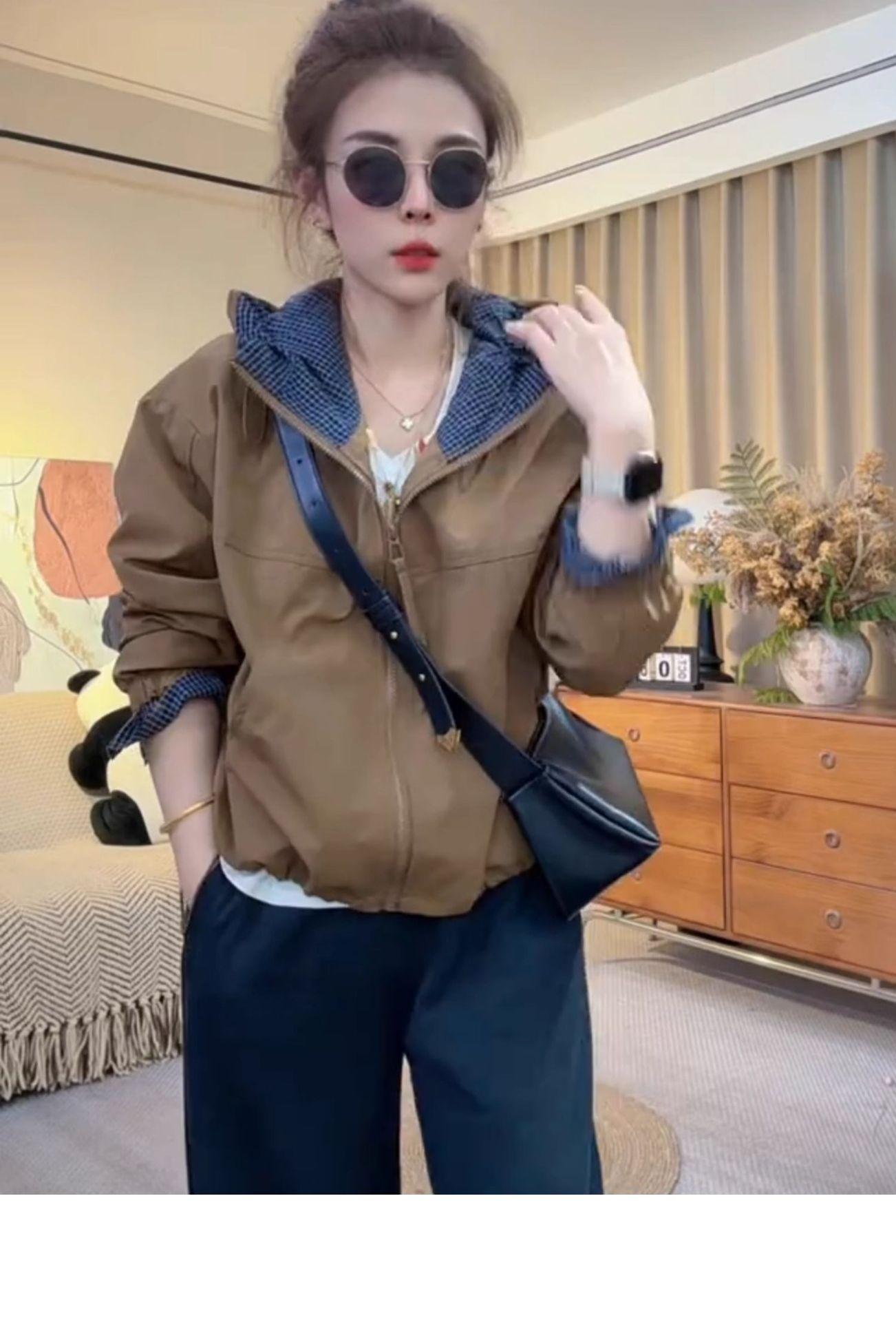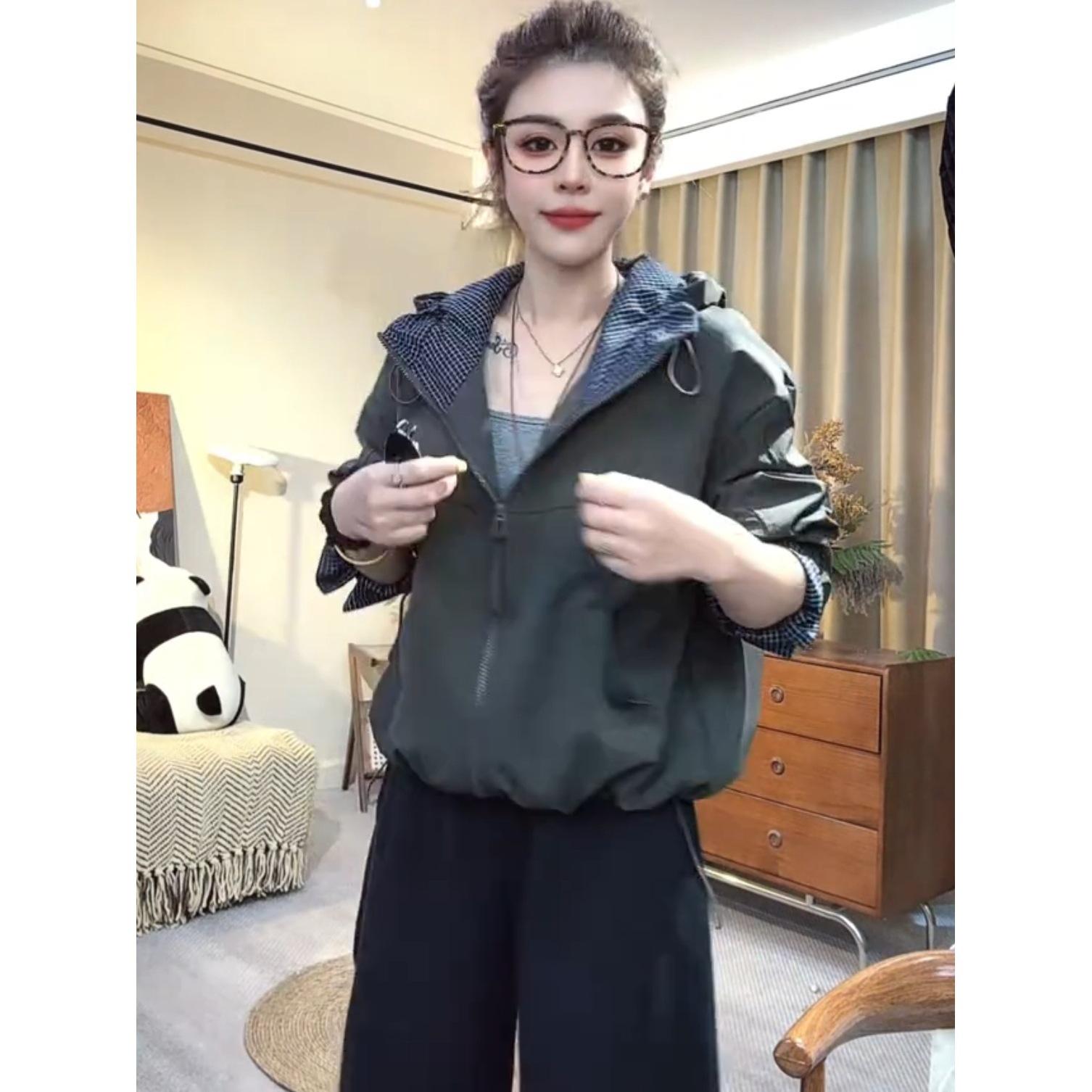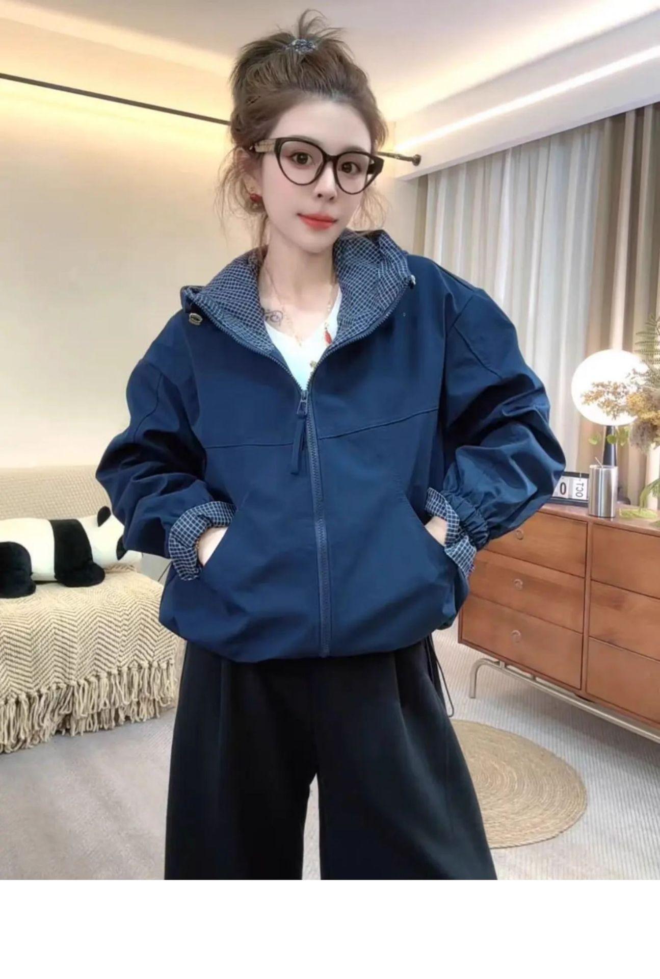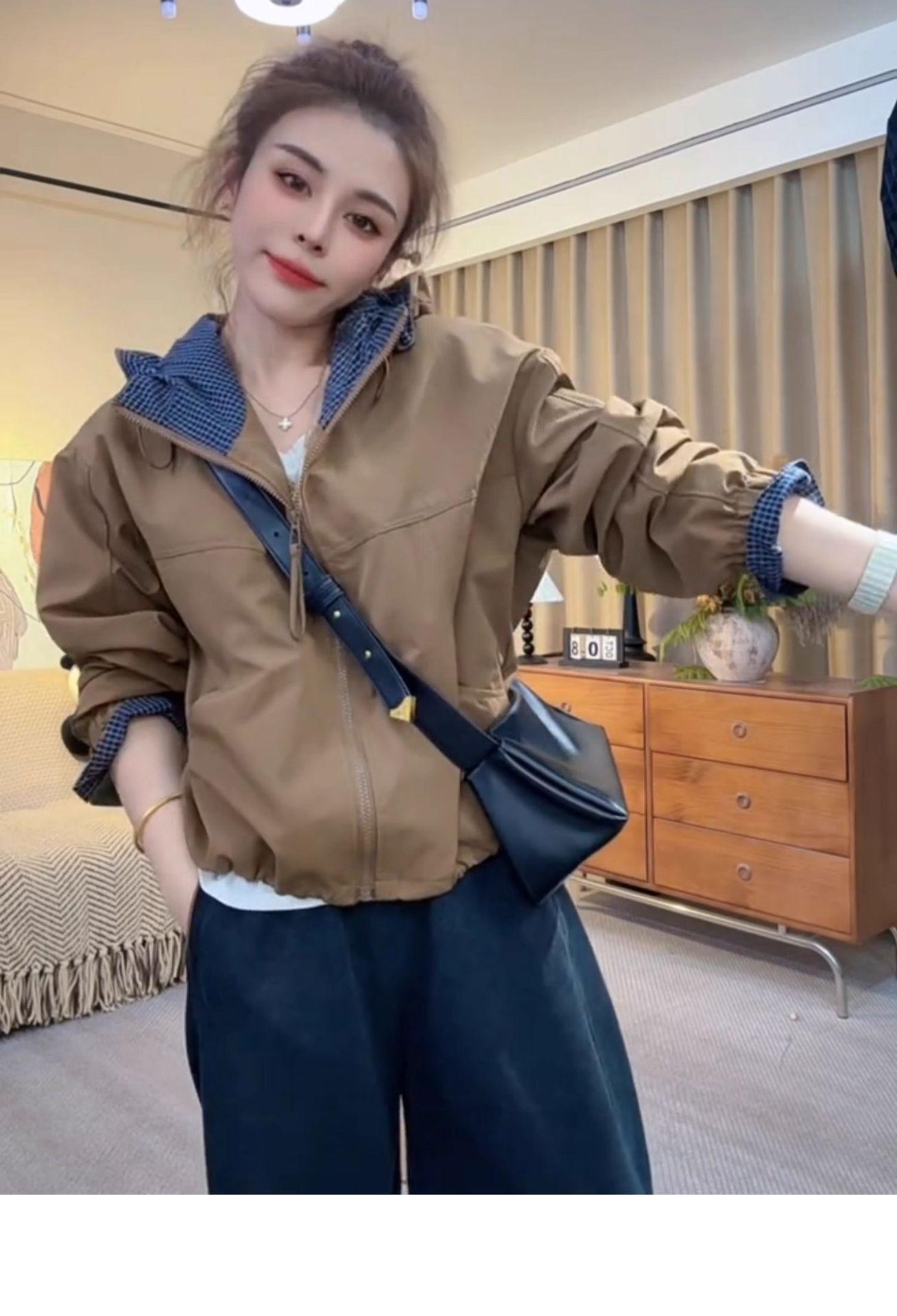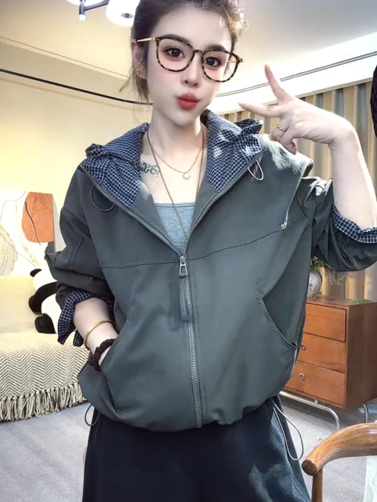 Chaqueta Cortavientos Casual con Capucha Estilo Coreano para Mujer Otoño 2025 Nuevo Suelta Versátil Petite Chaqueta Top