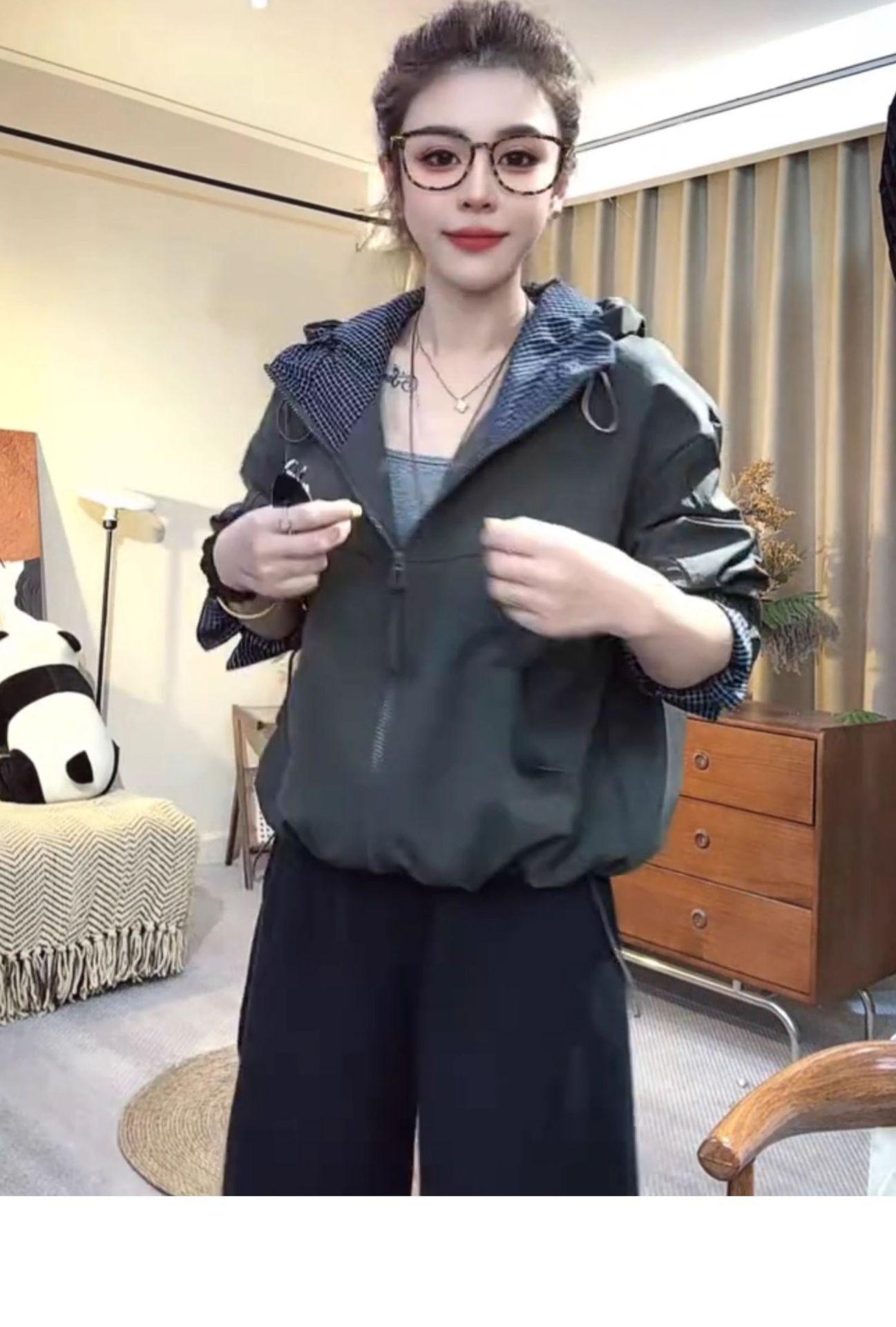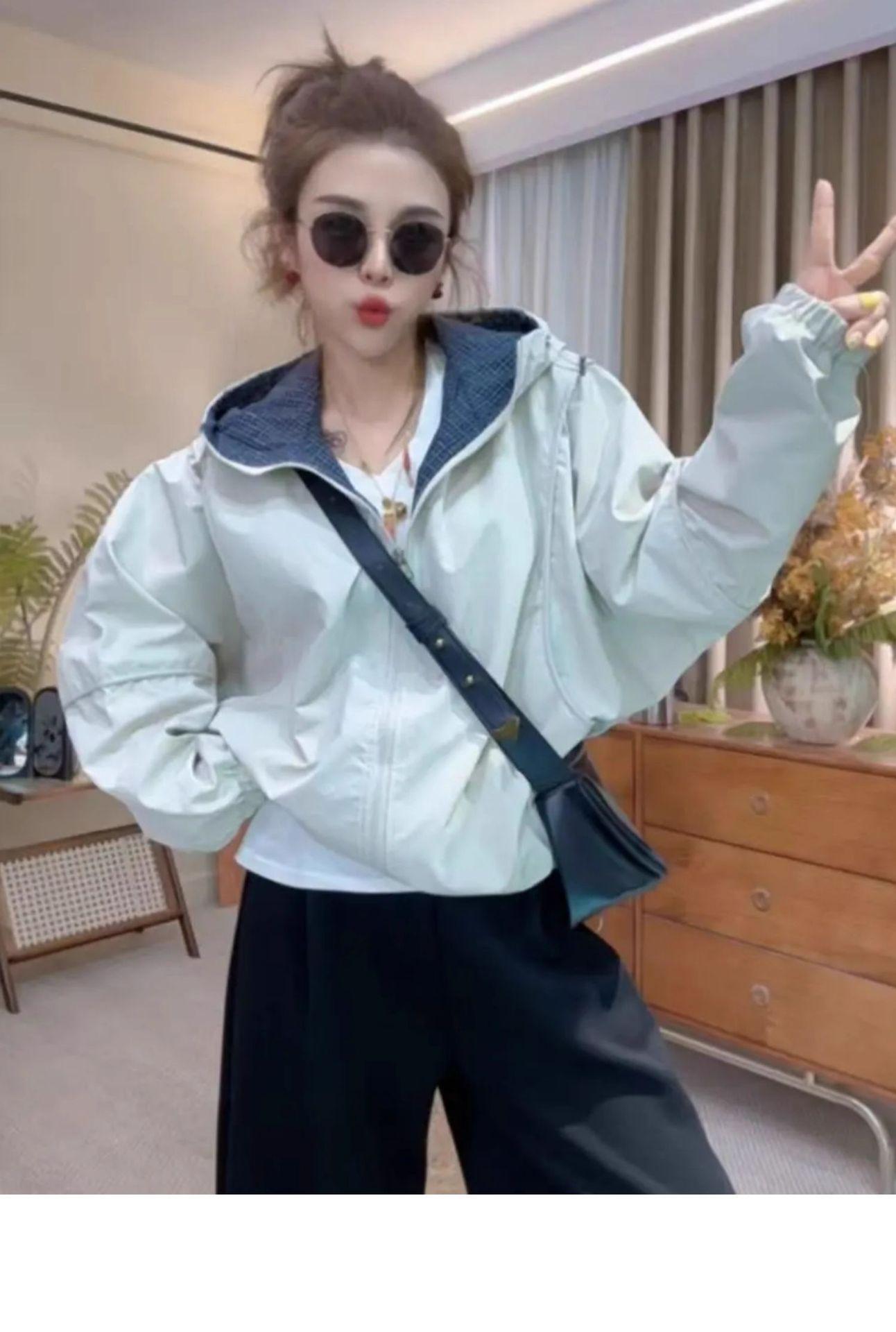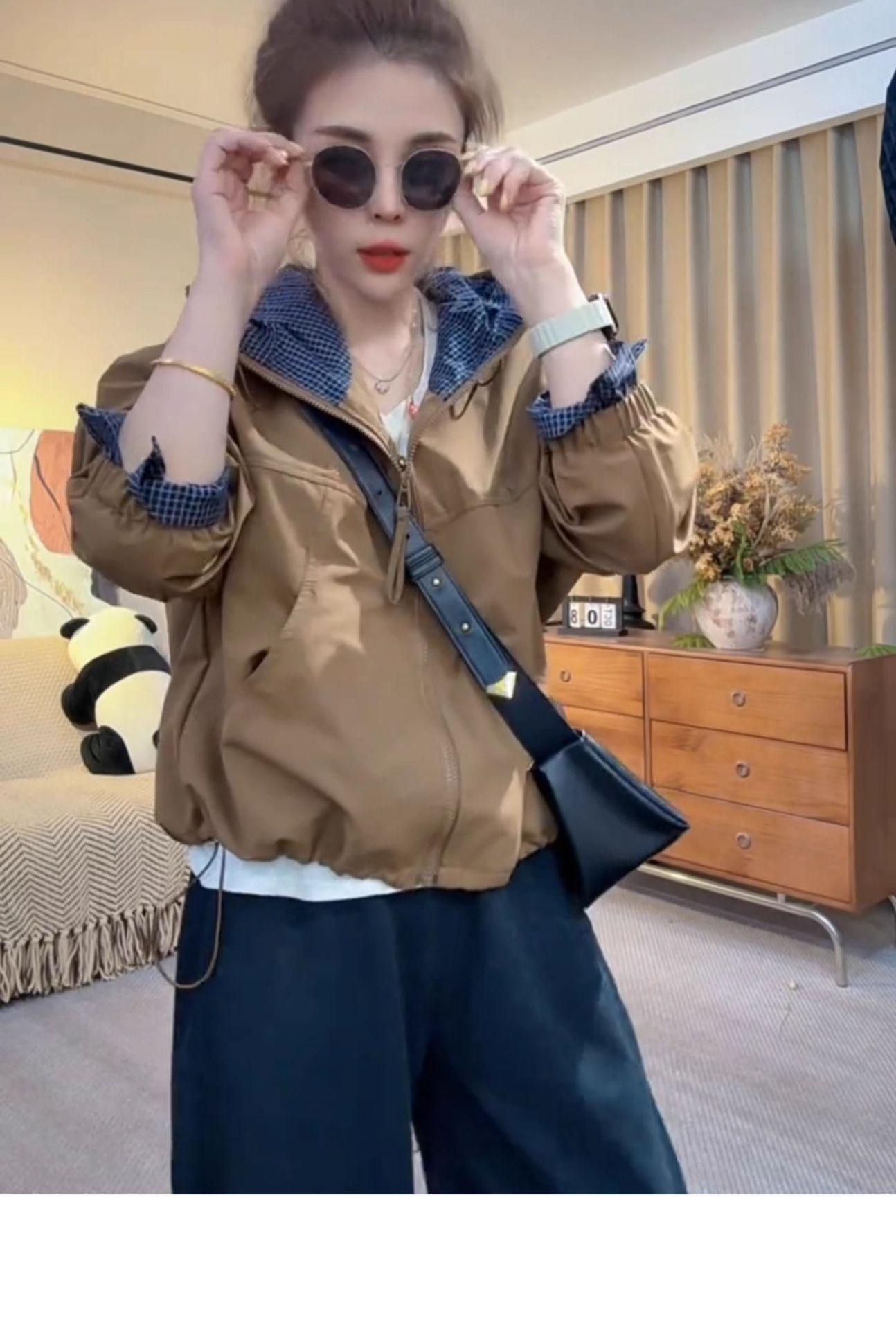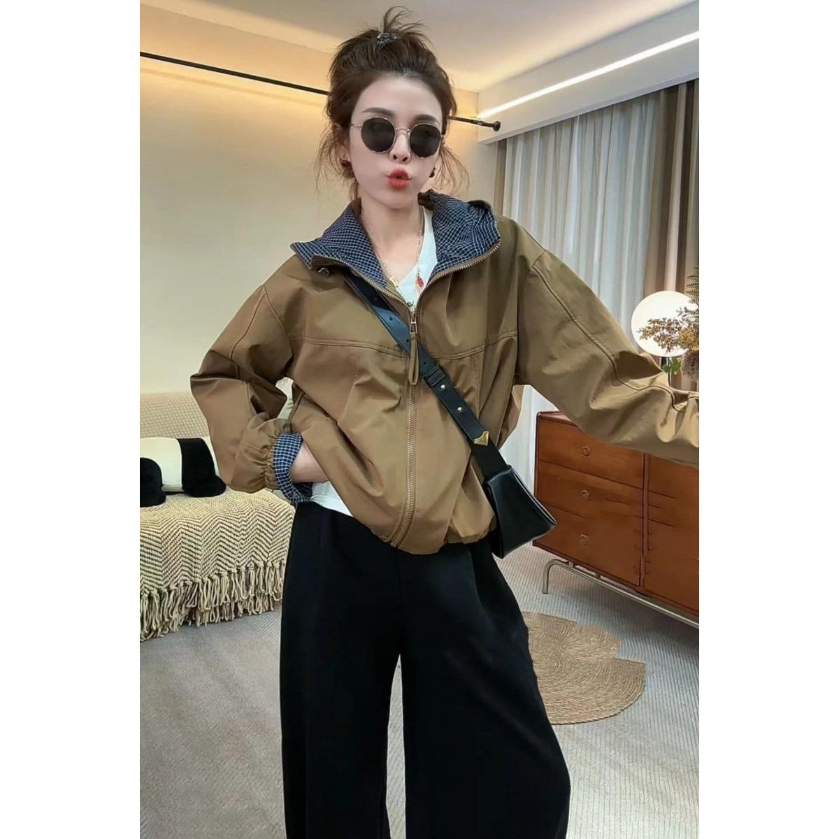Chaqueta Cortavientos Casual con Capucha Estilo Coreano para Mujer Otoño 2025 Nuevo Suelta Versátil Petite Chaqueta Top