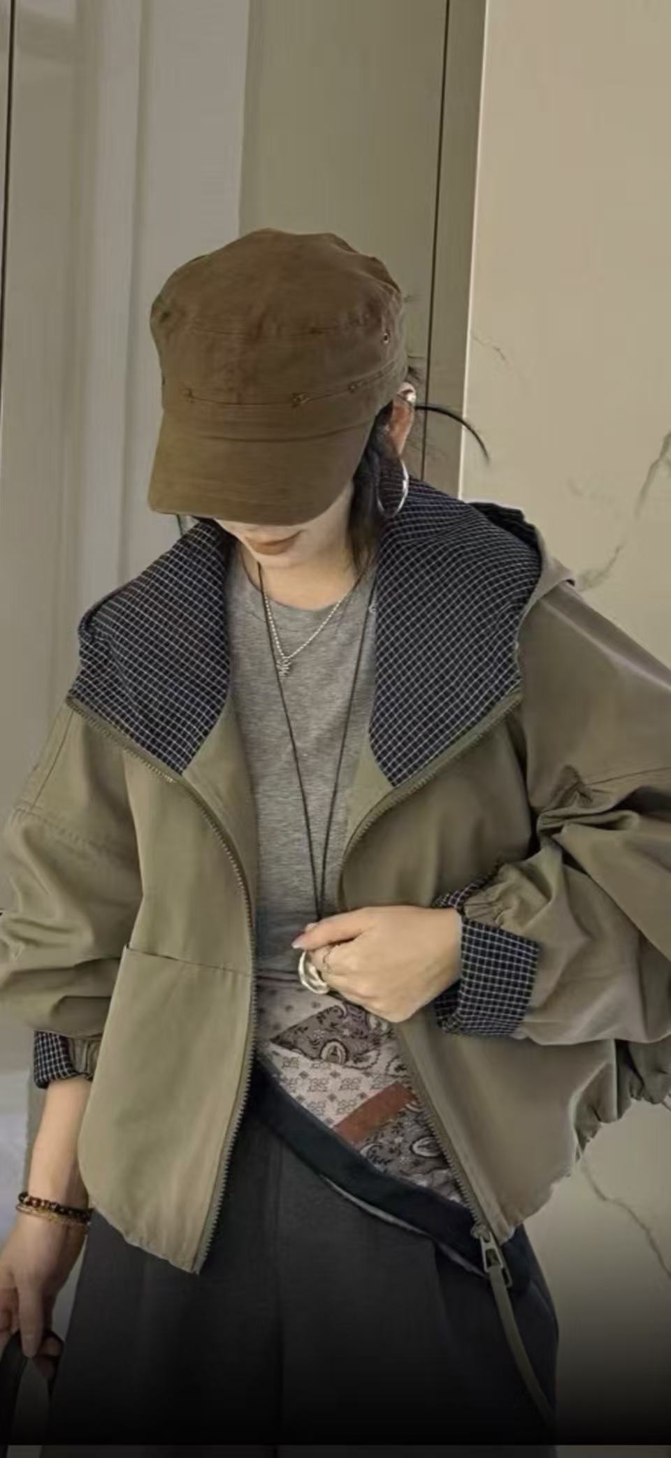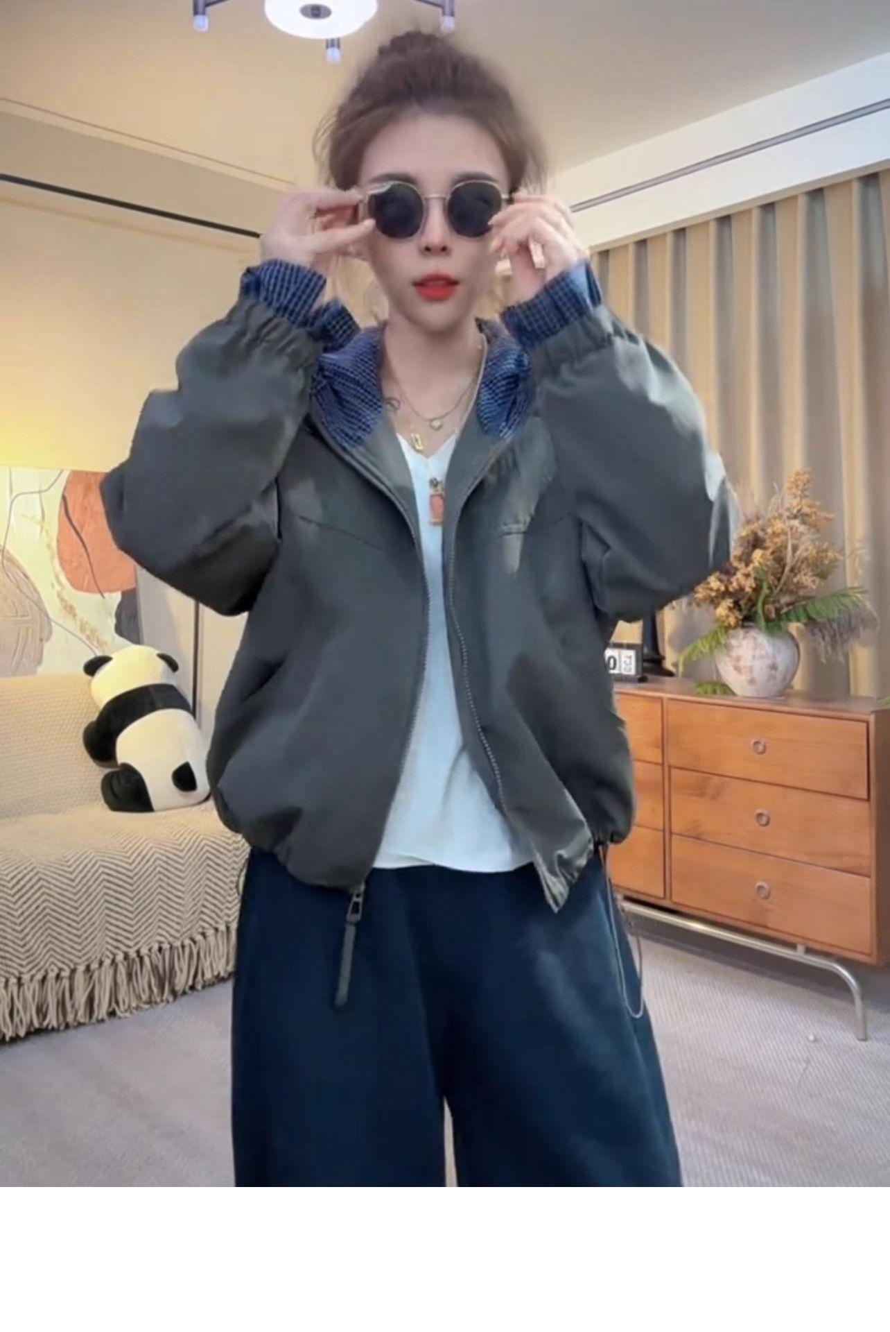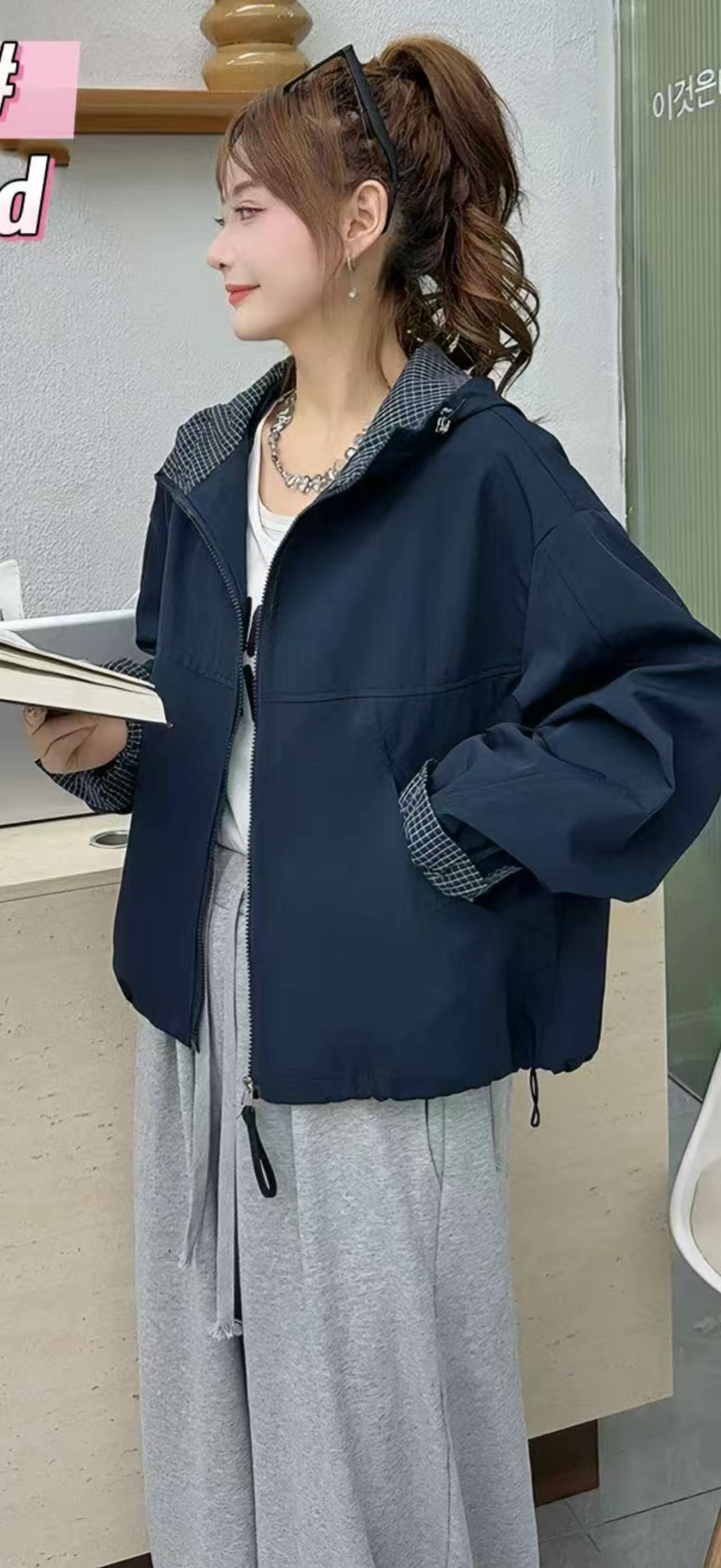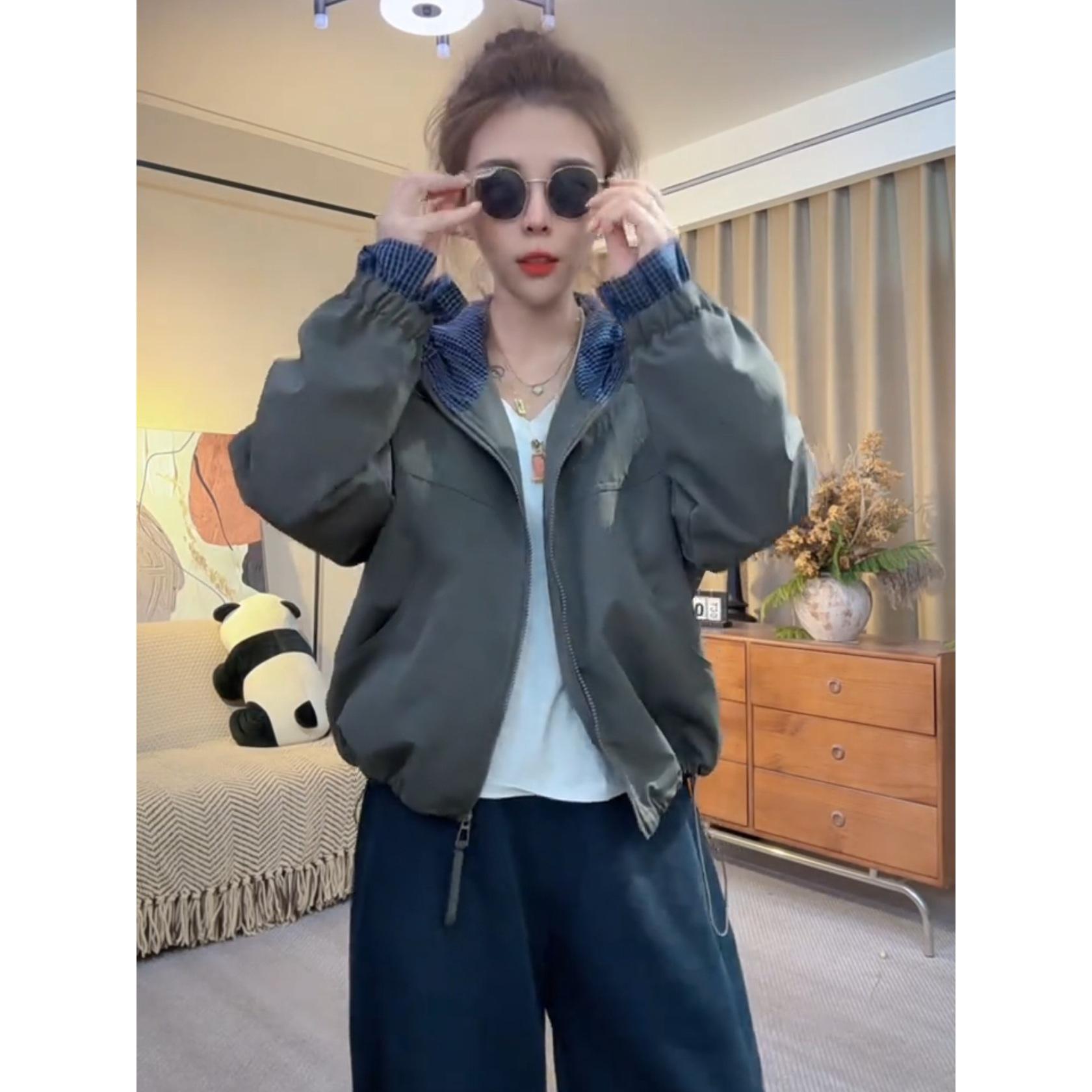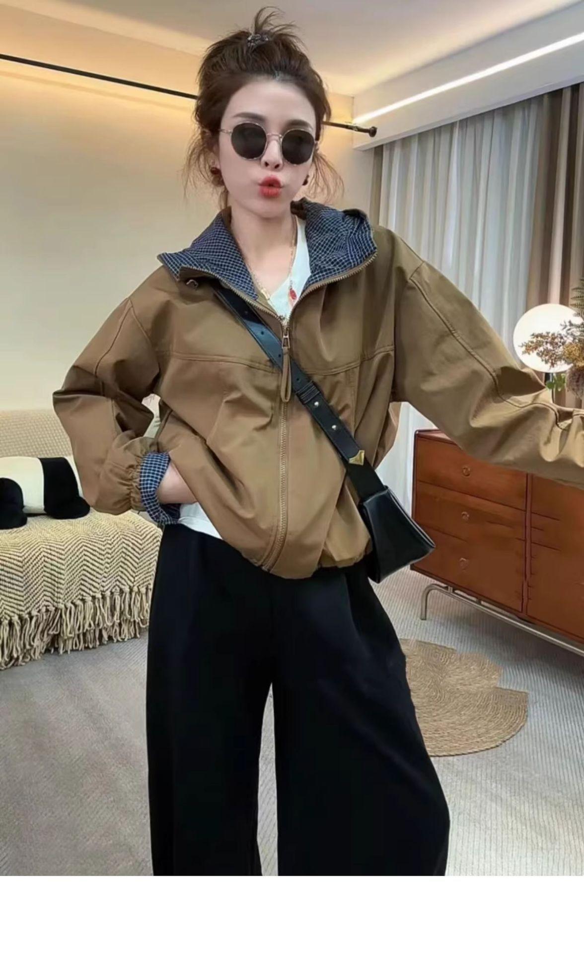 Chaqueta Cortavientos Casual con Capucha Estilo Coreano para Mujer Otoño 2025 Nuevo Suelta Versátil Petite Chaqueta Top