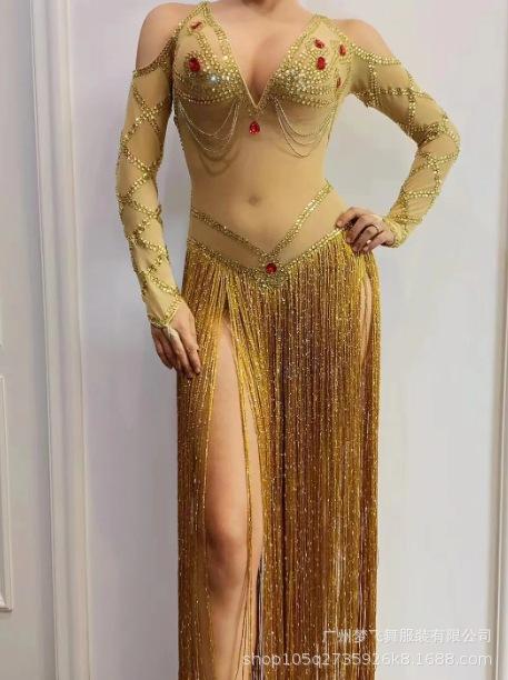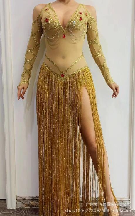 Personalizado Sexy Malla Bellota Dorada Exótico Danza India Borlas Largas Promesa del Cuerpo Celebración de Cumpleaños de Mujeres