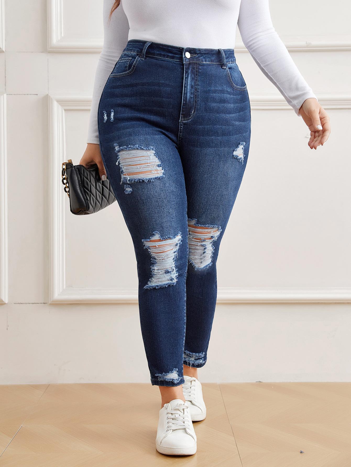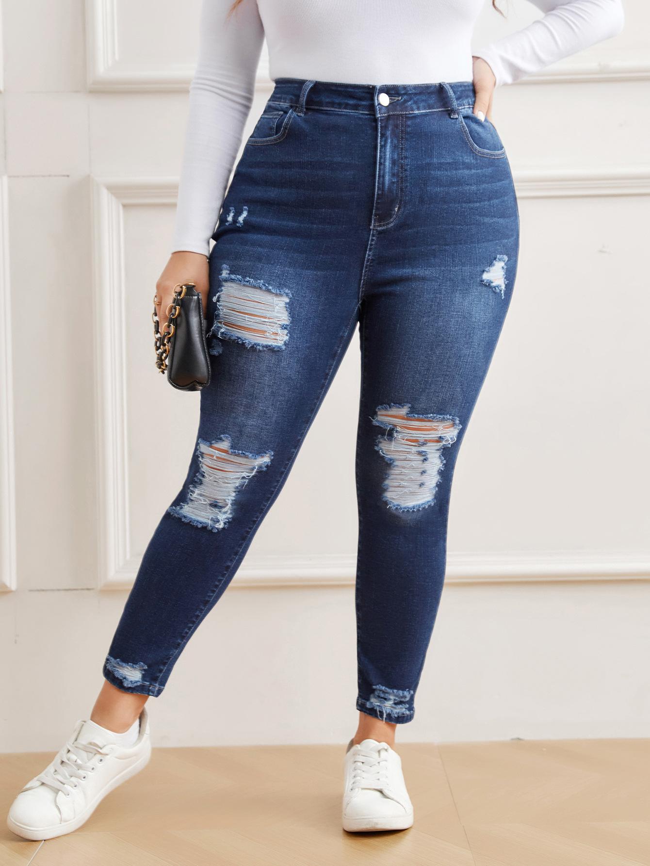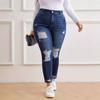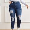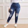 Amazon AliExpress Transfronterizo 2024 Nuevo Stretch Cómodo Moda Jeans Rotos Damas Talla Extra Gordo y Plus