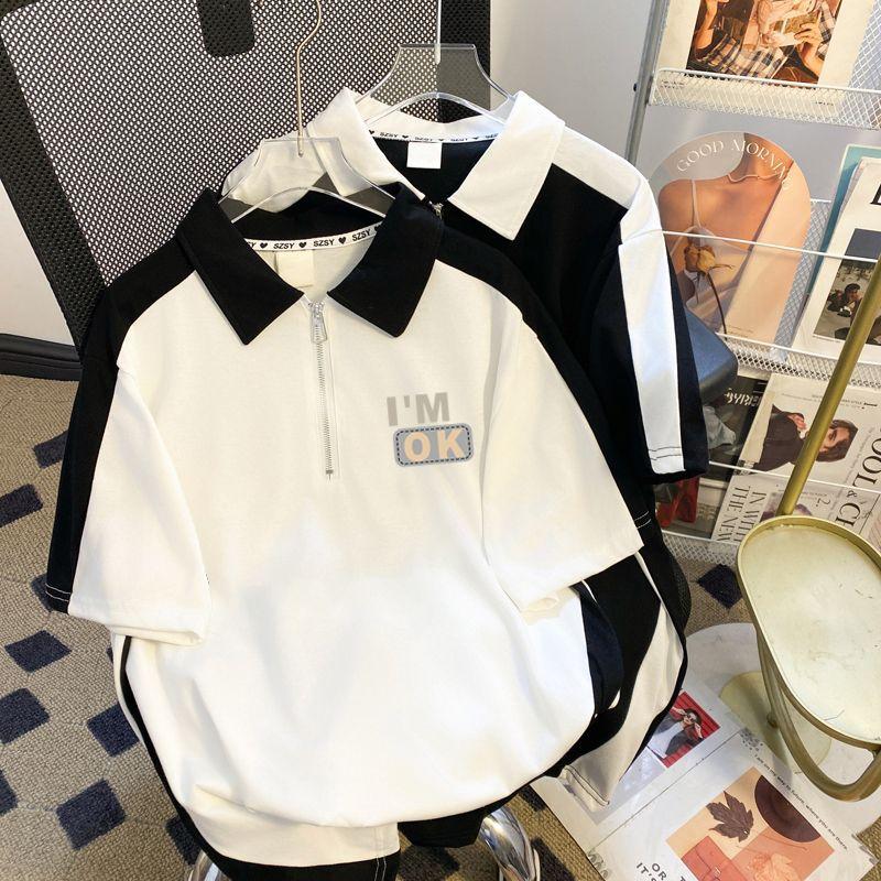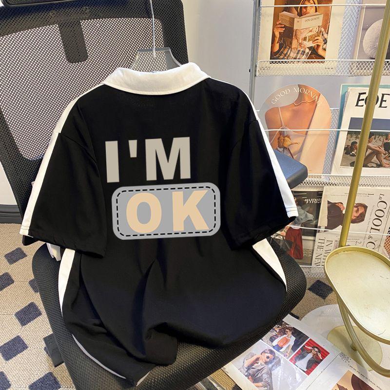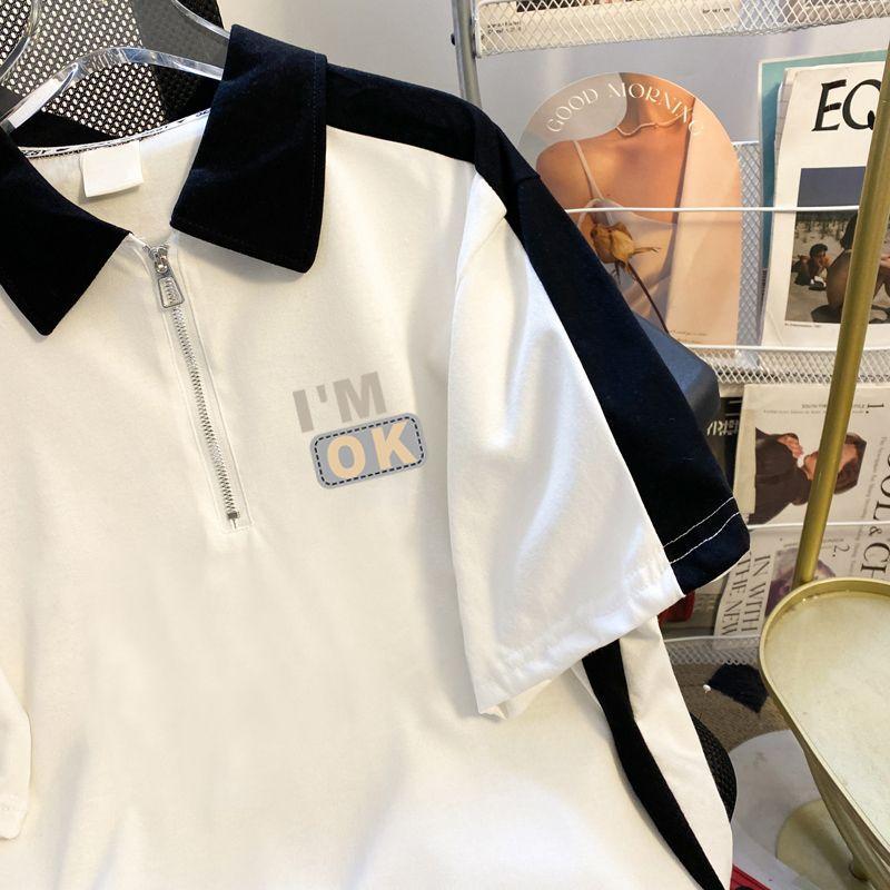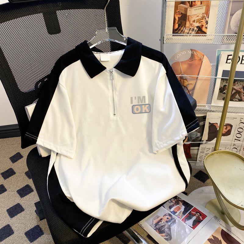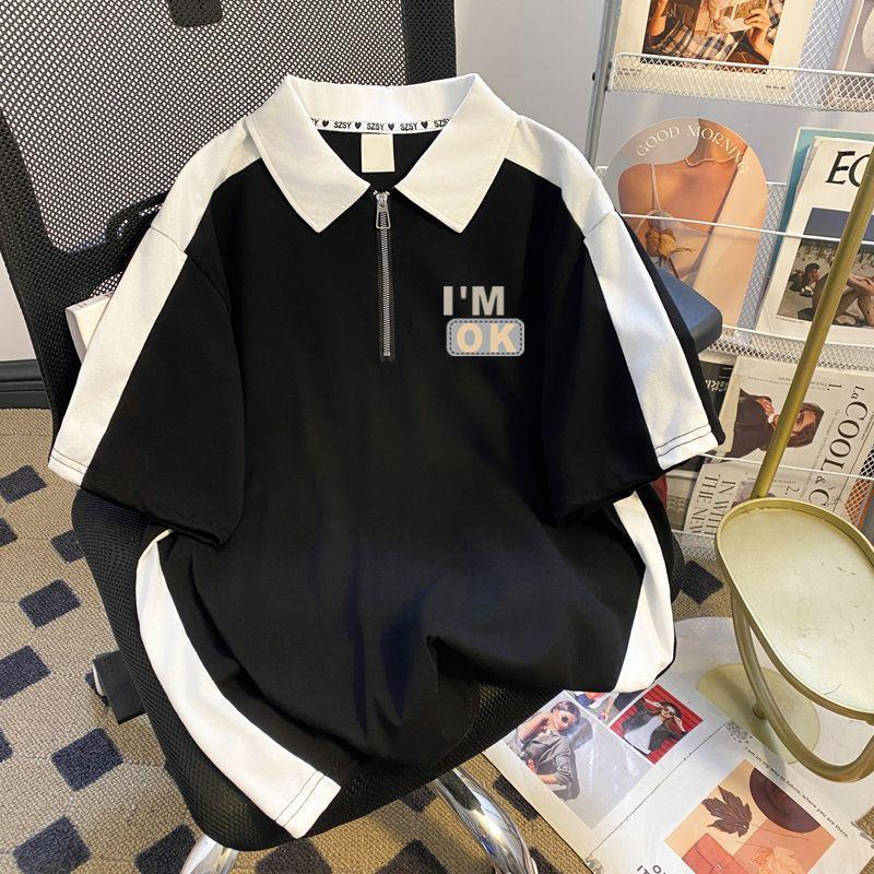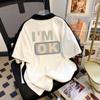 Camiseta de Algodón Puro Estilo Chic de Hong Kong con Costuras de Tres Agujas de Manga Corta para Mujer Verano Estampado de Letras Vintage Camiseta Versátil para Pareja