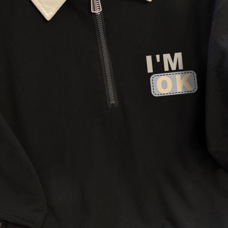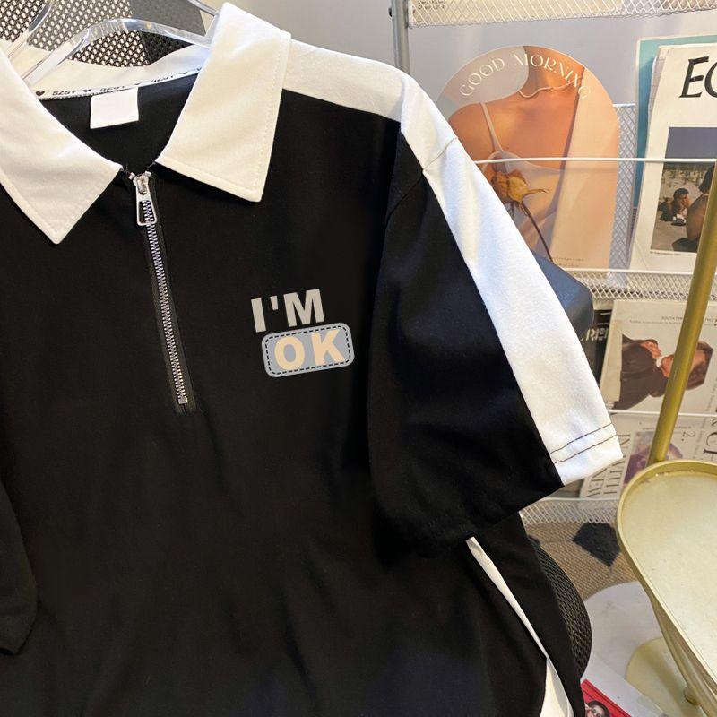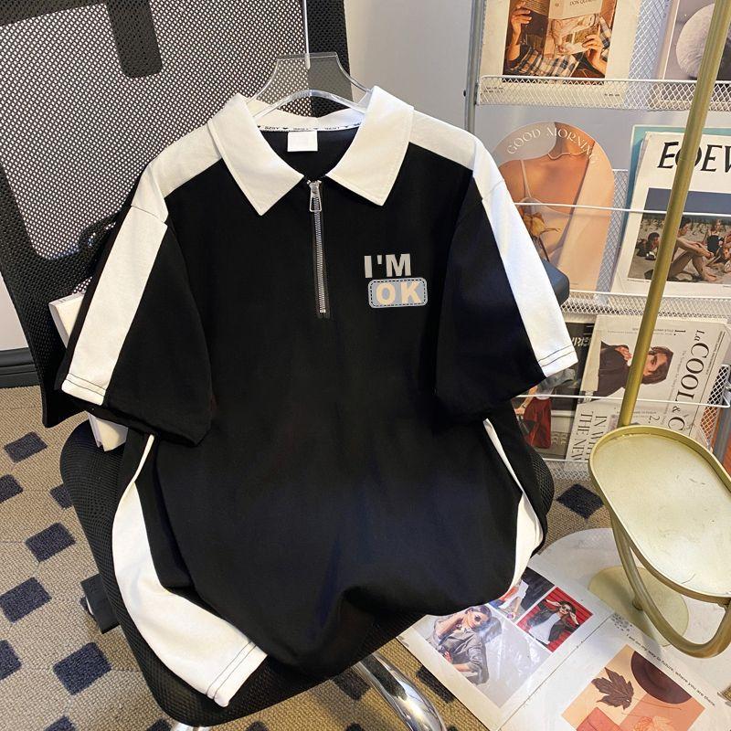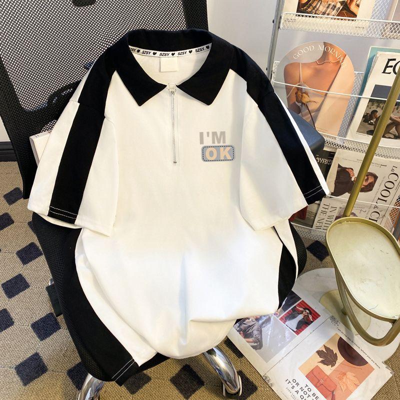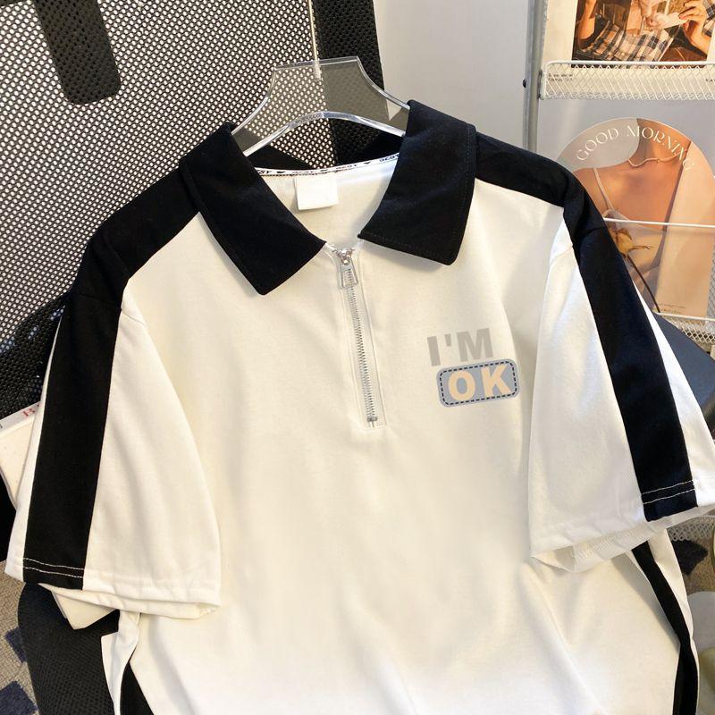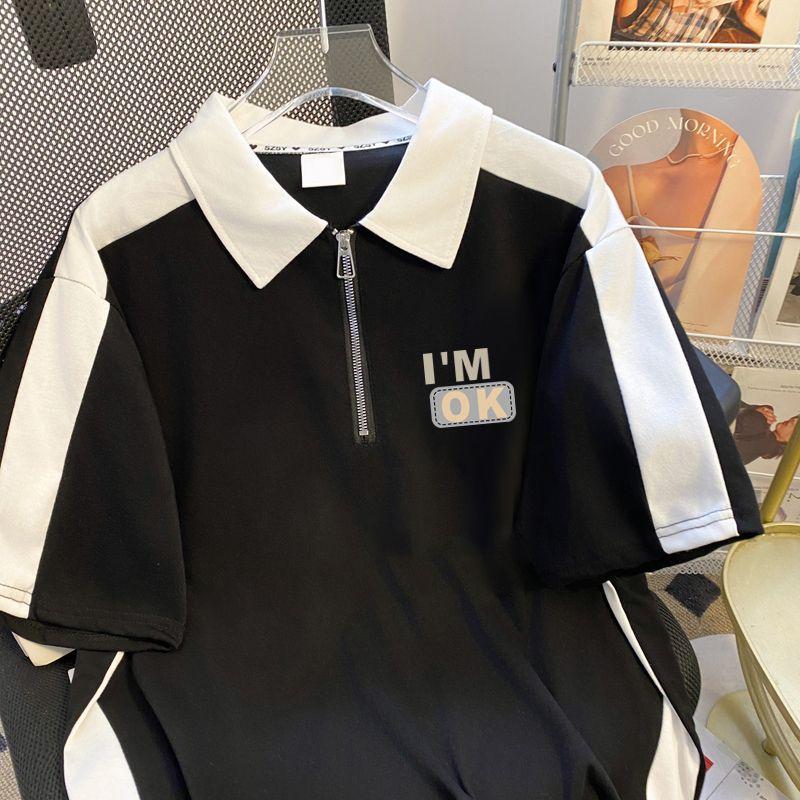 Camiseta de Algodón Puro Estilo Chic de Hong Kong con Costuras de Tres Agujas de Manga Corta para Mujer Verano Estampado de Letras Vintage Camiseta Versátil para Pareja