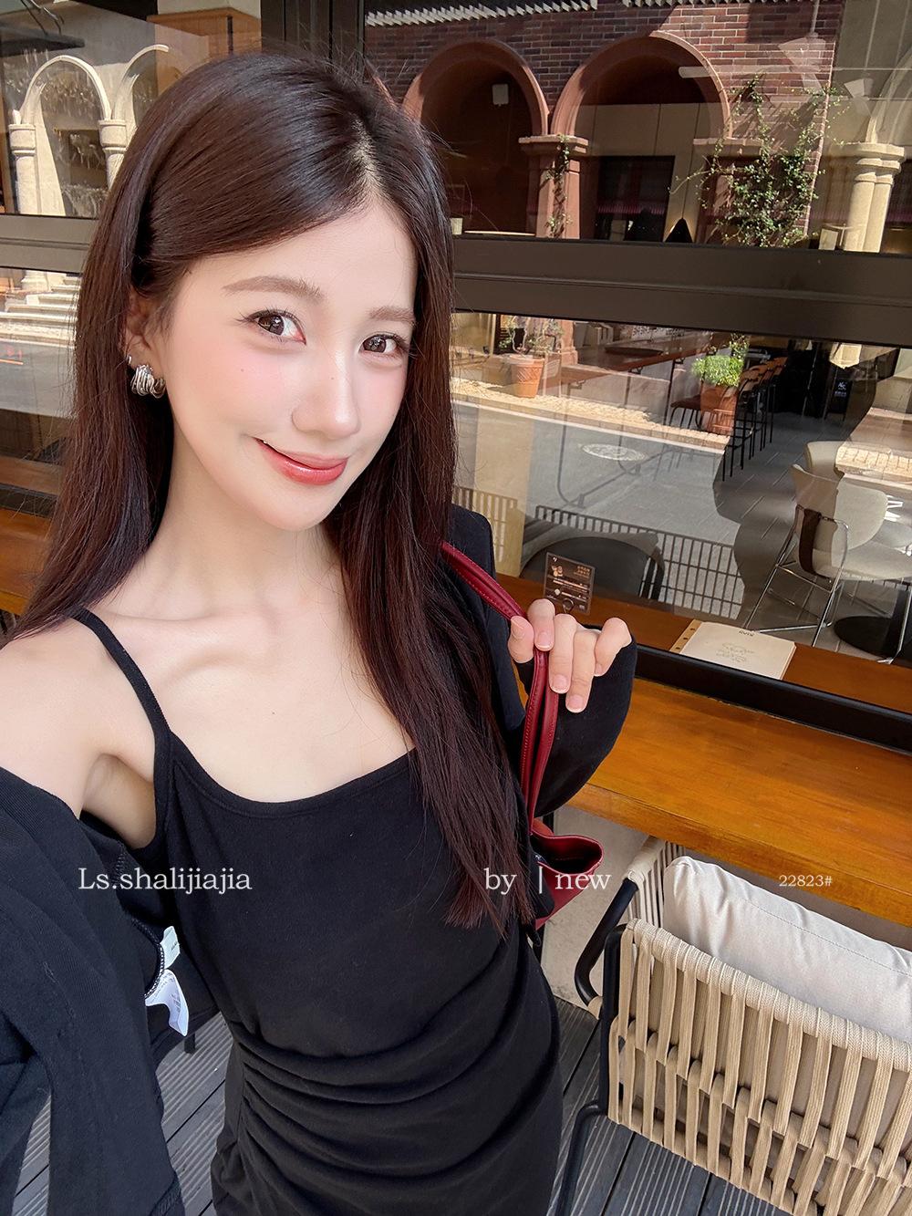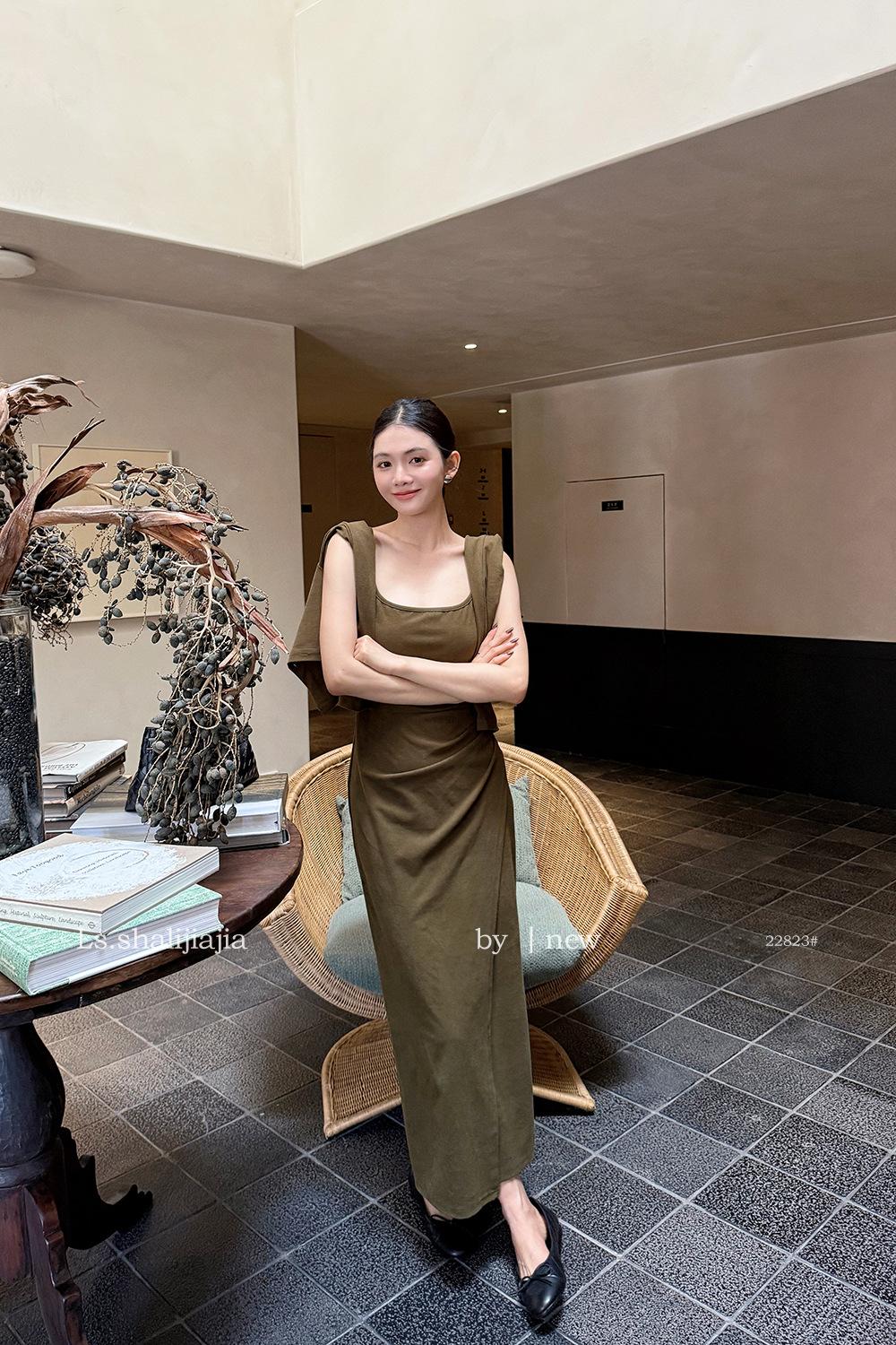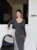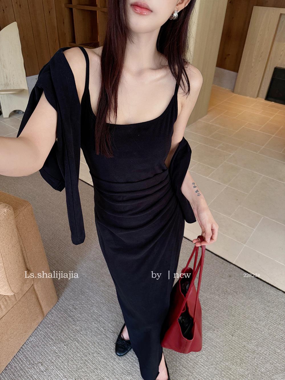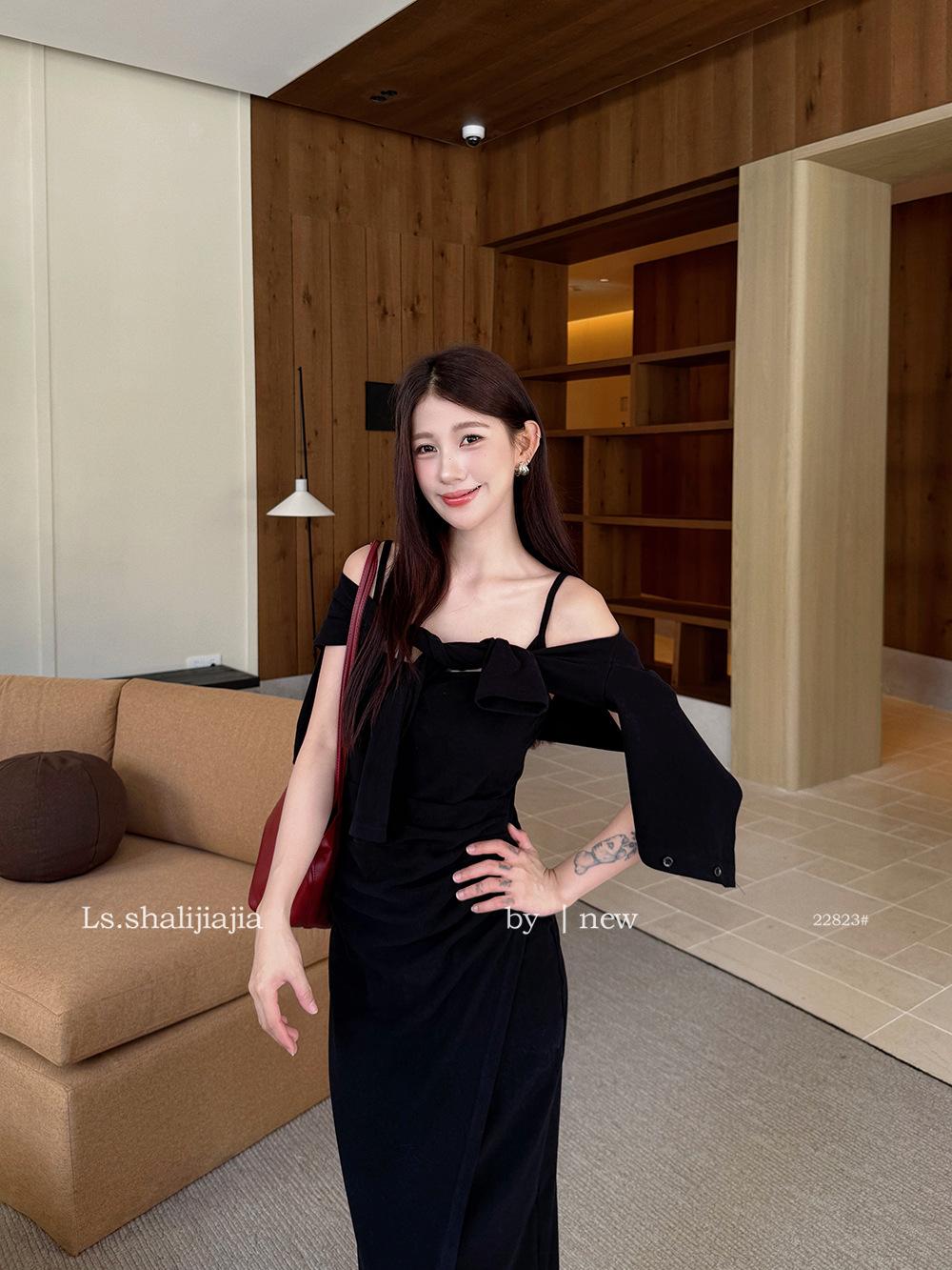 Set Cárdigan Elegante LS + Vestido Slip Guangzhou Thirteen Rows 2025 Principios de Otoño Nueva Ropa de Mujer 22823#