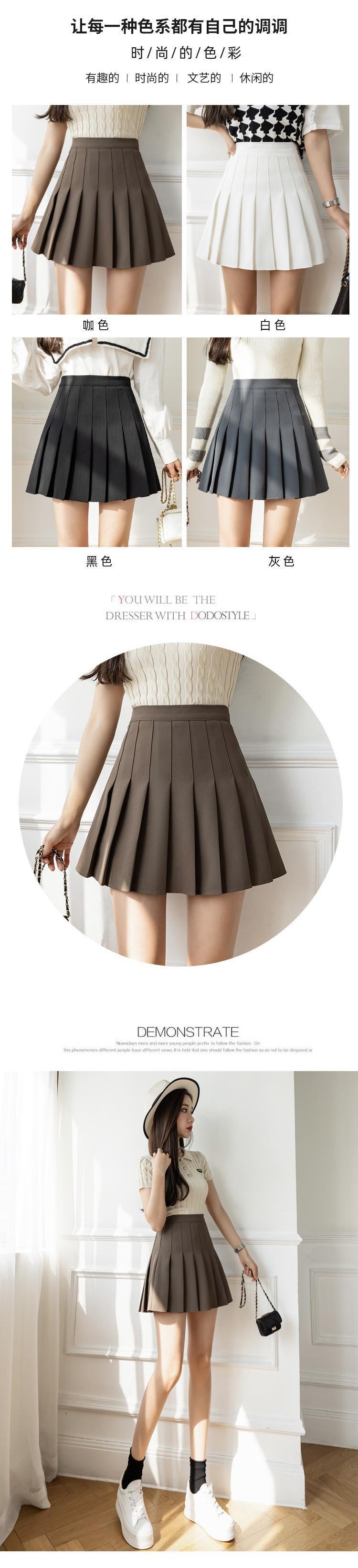 Falda Negra Plisada Primavera y Verano 2023 Nueva Falda de Cintura Alta Estudiante Talla Grande Falda Línea A Look Adelgazante Falda Corta