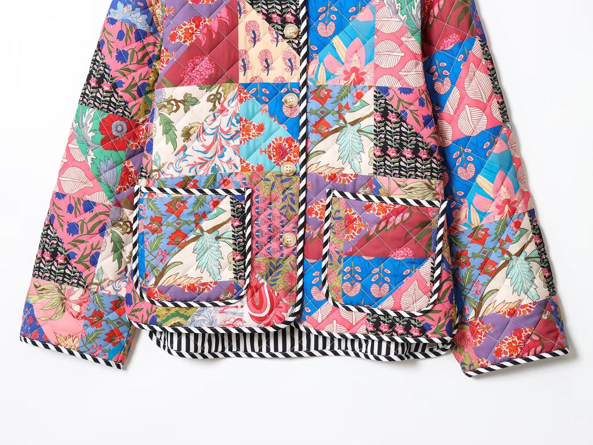 Z Estilo Europeo y Americano Transfronterizo 2025 Nueva Moda Temperamento Ropa de Mujer Venta al por Mayor Abrigo Exterior Acolchado de Algodón Estampado de Manga Larga y Cuello Redondo