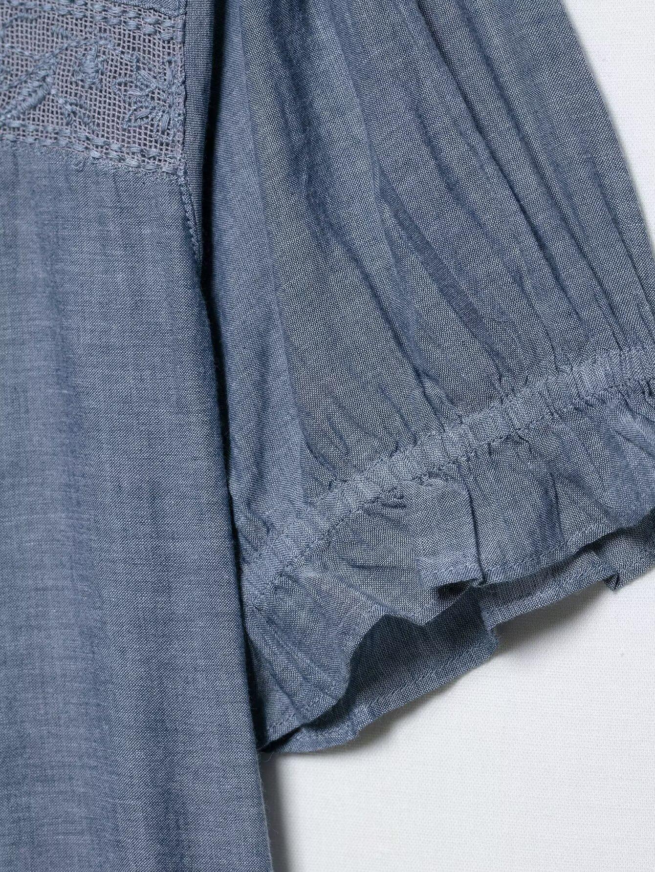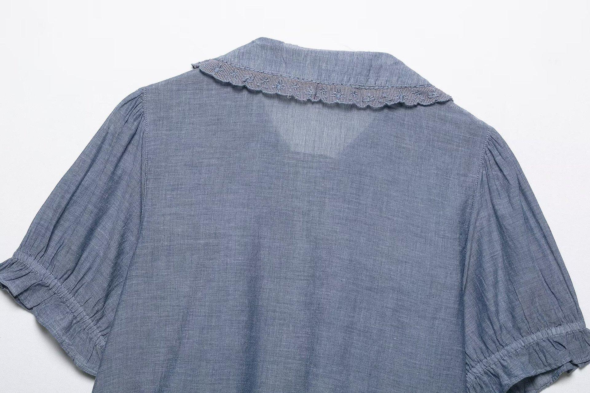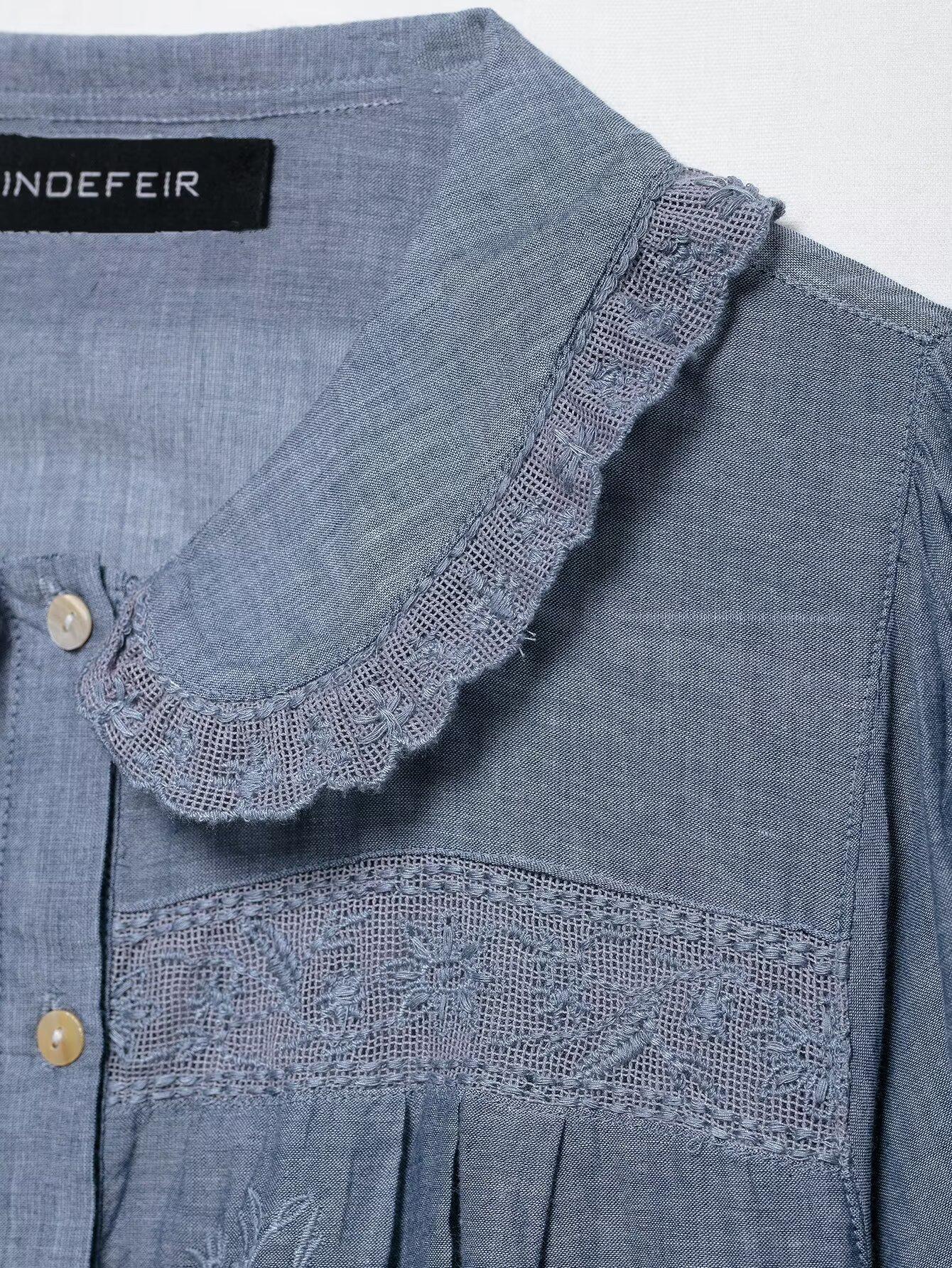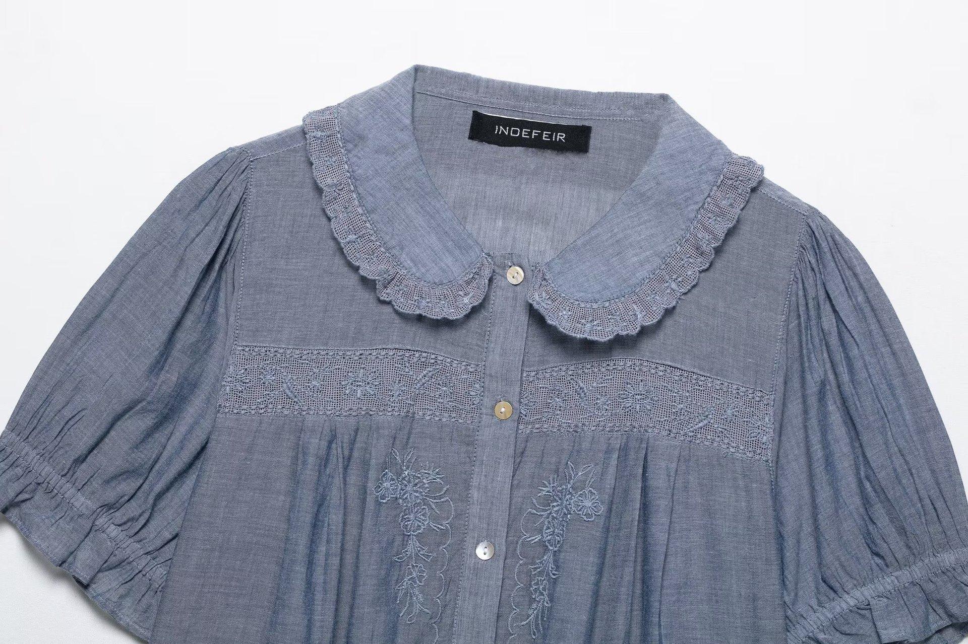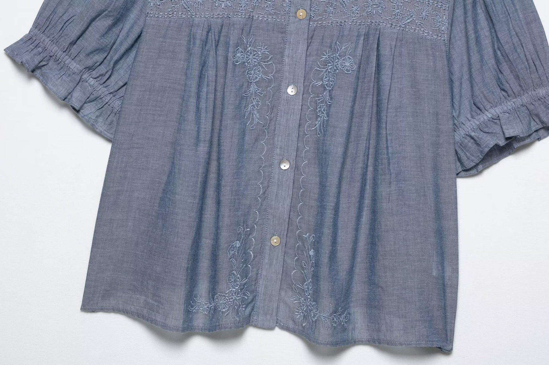 Nuevo Producto Transfronterizo 2025 Estilo Europeo y Americano Ropa de Mujer Comercio Exterior Venta al por Mayor Zr En Stock Camisa Bordada de Mariposas y Flores