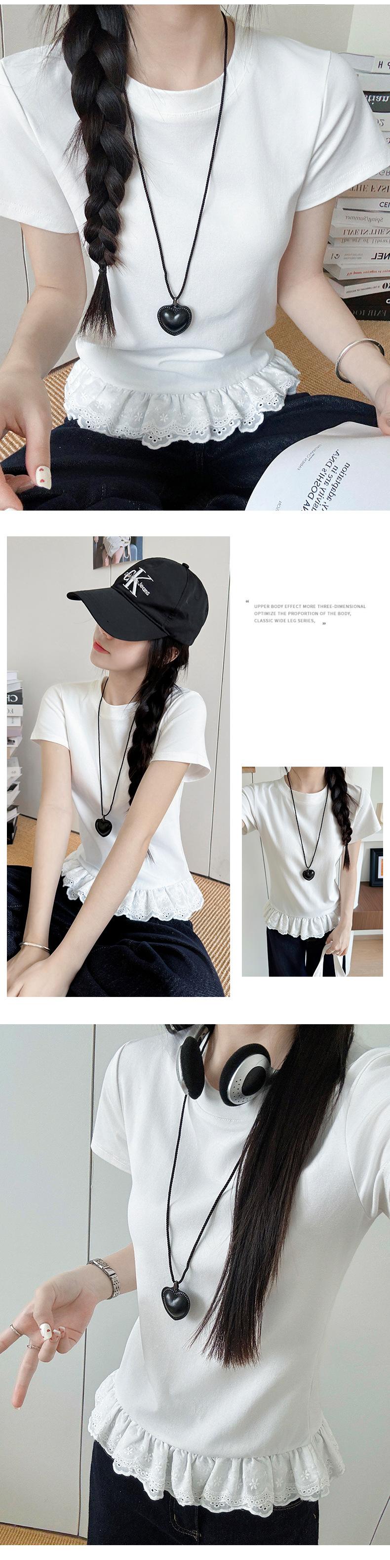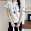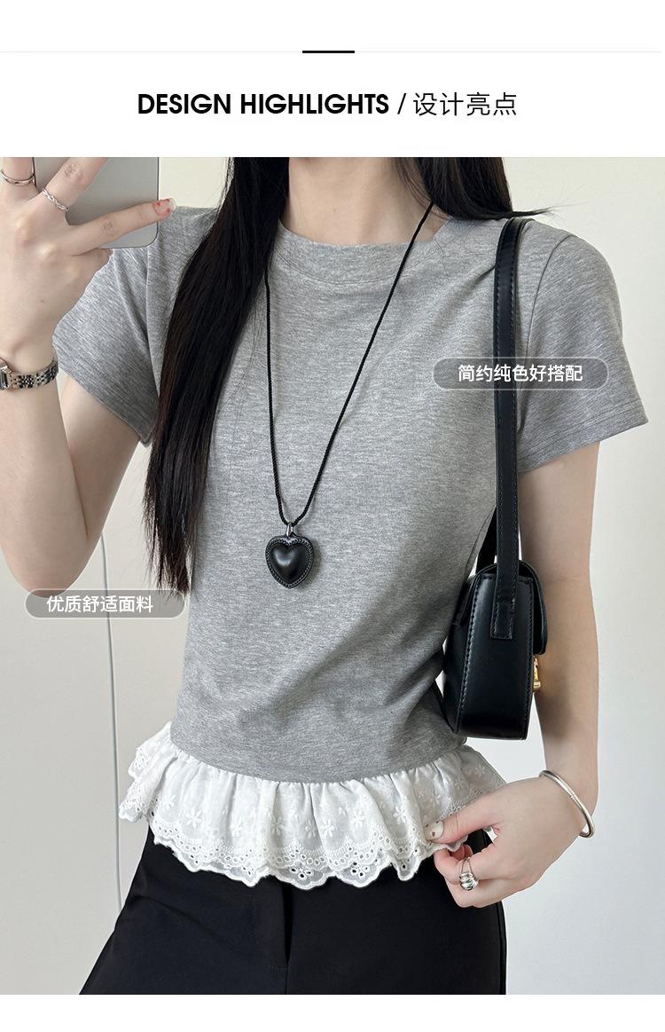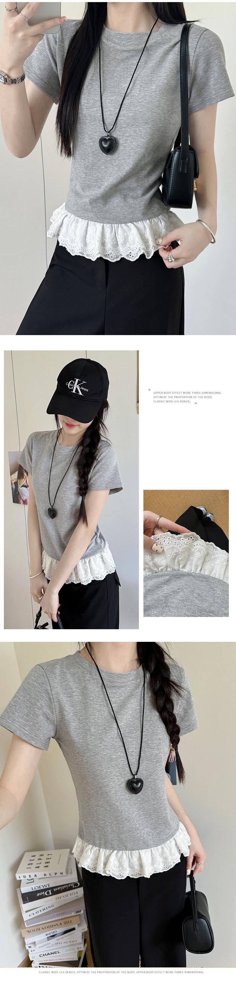 Playera Coreana de Encaje con Dobladillo en el Hombro Derecho de Manga Corta para Mujer Verano Nuevo Dulce y Versátil Look Adelgazante Top Estilo Ballet