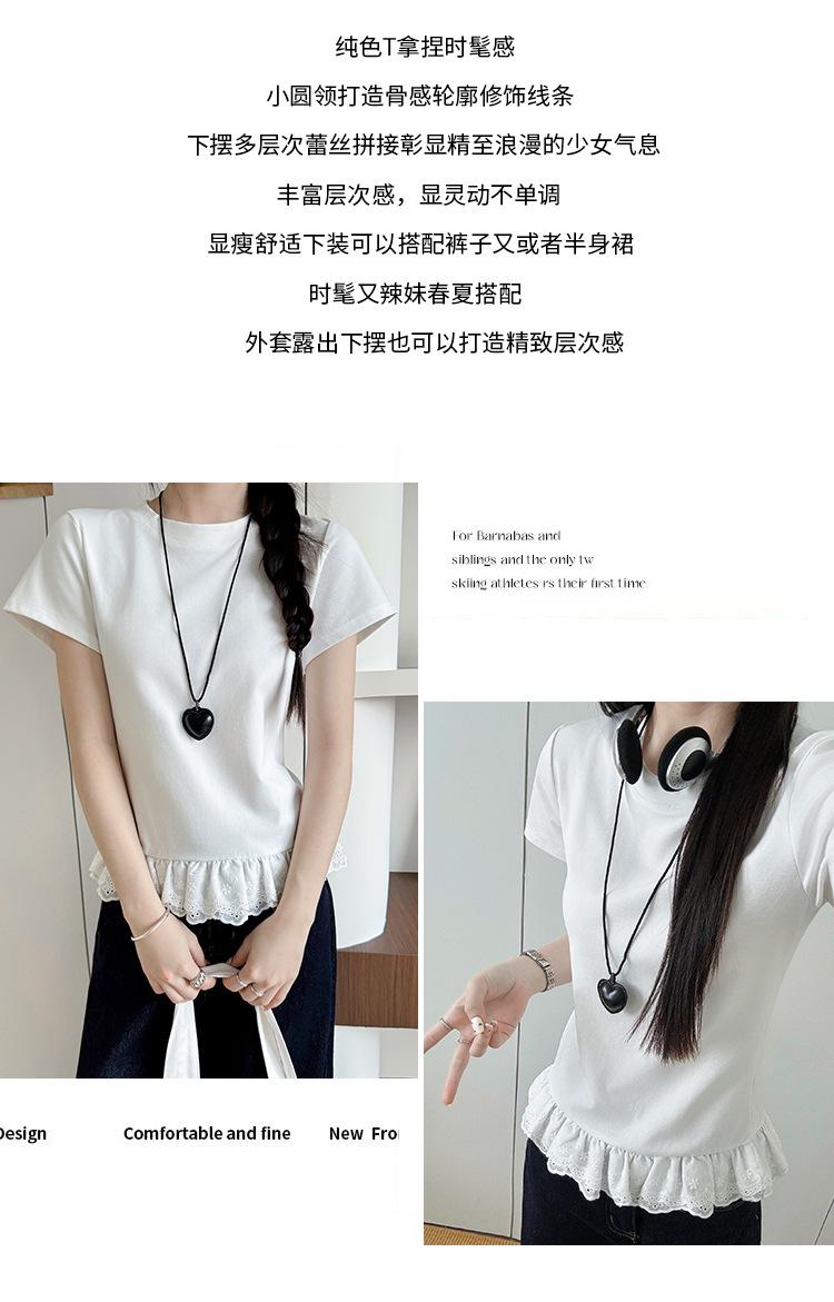 Compra Playera Coreana de Encaje con Dobladillo en el Hombro Derecho de Manga Corta para Mujer Verano Nuevo Dulce y Versátil Look Adelgazante Top Estilo Ballet al por mayor en Joom.pro