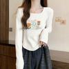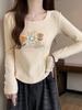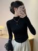 Otoño/Invierno 2025 Nuevo Diseño de Camiseta Interior de Terciopelo Alemán para Mujer, Moda Adelgazante de Manga Larga con Hombro Recto