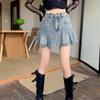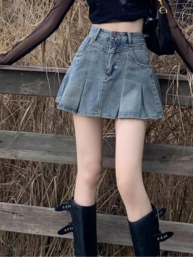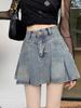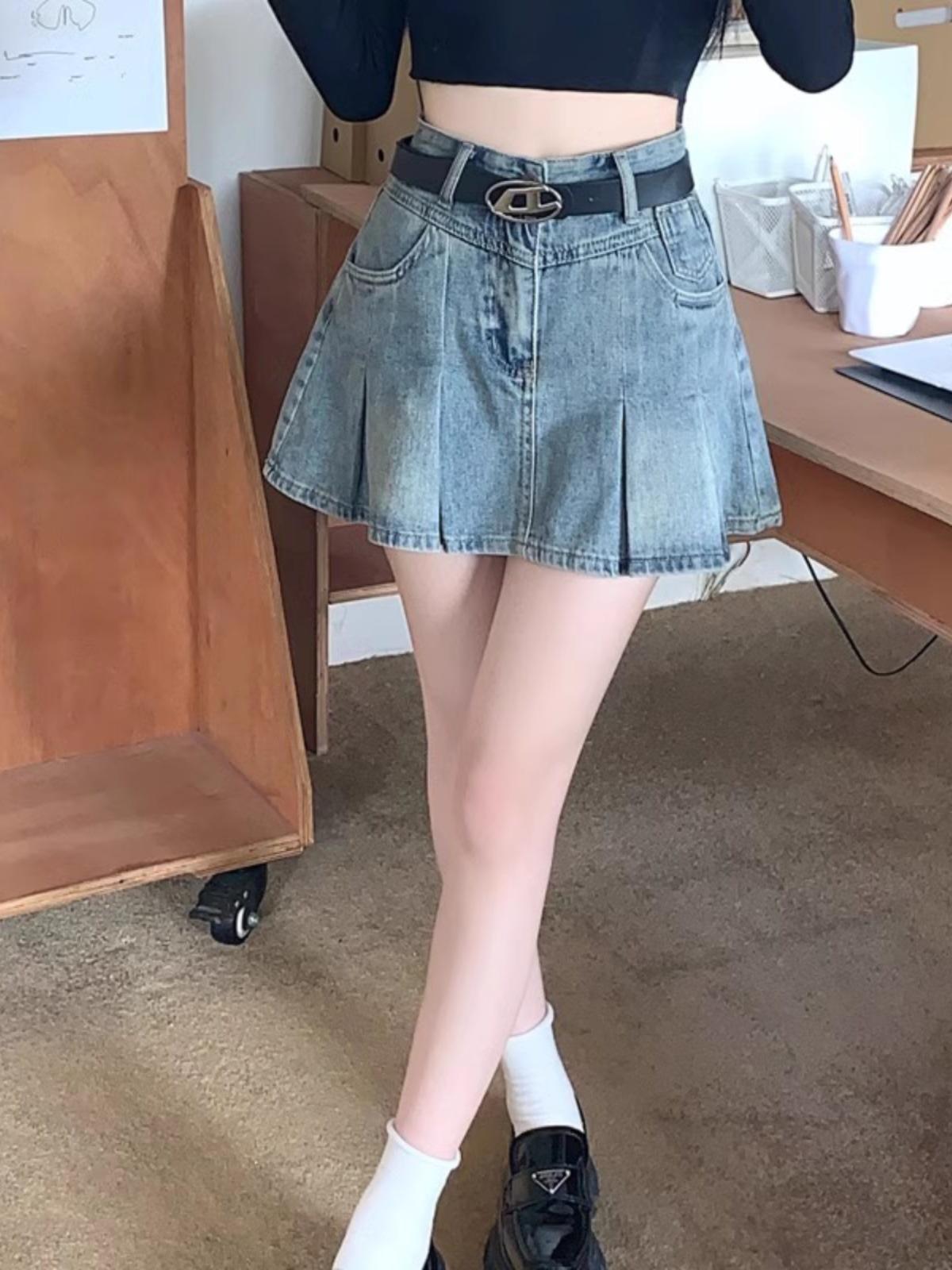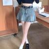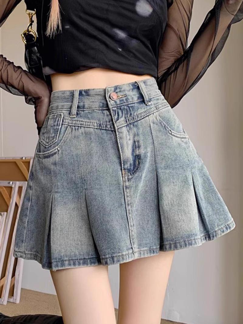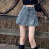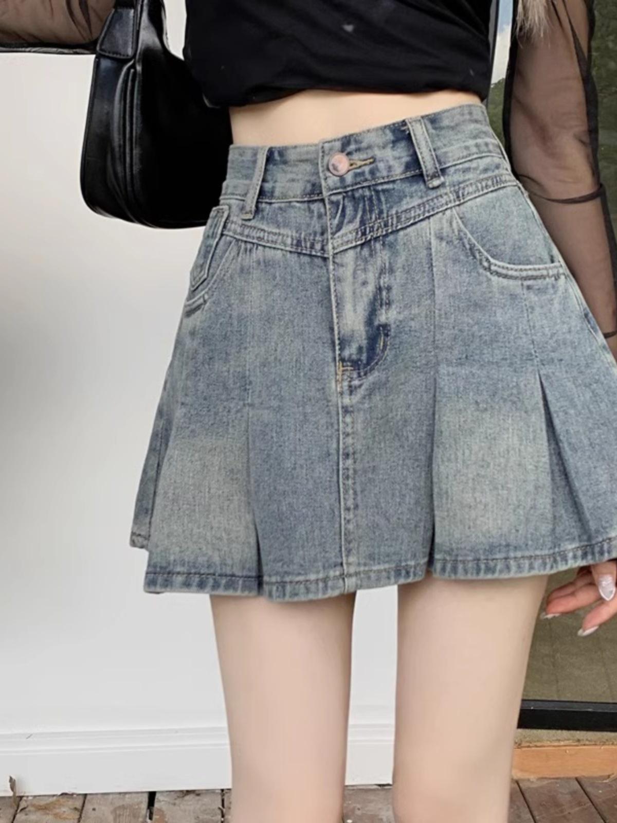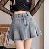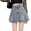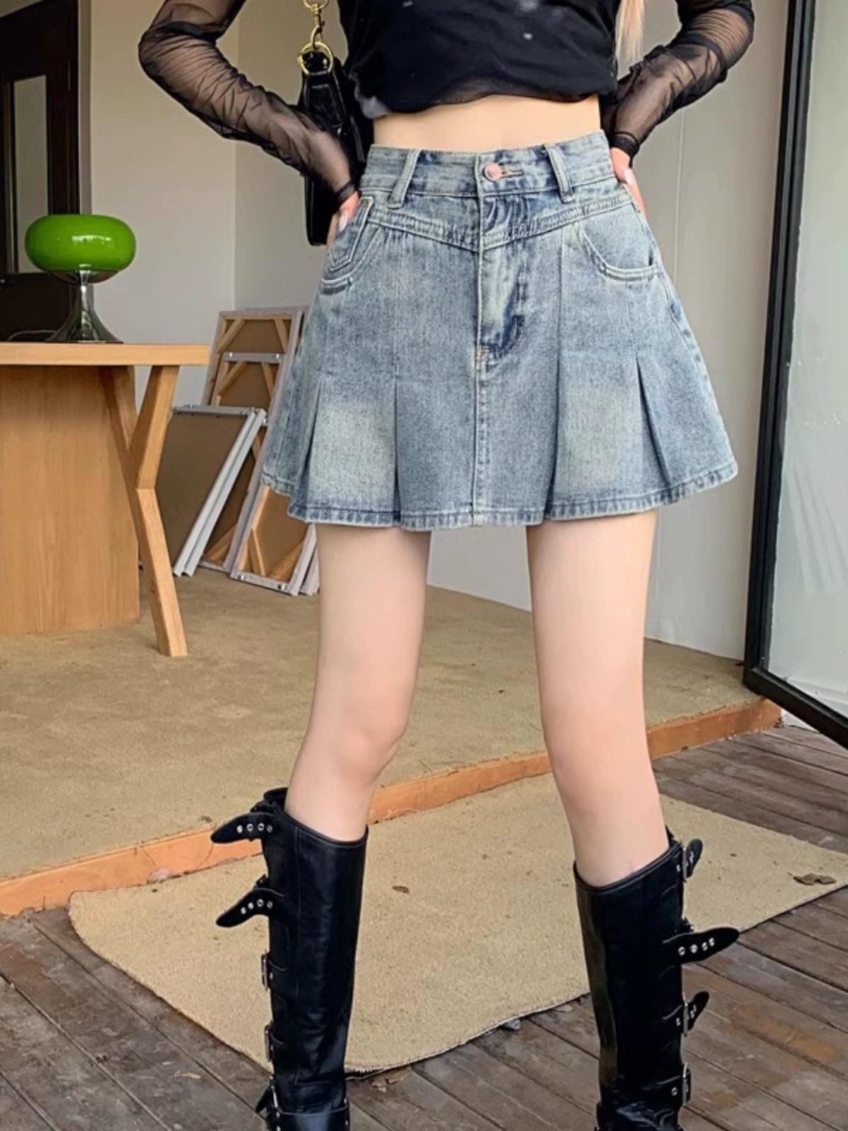 Falda de mezclilla retro americana para mujer Verano 2025 Falda delgada de talle alto plisada Look sexy adelgazante Falda línea A