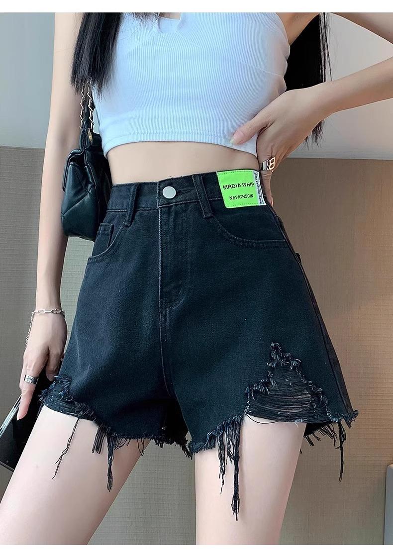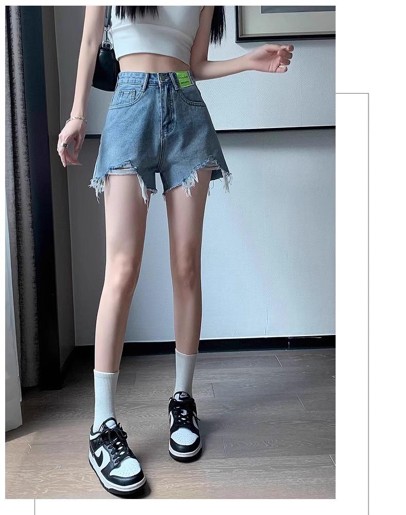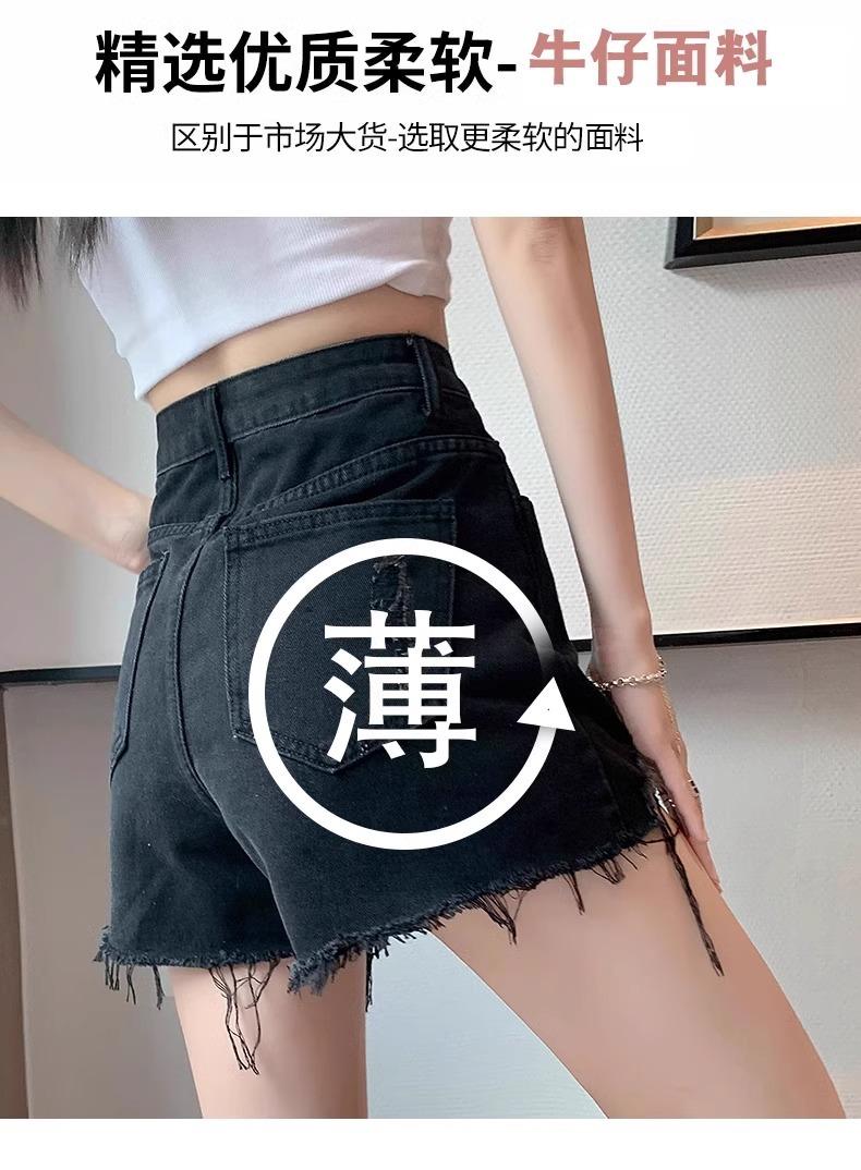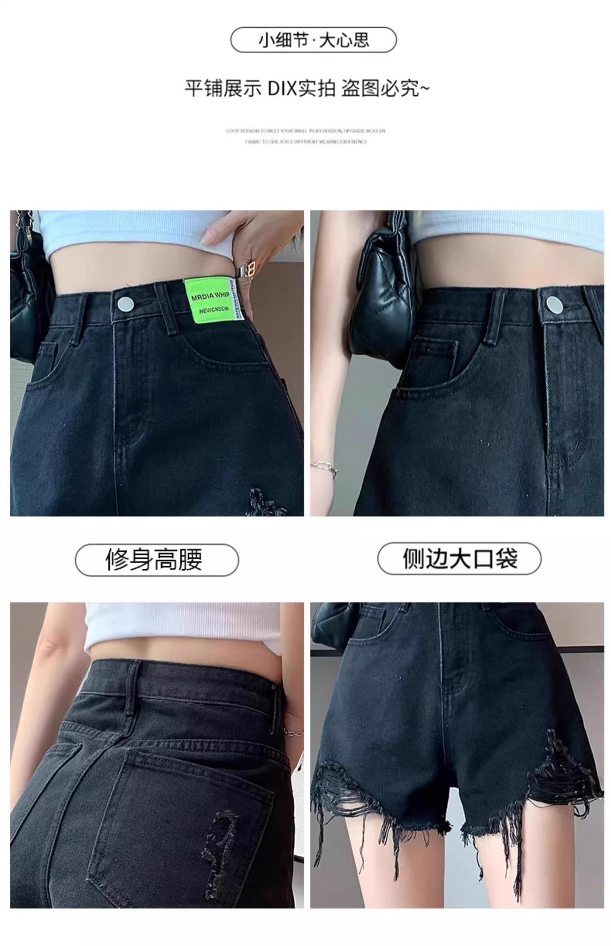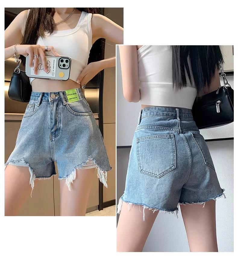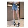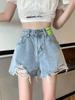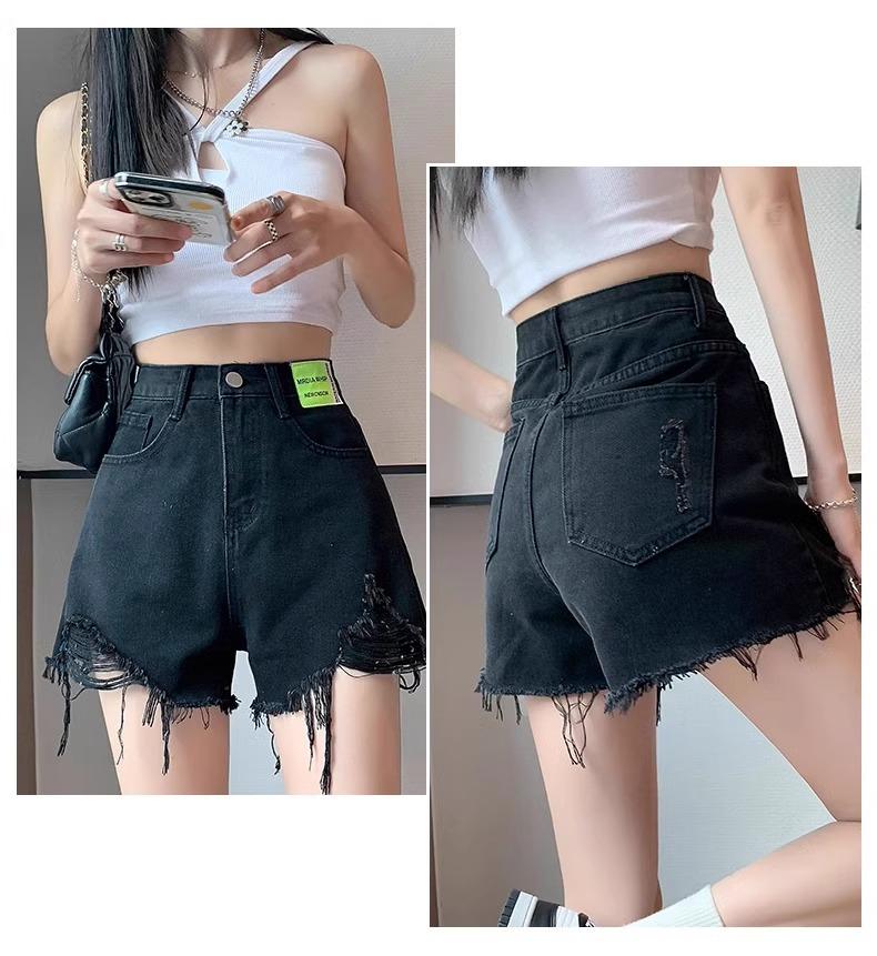 Pantalones cortos vaqueros con agujeros para mujer, de verano, finos, de cintura alta, holgados, adelgazantes, de corte A, talla pequeña xs, diseño de pantalones cortos de moda