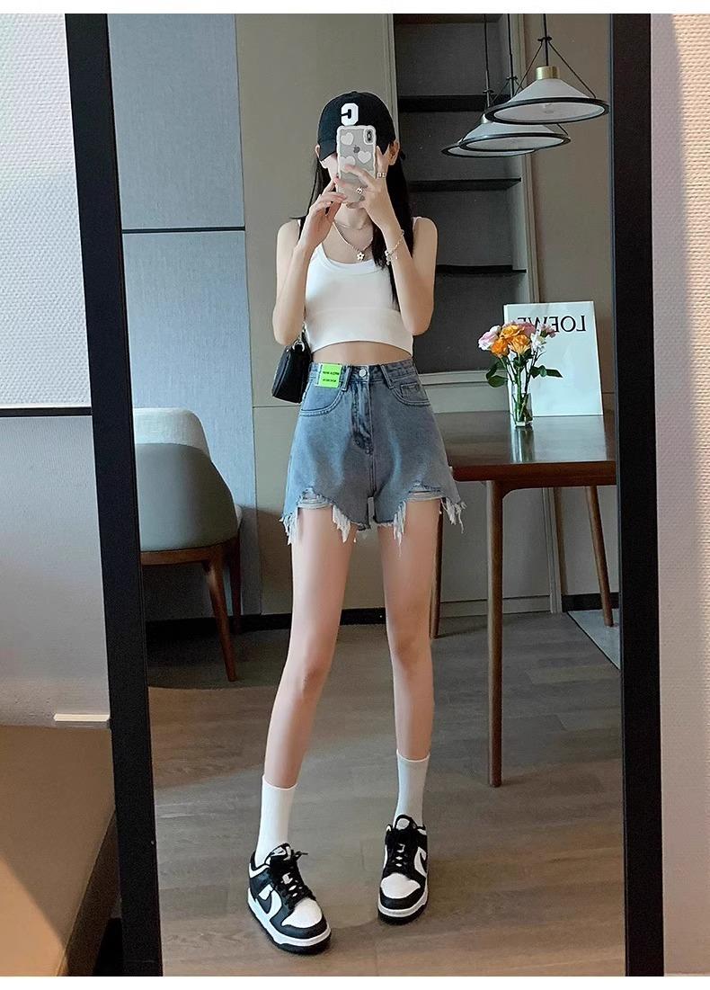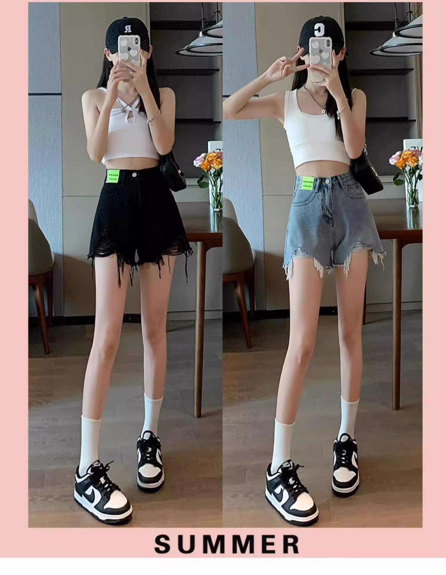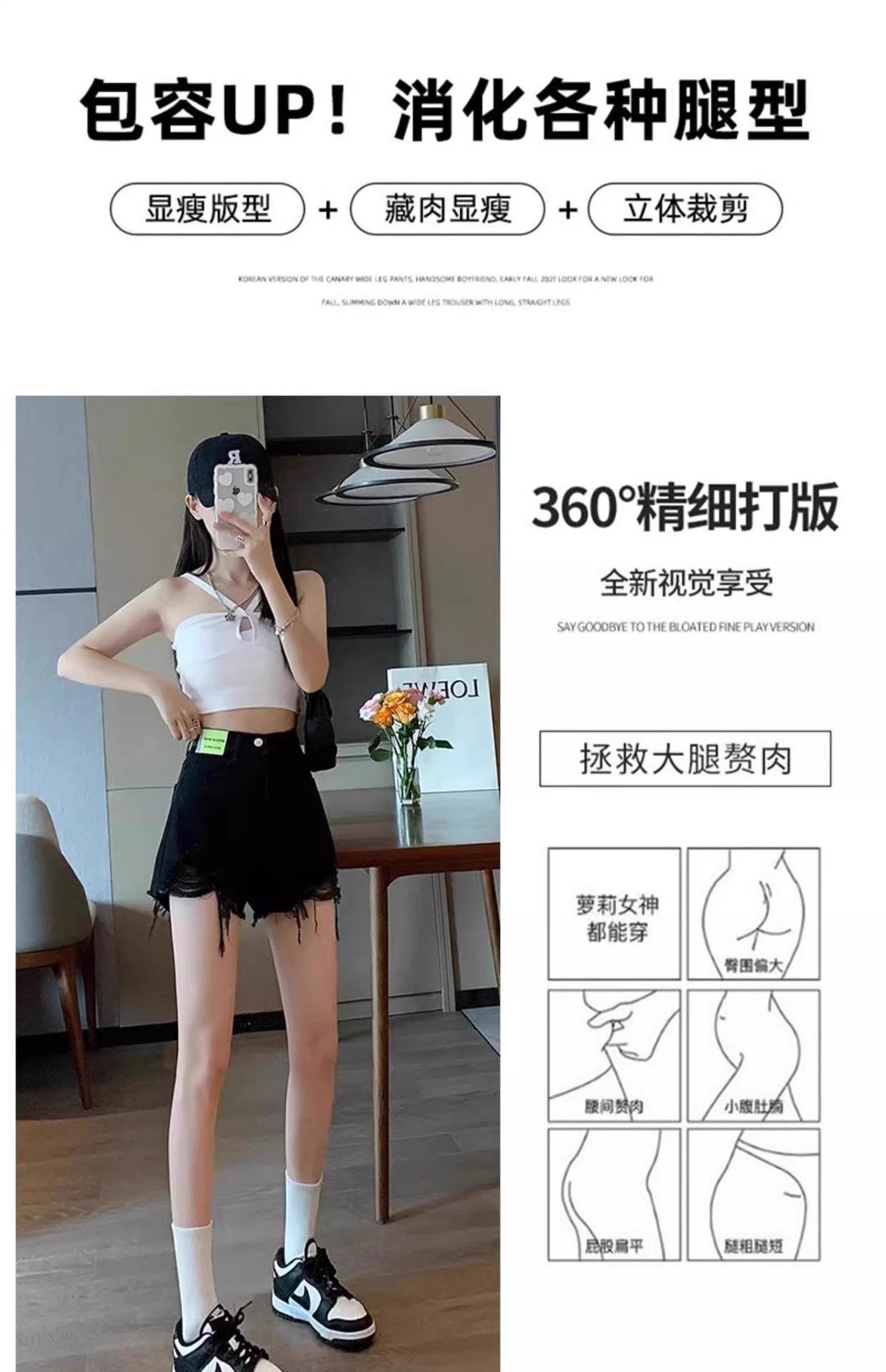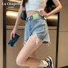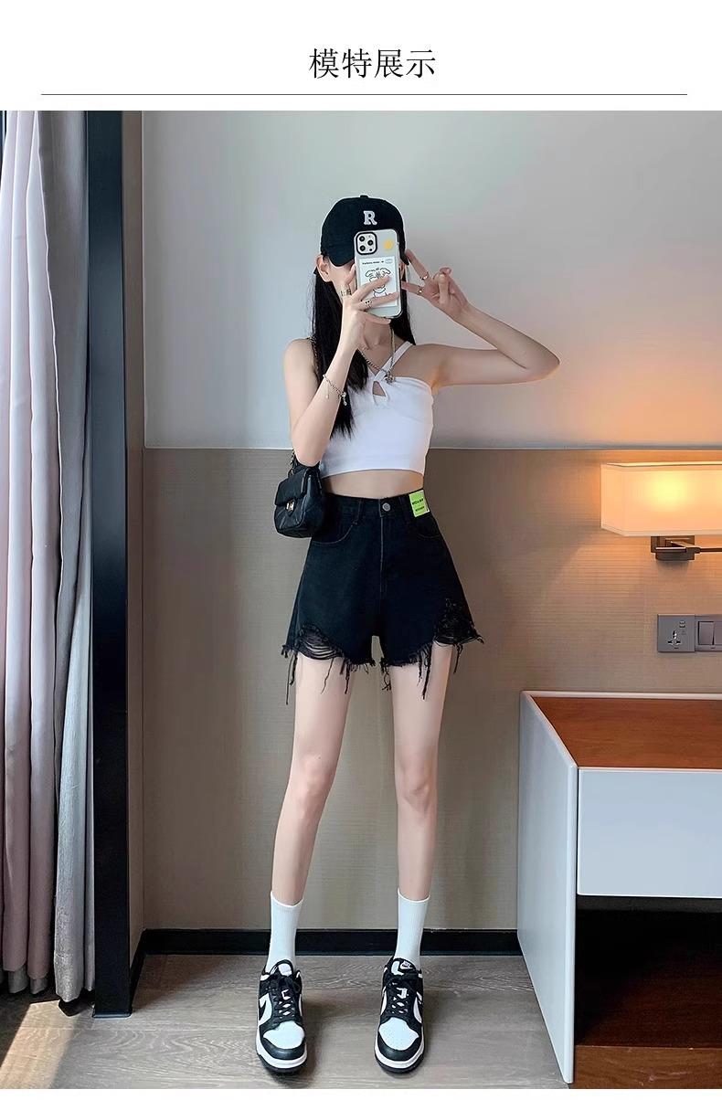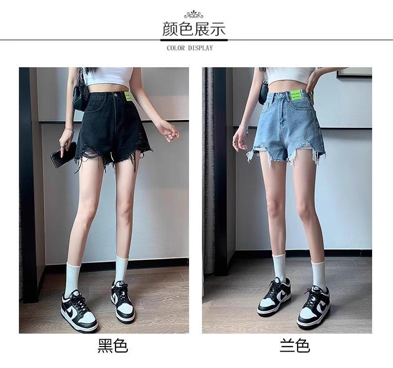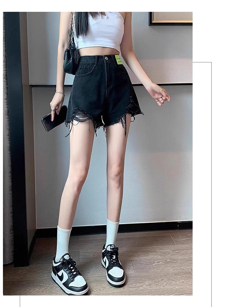 Pantalones cortos vaqueros con agujeros para mujer, de verano, finos, de cintura alta, holgados, adelgazantes, de corte A, talla pequeña xs, diseño de pantalones cortos de moda