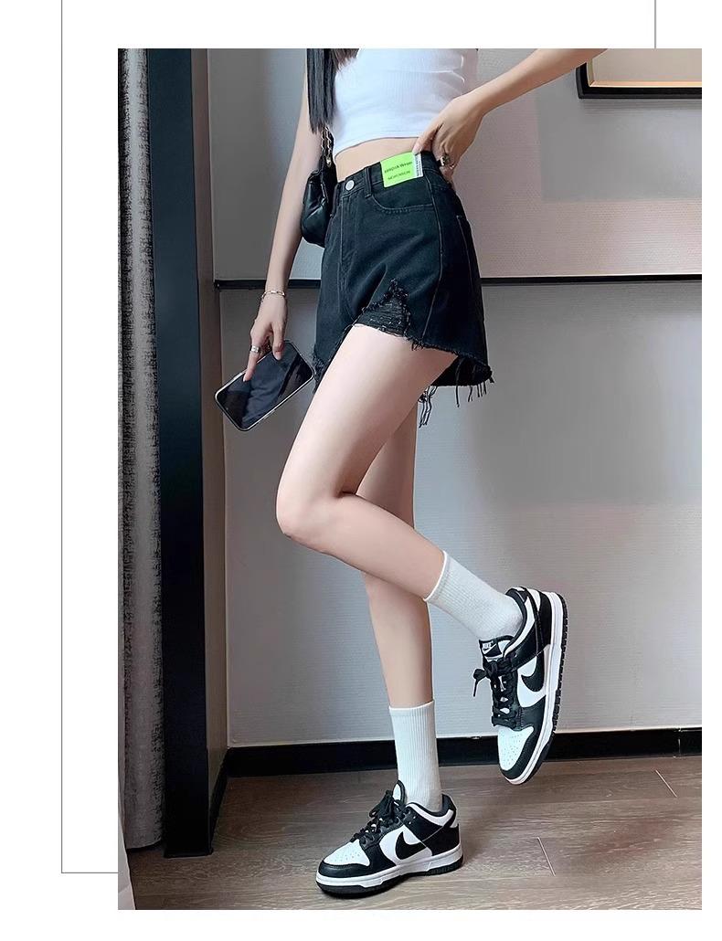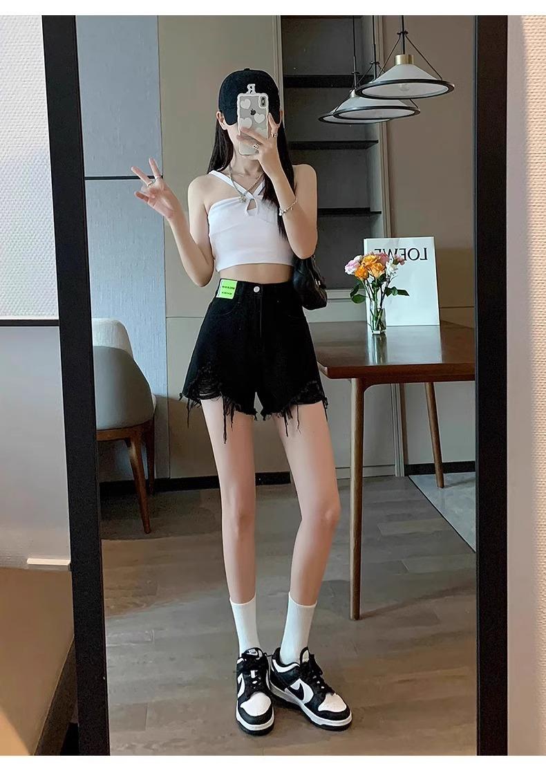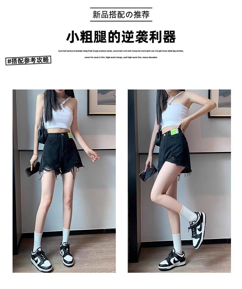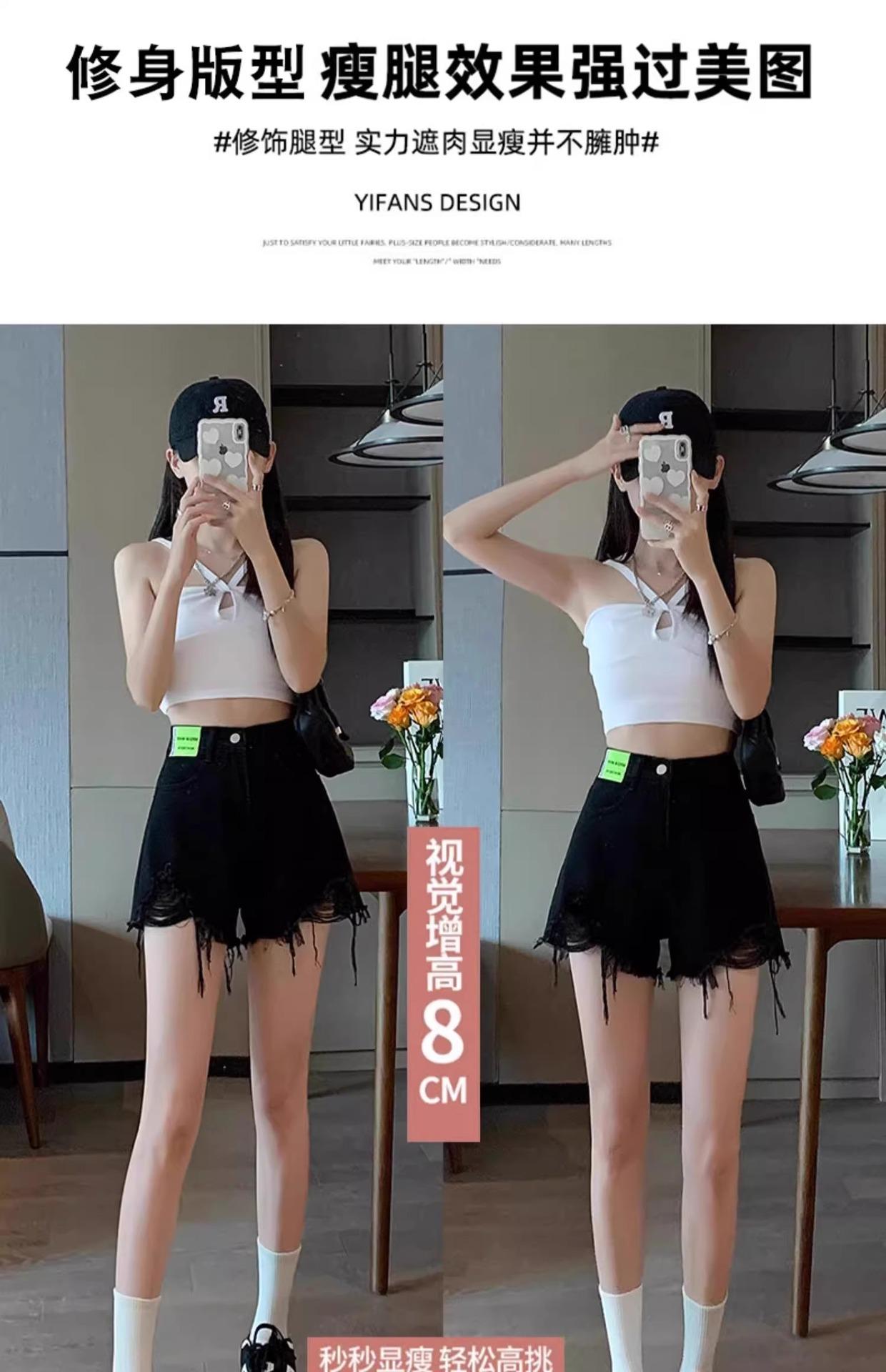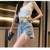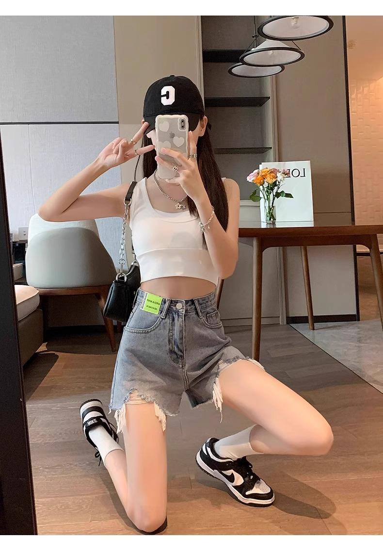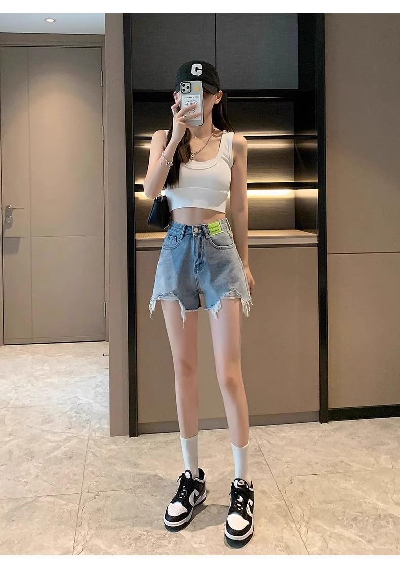 Pantalones cortos vaqueros con agujeros para mujer, de verano, finos, de cintura alta, holgados, adelgazantes, de corte A, talla pequeña xs, diseño de pantalones cortos de moda