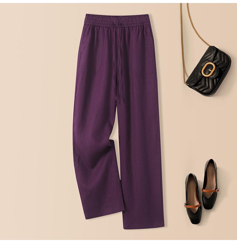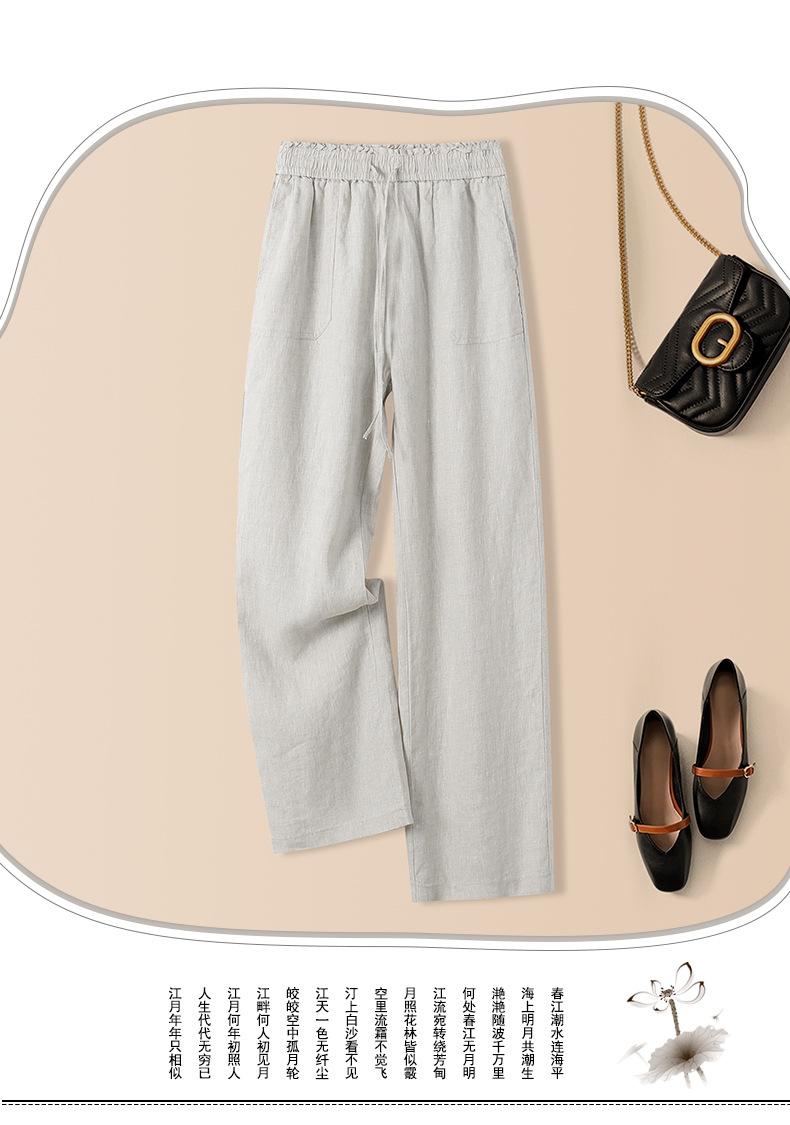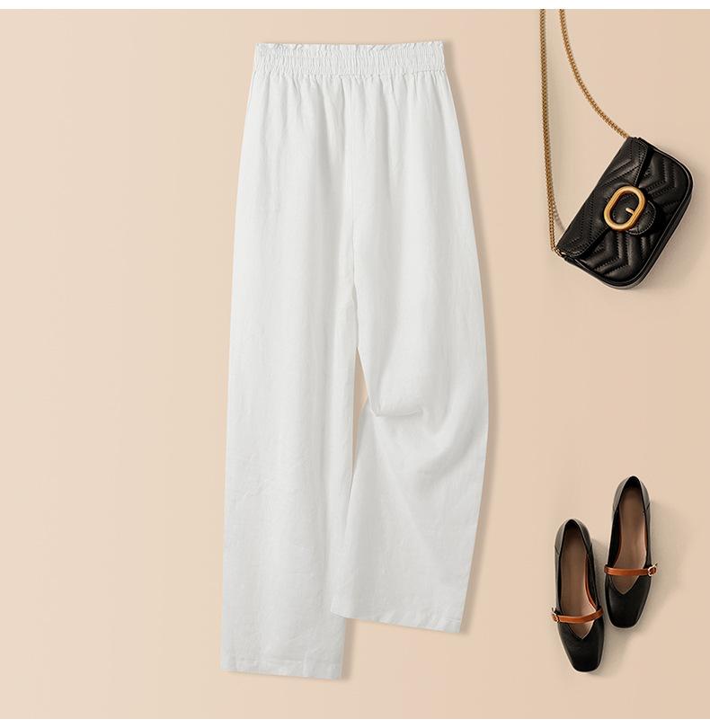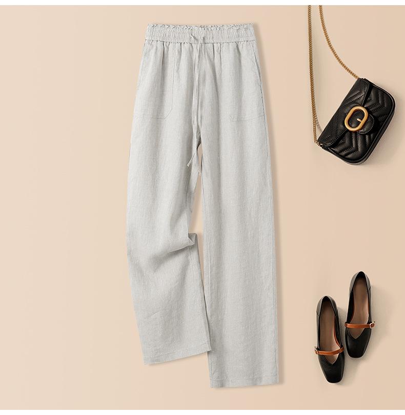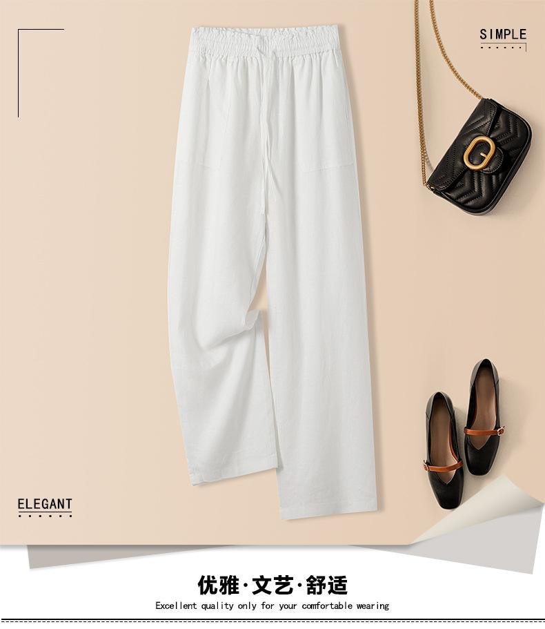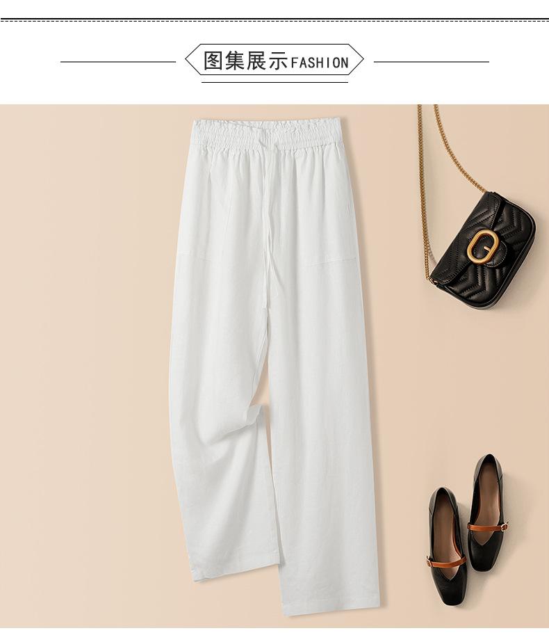 Foto real en stock primavera y otoño nuevo algodón lino pantalones de pierna ancha mujer cintura alta adelgazantes petite pantalones de pierna recta algodón lino pantalones casuales