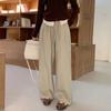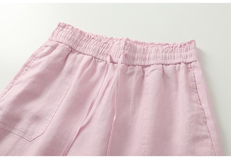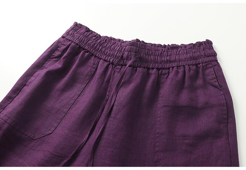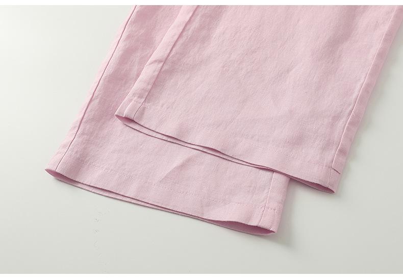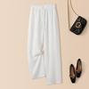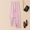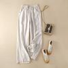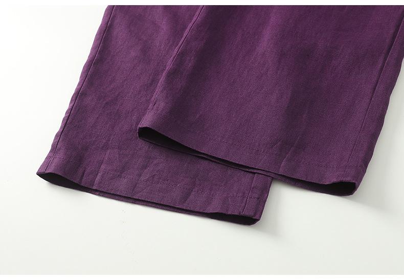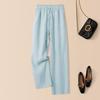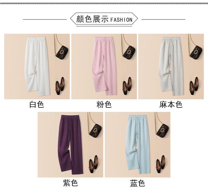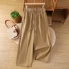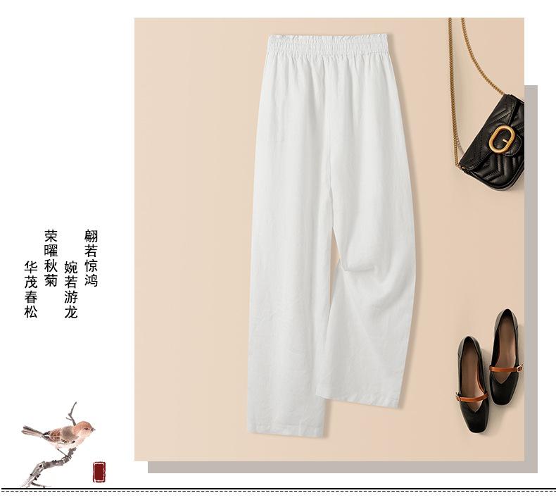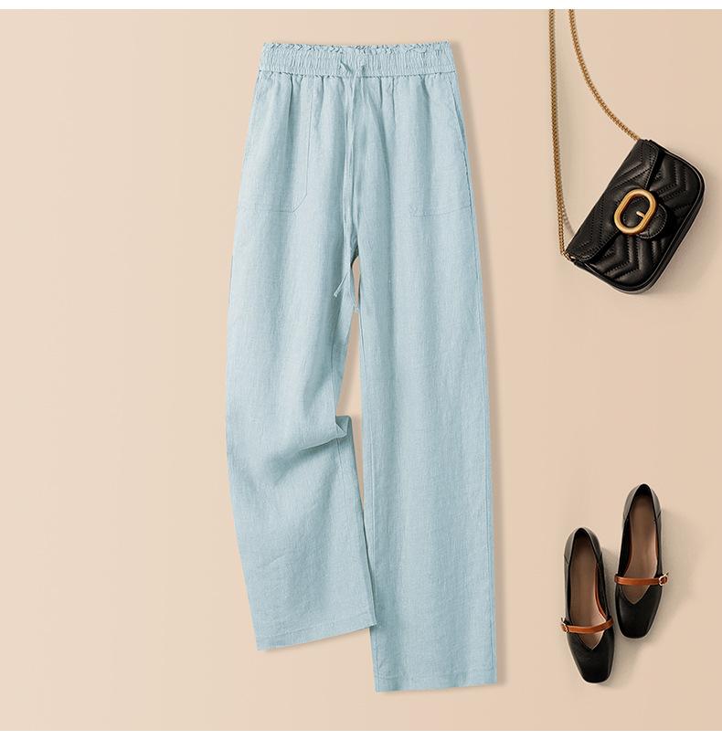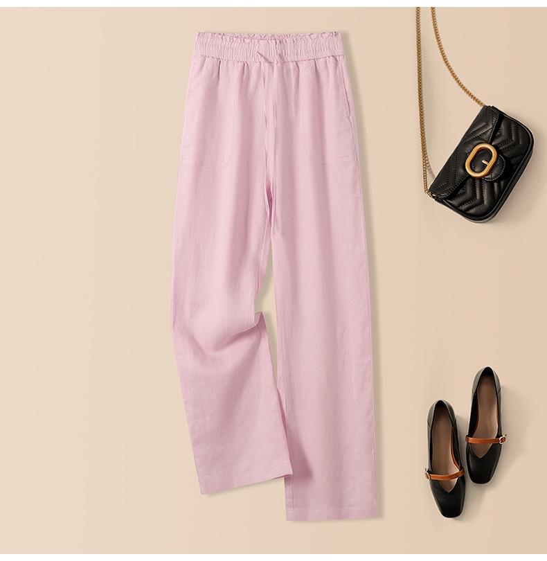 Foto real en stock primavera y otoño nuevo algodón lino pantalones de pierna ancha mujer cintura alta adelgazantes petite pantalones de pierna recta algodón lino pantalones casuales