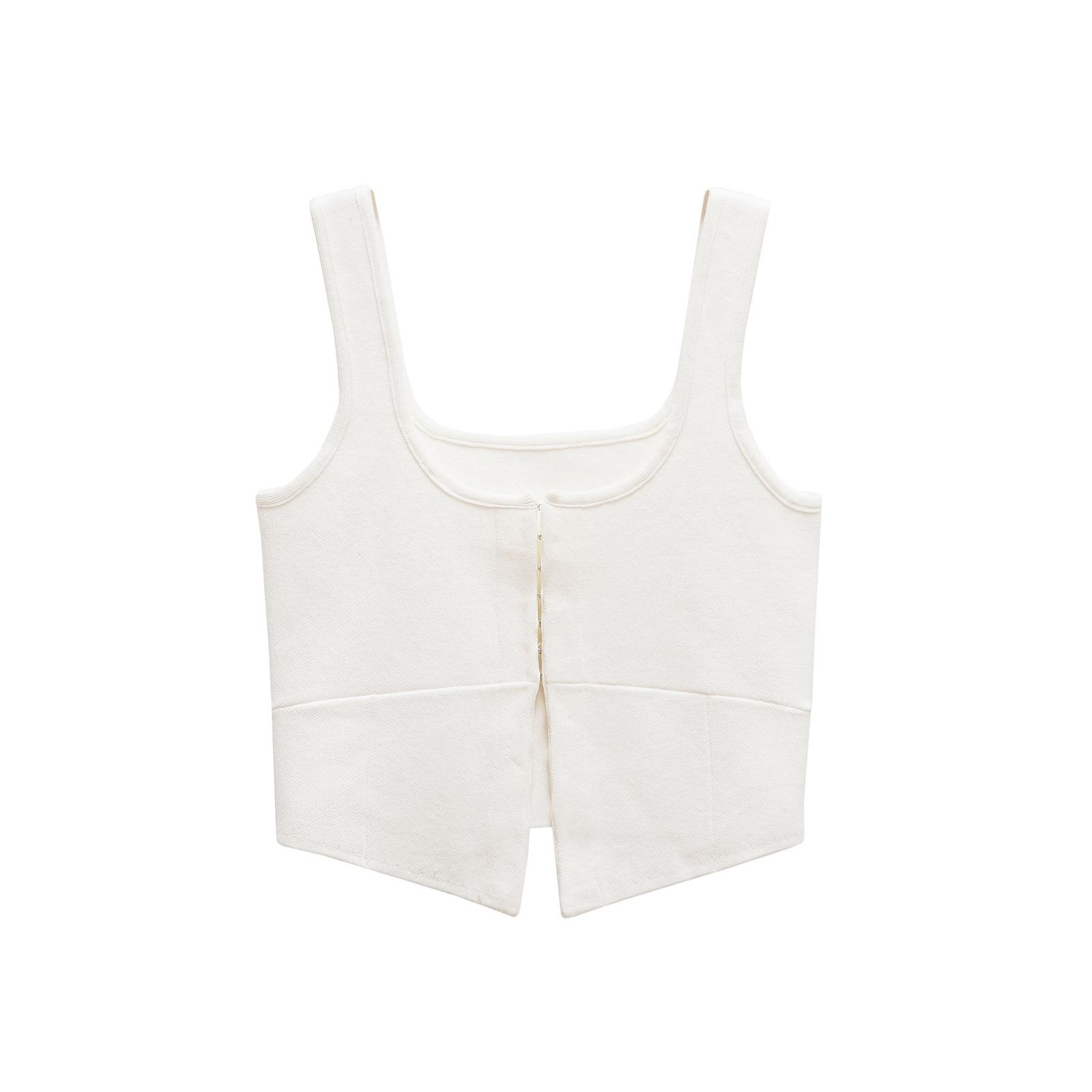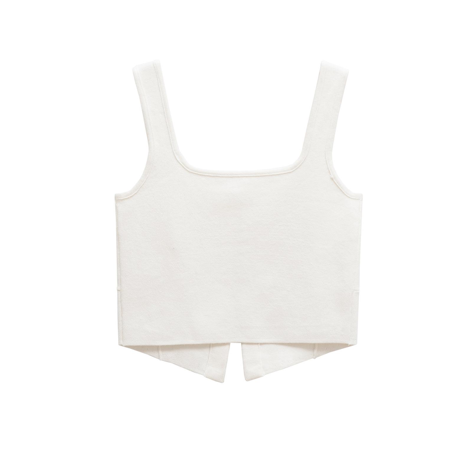 Moda Transfronteriza Europea y Americana Ins Popular Trendy Top Chaleco Corto de Punto de Cuello Redondo