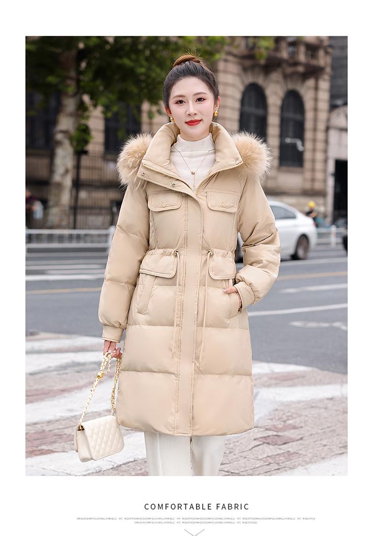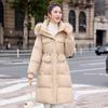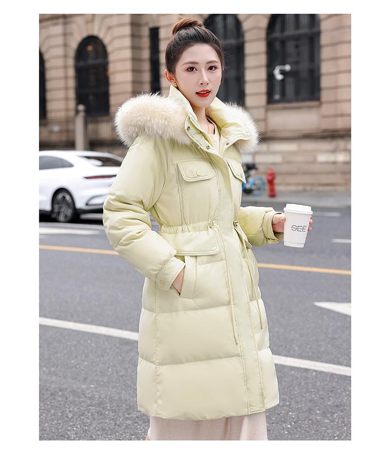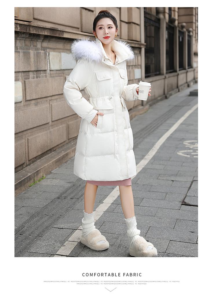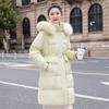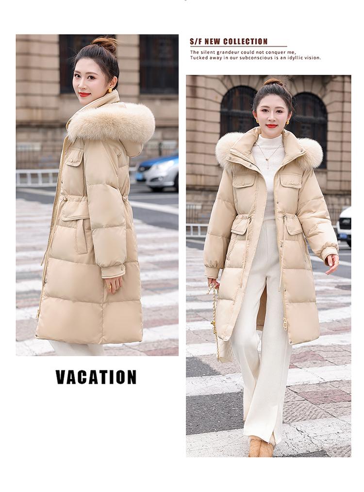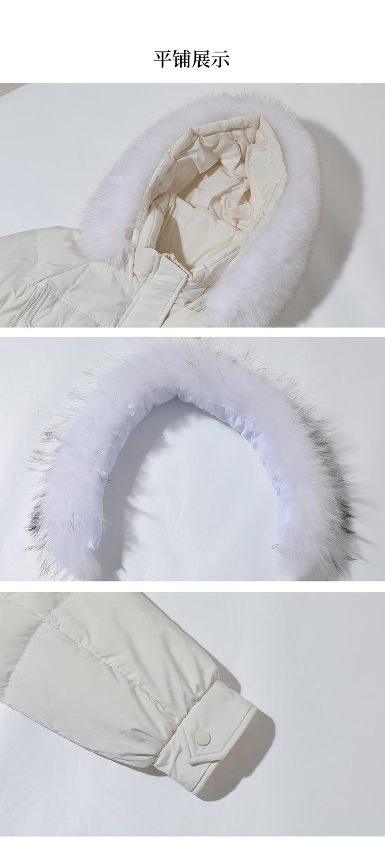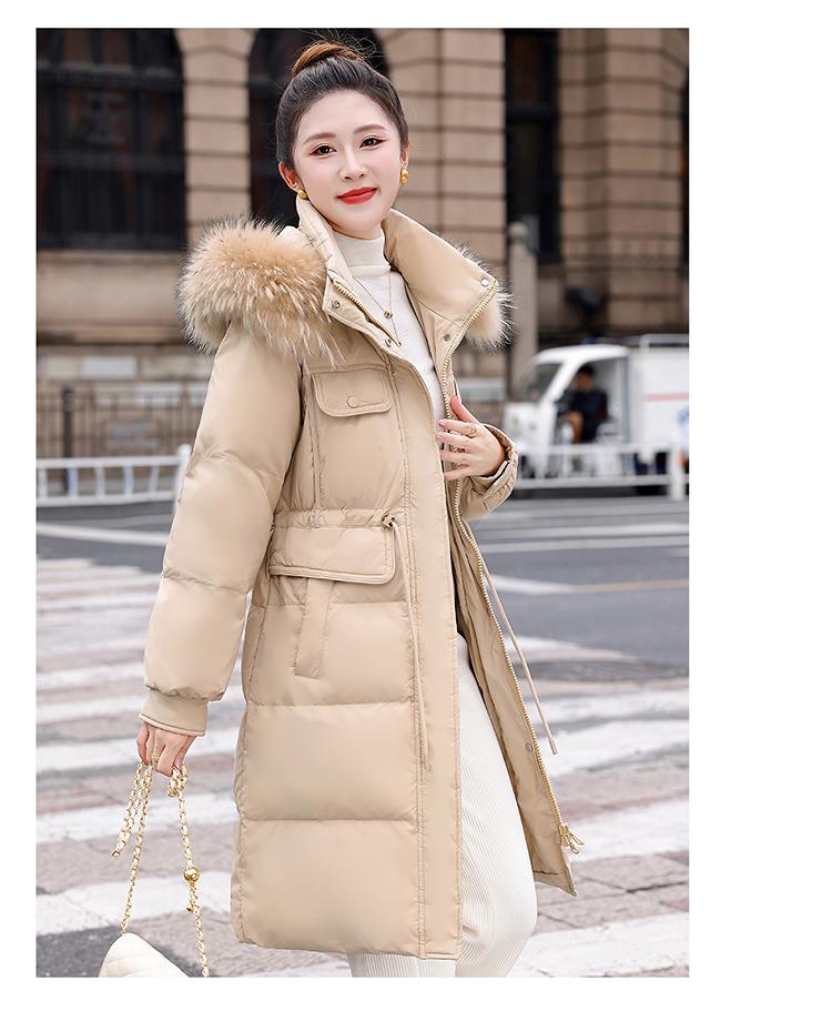 Liquidación Genuina 2025 Invierno Nuevo Abrigo Acolchado de Largo Medio para Mujer Corte Slim Plumón de Pato Blanco Cuello Grande de Piel Abrigo Ajustado a la Cintura