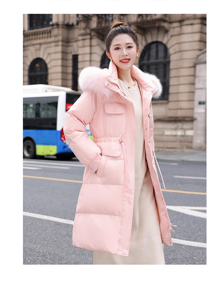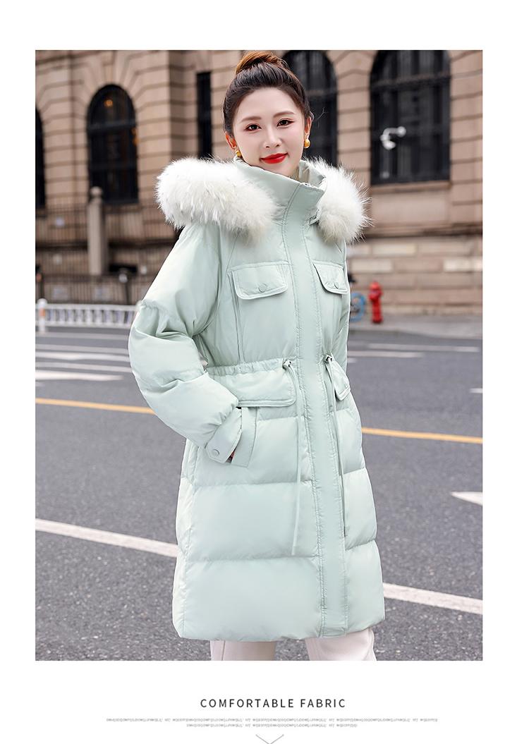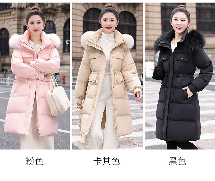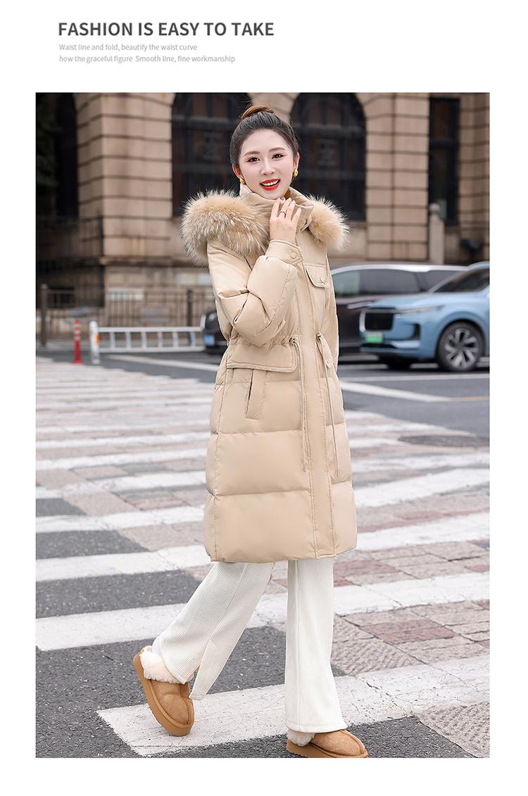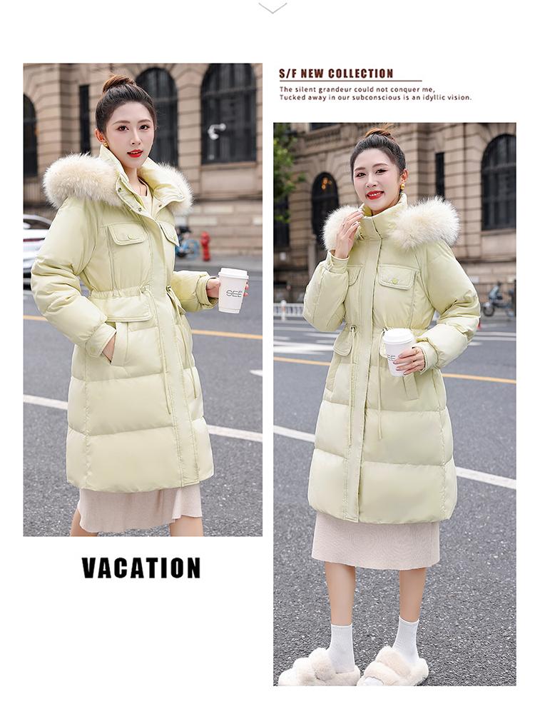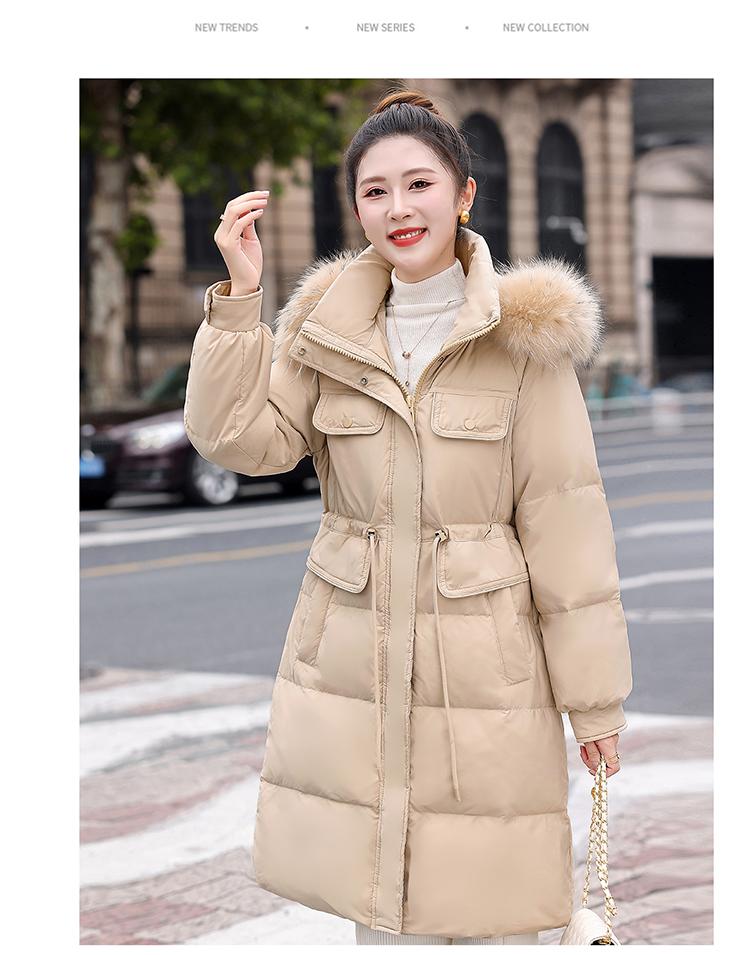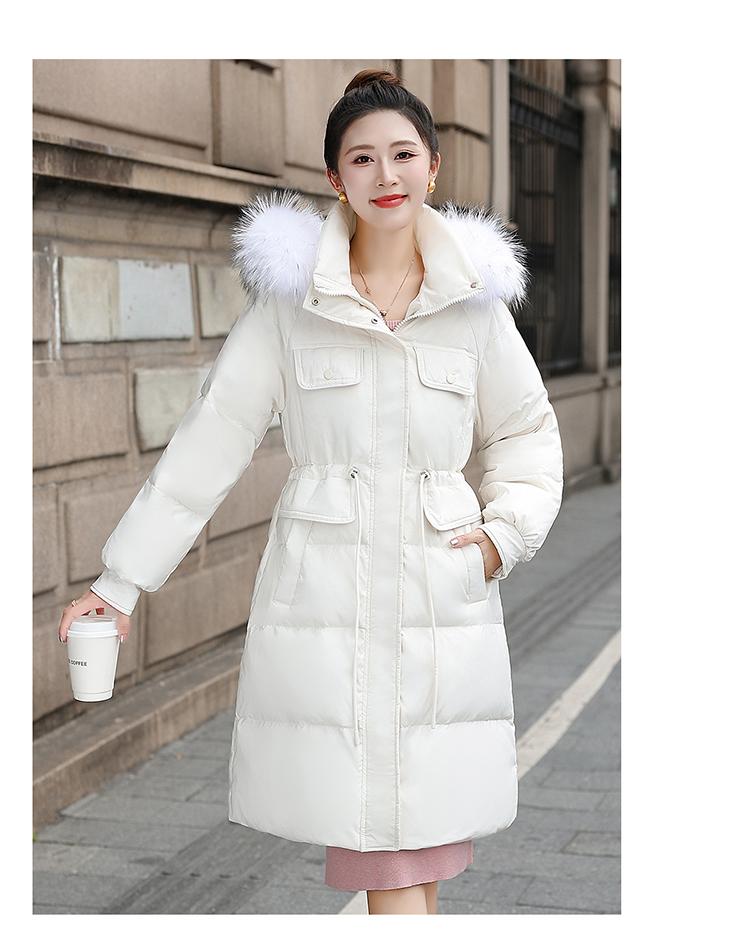Liquidación Genuina 2025 Invierno Nuevo Abrigo Acolchado de Largo Medio para Mujer Corte Slim Plumón de Pato Blanco Cuello Grande de Piel Abrigo Ajustado a la Cintura