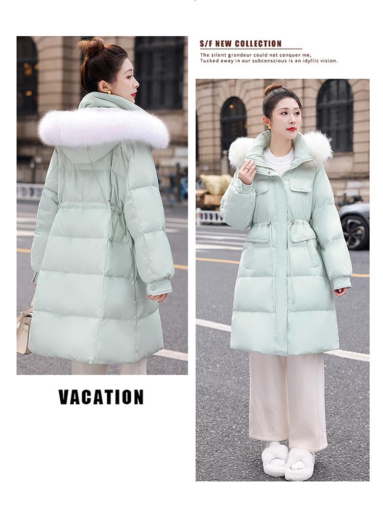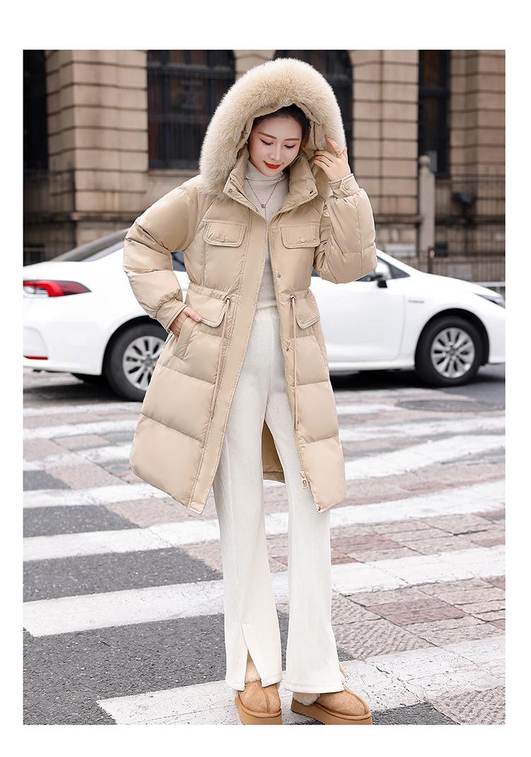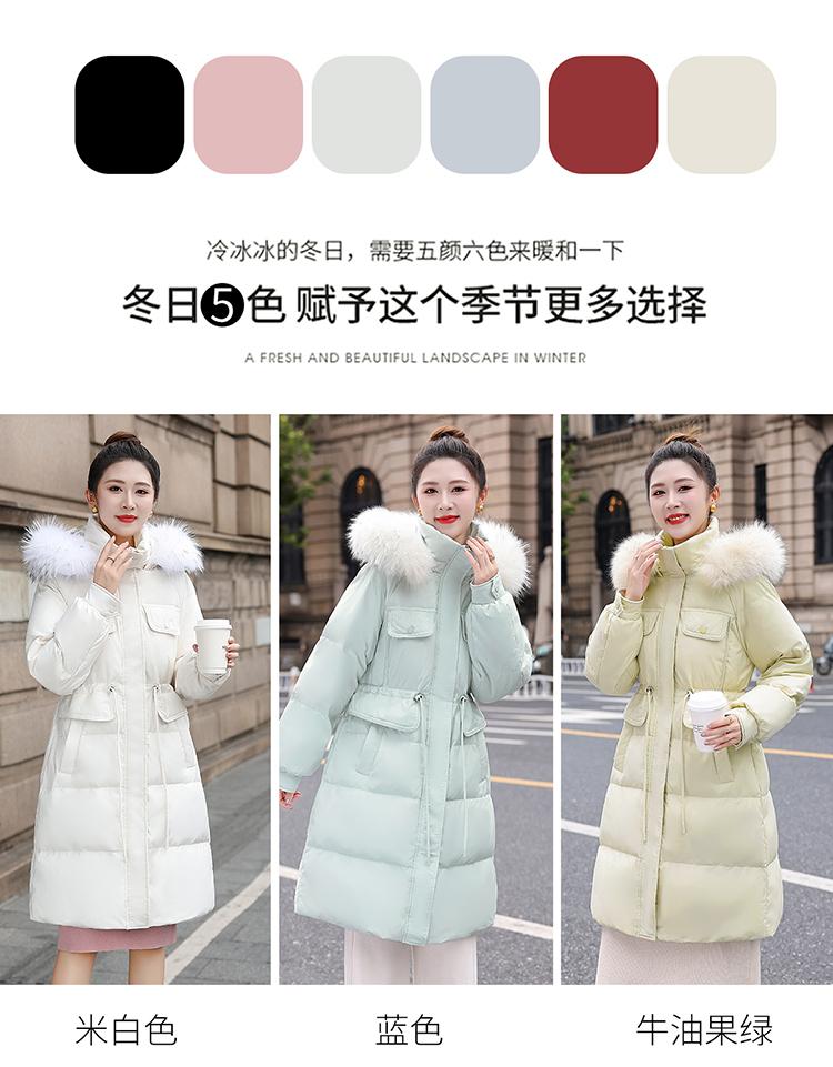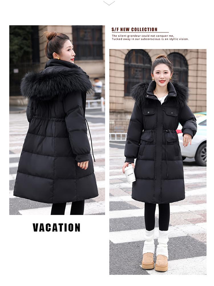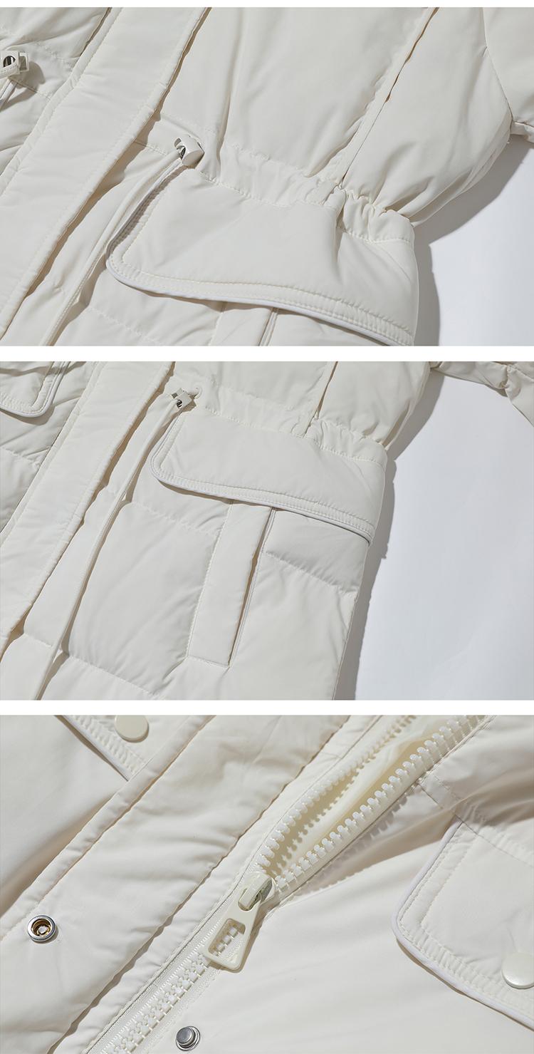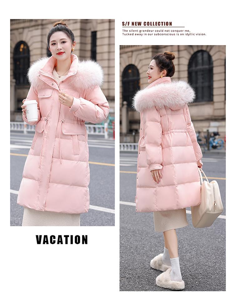 Liquidación Genuina 2025 Invierno Nuevo Abrigo Acolchado de Largo Medio para Mujer Corte Slim Plumón de Pato Blanco Cuello Grande de Piel Abrigo Ajustado a la Cintura