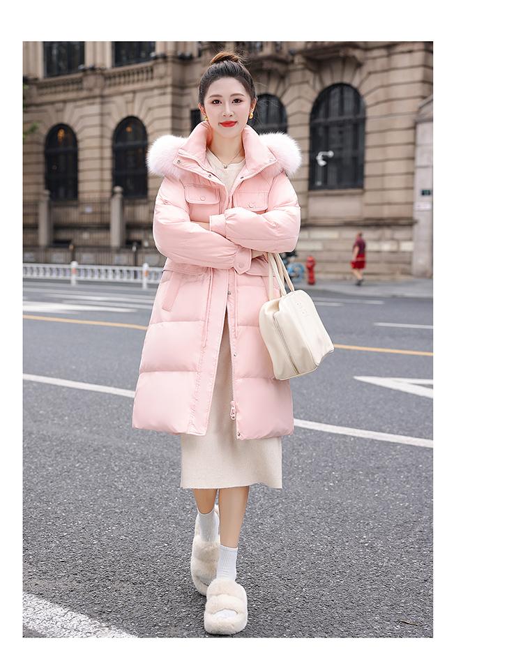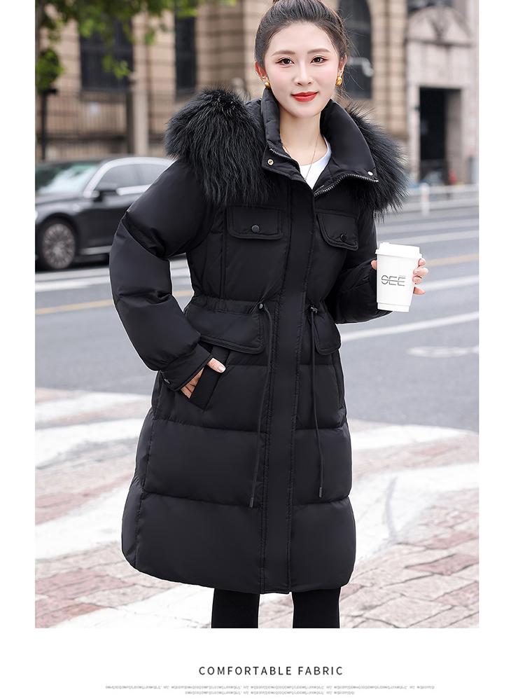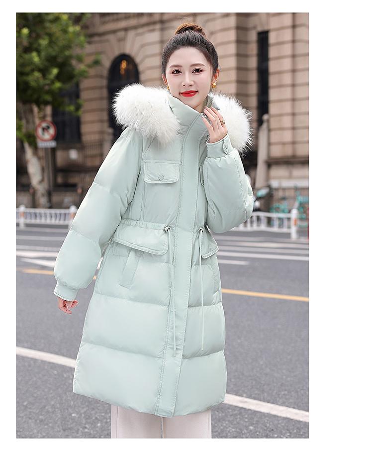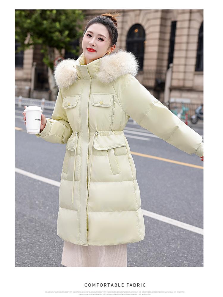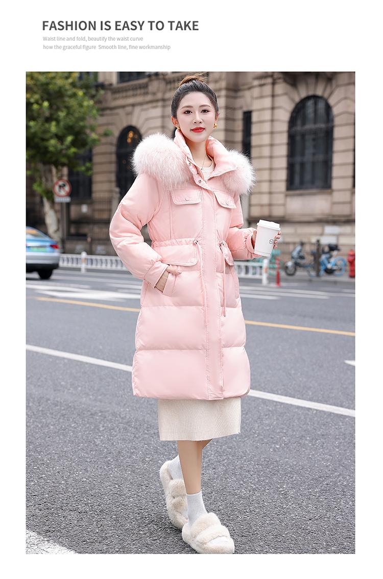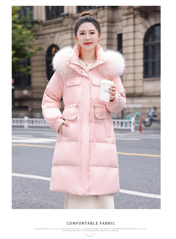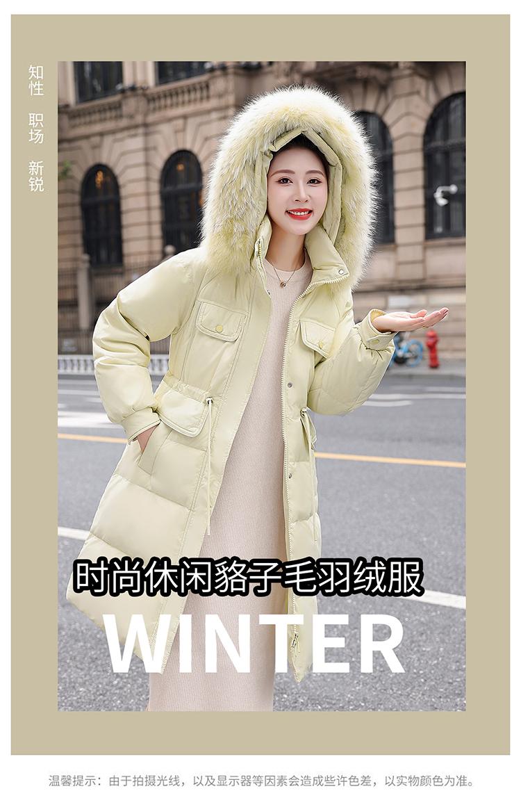 Liquidación Genuina 2025 Invierno Nuevo Abrigo Acolchado de Largo Medio para Mujer Corte Slim Plumón de Pato Blanco Cuello Grande de Piel Abrigo Ajustado a la Cintura