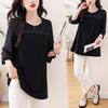 Algodón Ropa de Mujer de Talla Grande Nueva Suelta Cubre Vientre Hombro Recto Manga Larga Camiseta Otoño Invierno Camisa de Temperamento Top 200 lbs